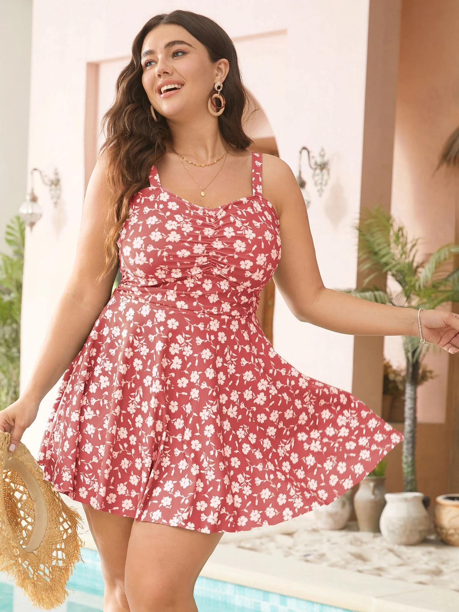 Ditsy Floral Ruched Empire Waist Swim Dress