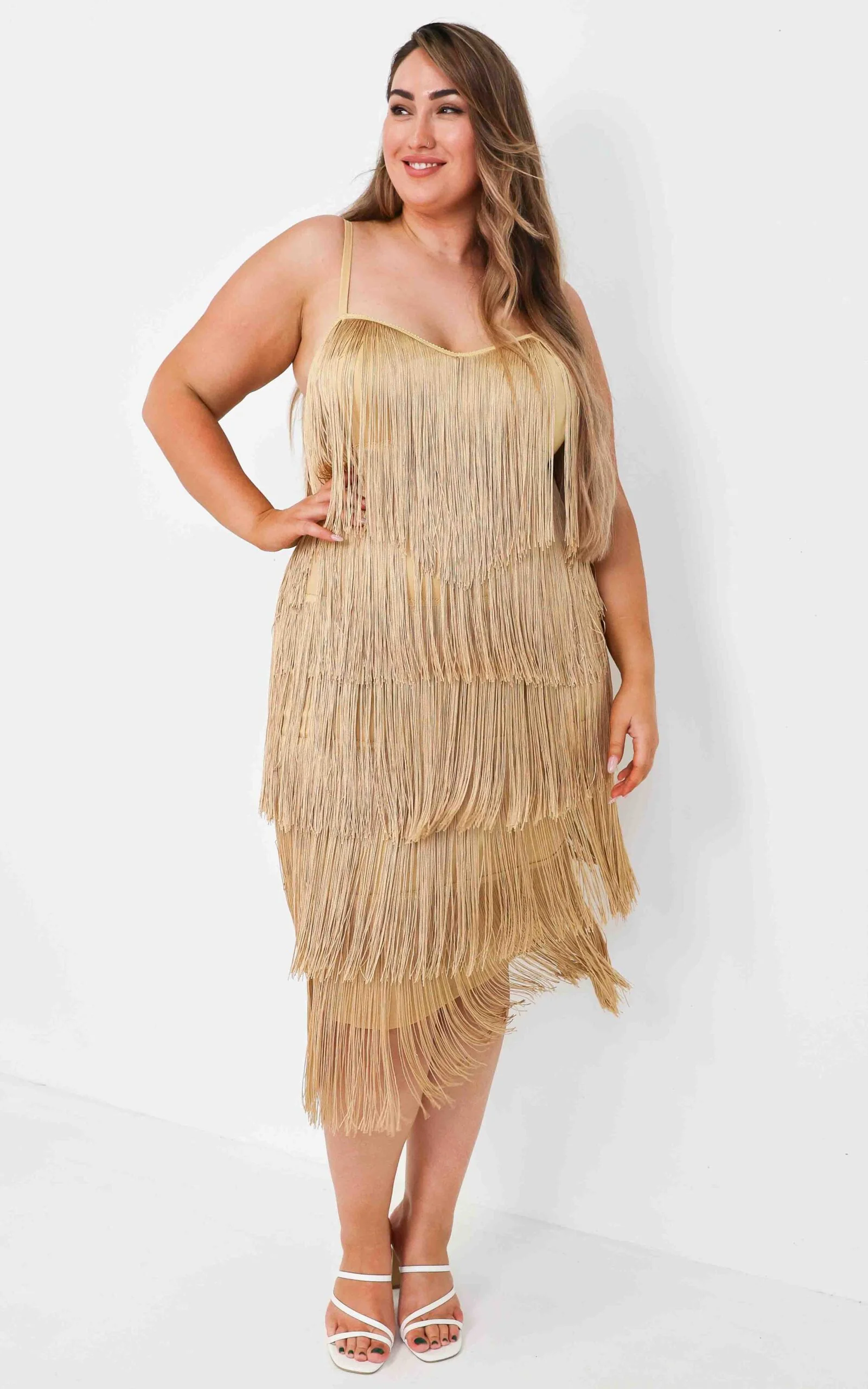 You Found Me Fringe Tassel Maxi Dress - Gold