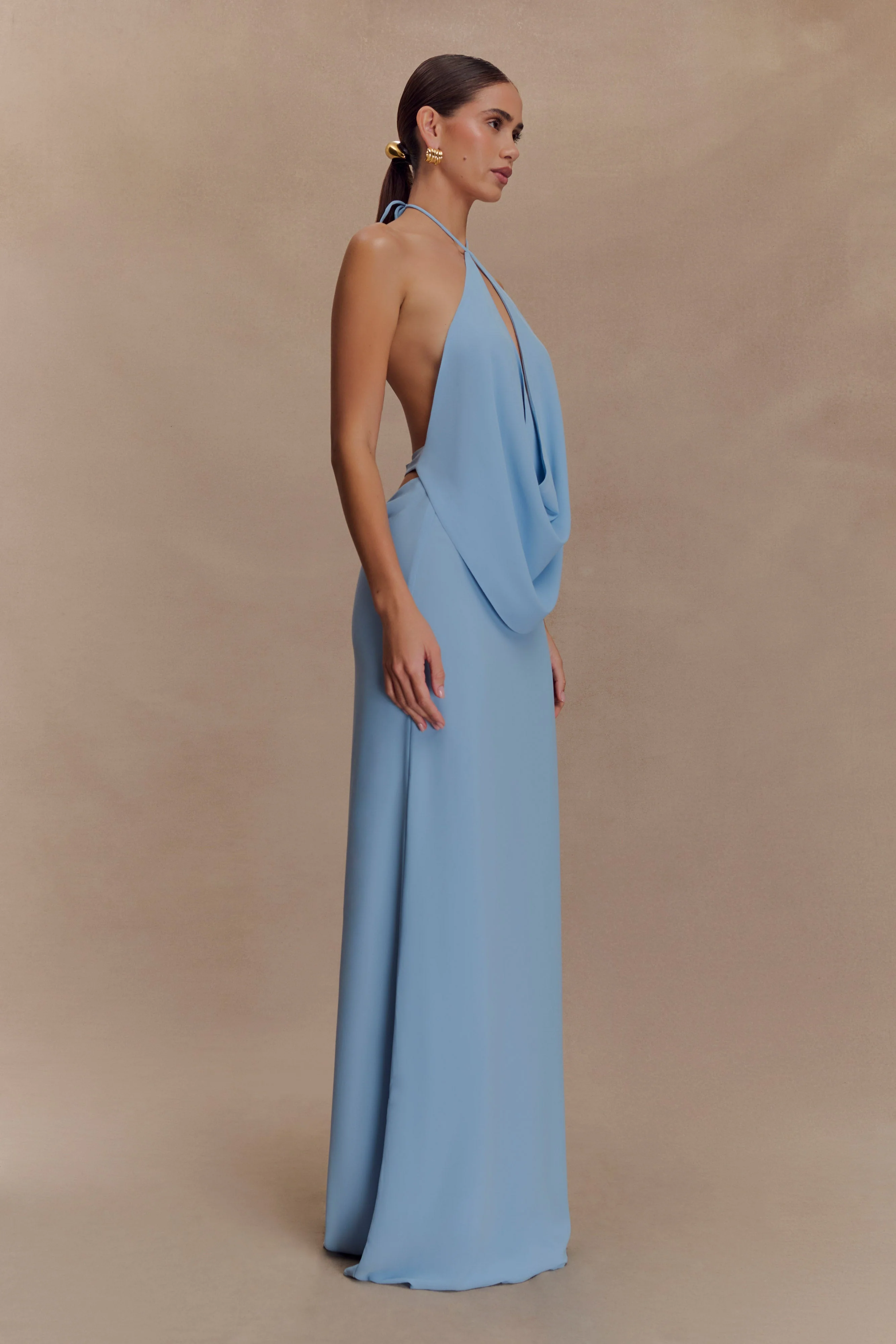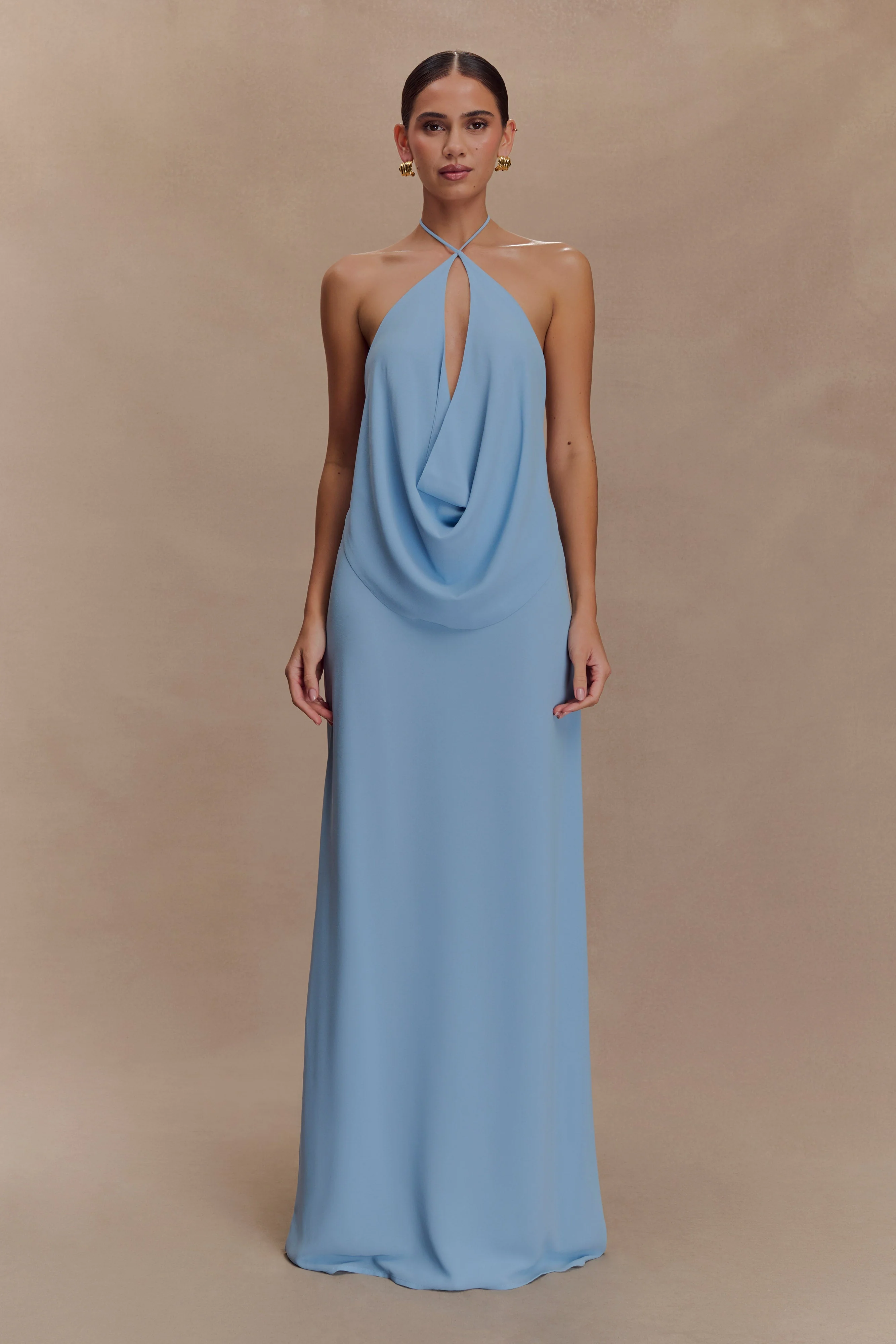 Katalina Chiffon Cowl Halter Top - Sky Blue