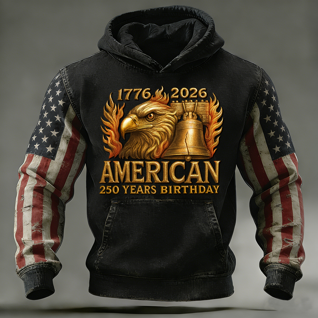 Men's United States 250th Anniversary Print Vintage Hoodie