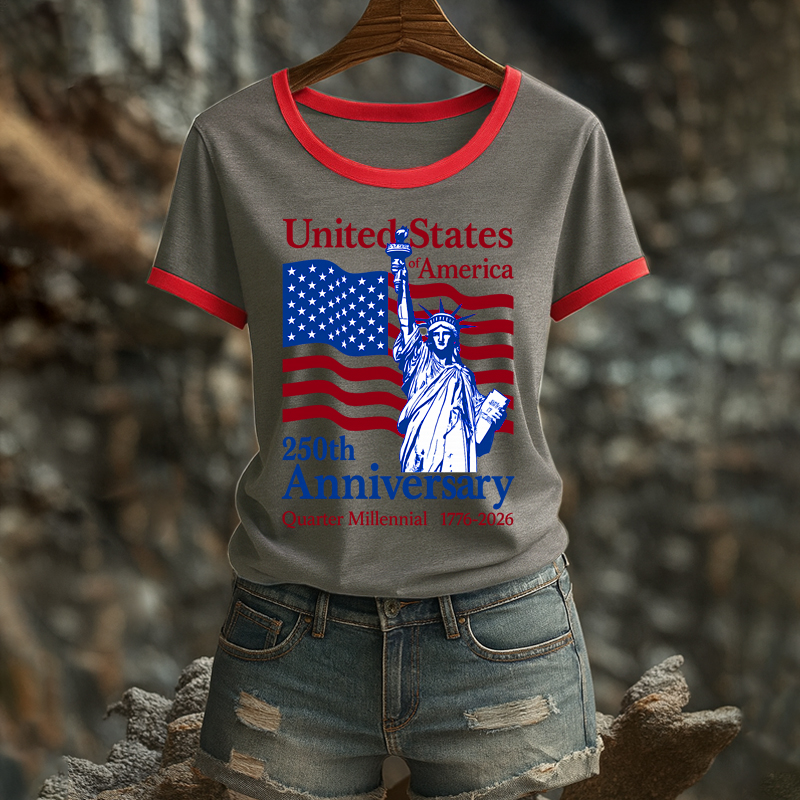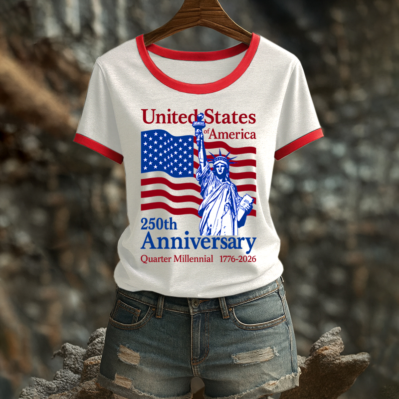 US 250th Anniversary Art Illustration Printed Casual T-Shirt