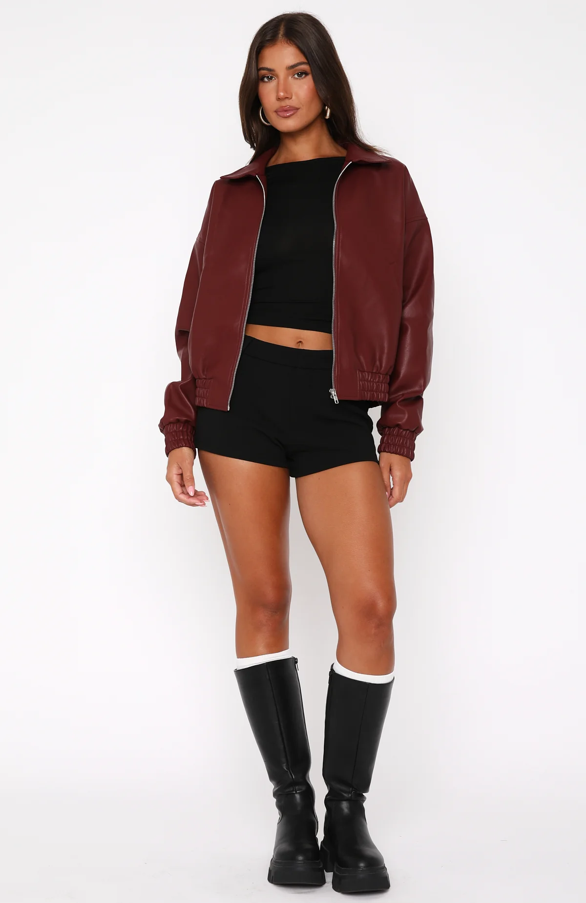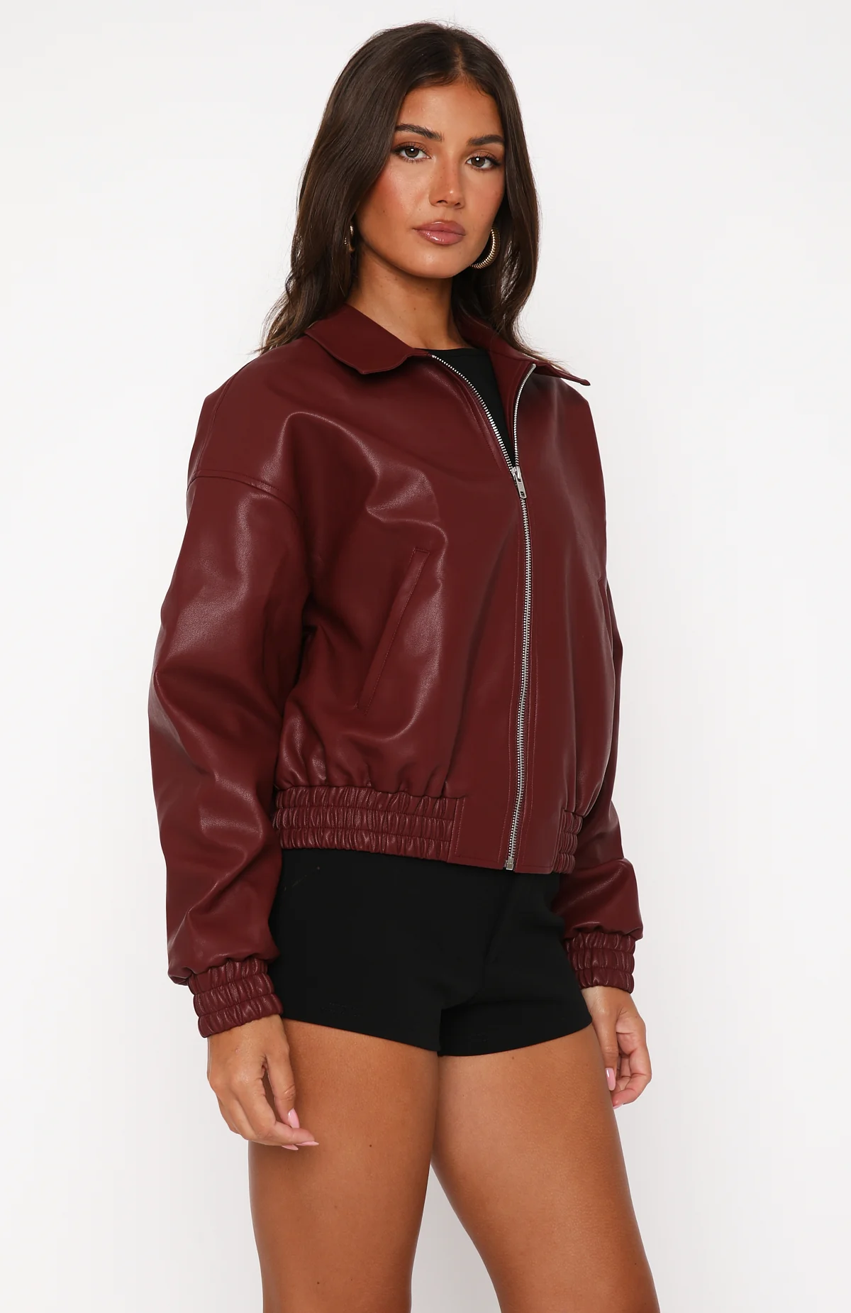 Might Cause Trouble PU Bomber Jacket Burgundy