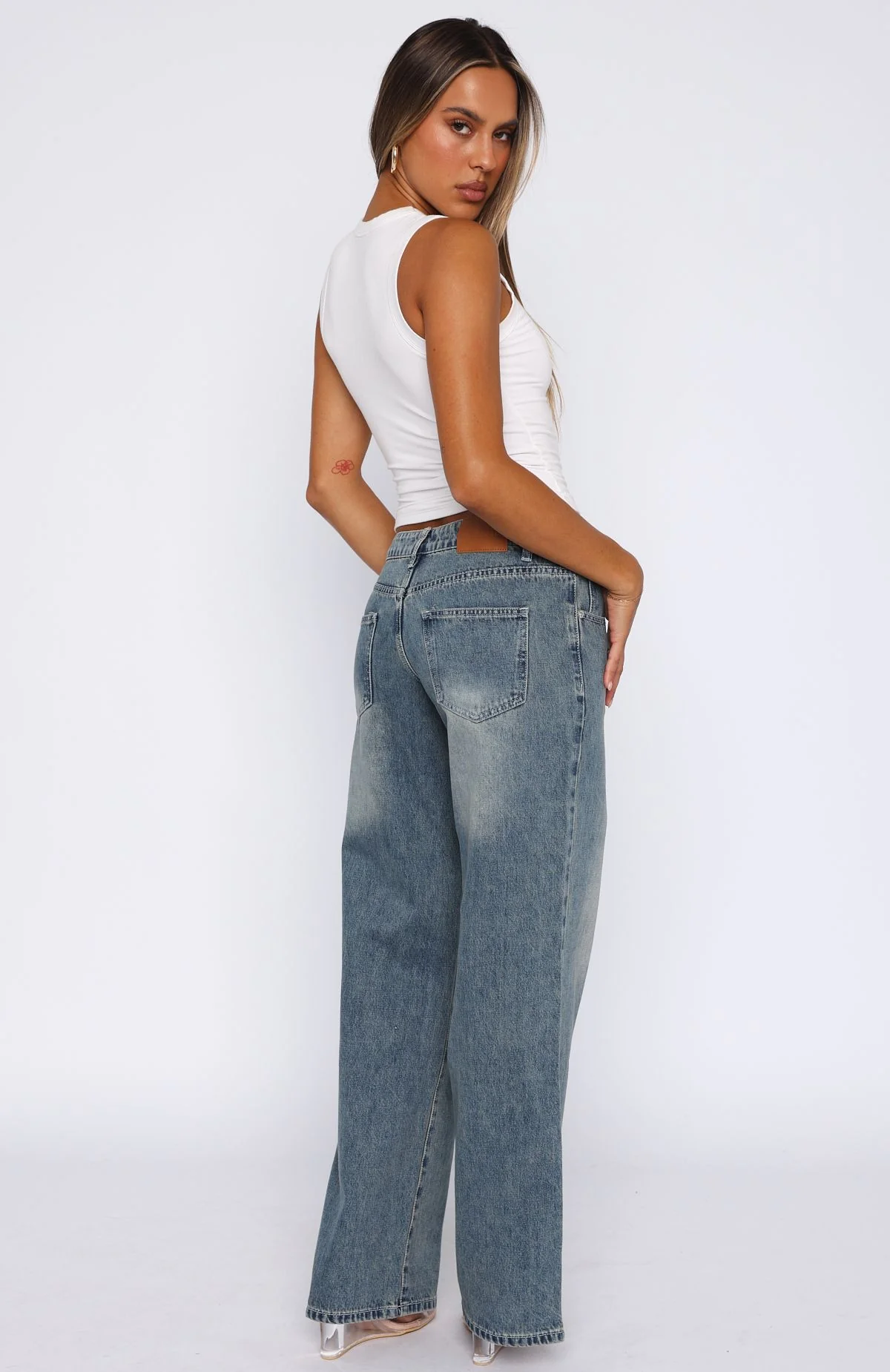 Alana High Waisted Straight Leg Jeans Mid Blue