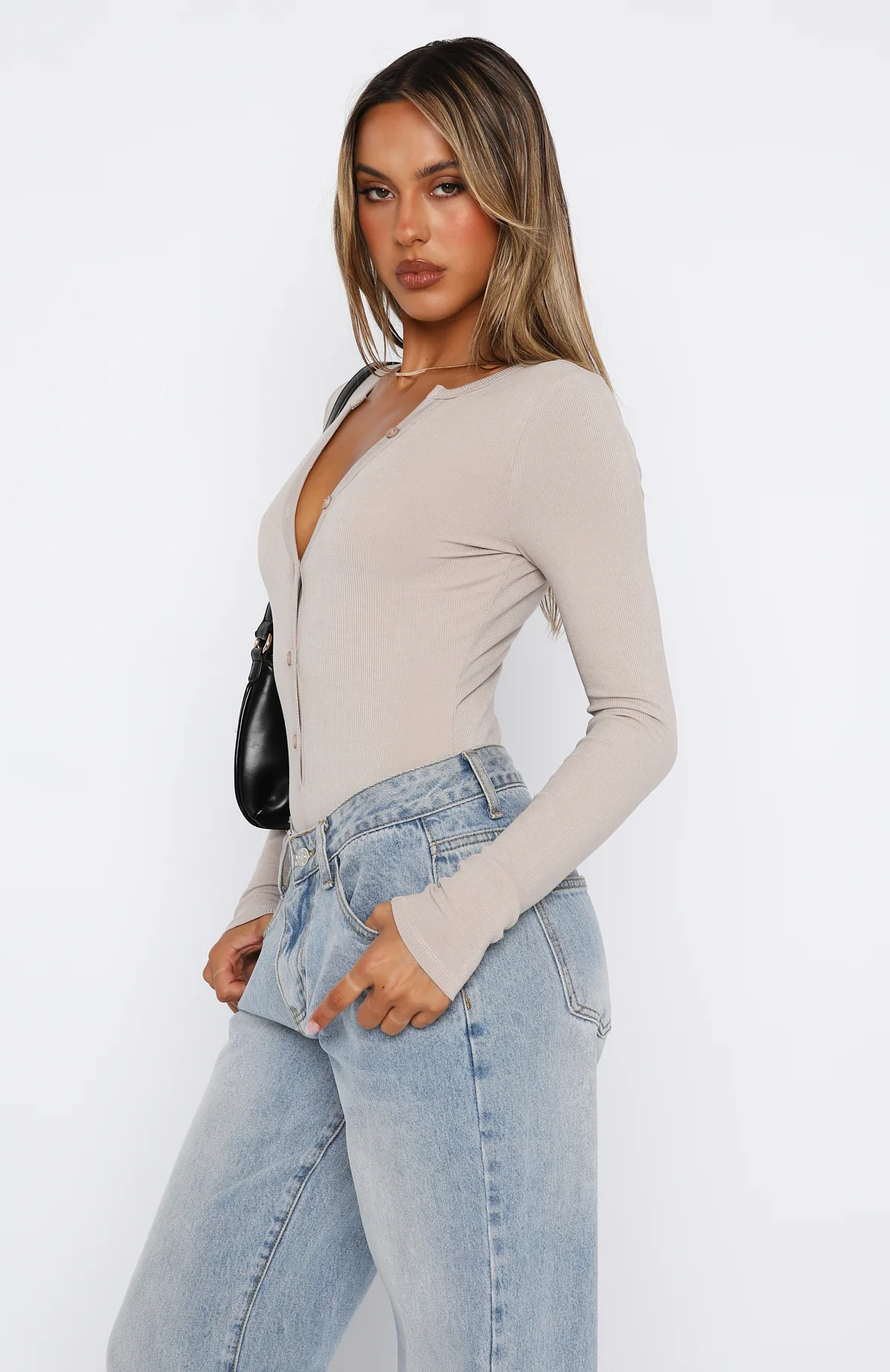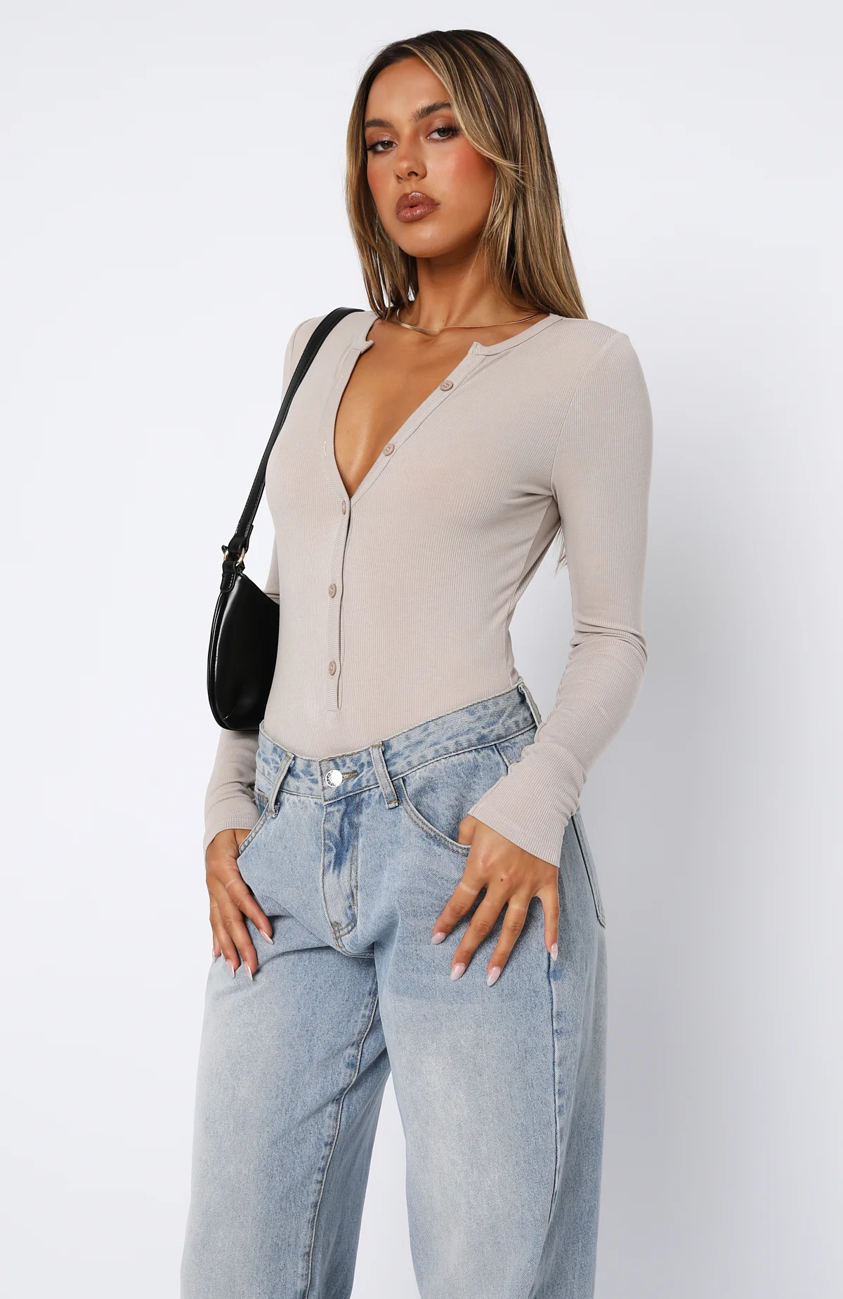 Never Be Tamed Long Sleeve Bodysuit Nude