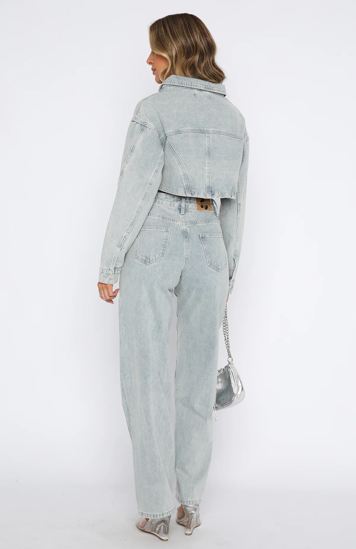 Did You Miss Me Mid Rise Straight Leg Denim Jeans Light Blue Acid Wash