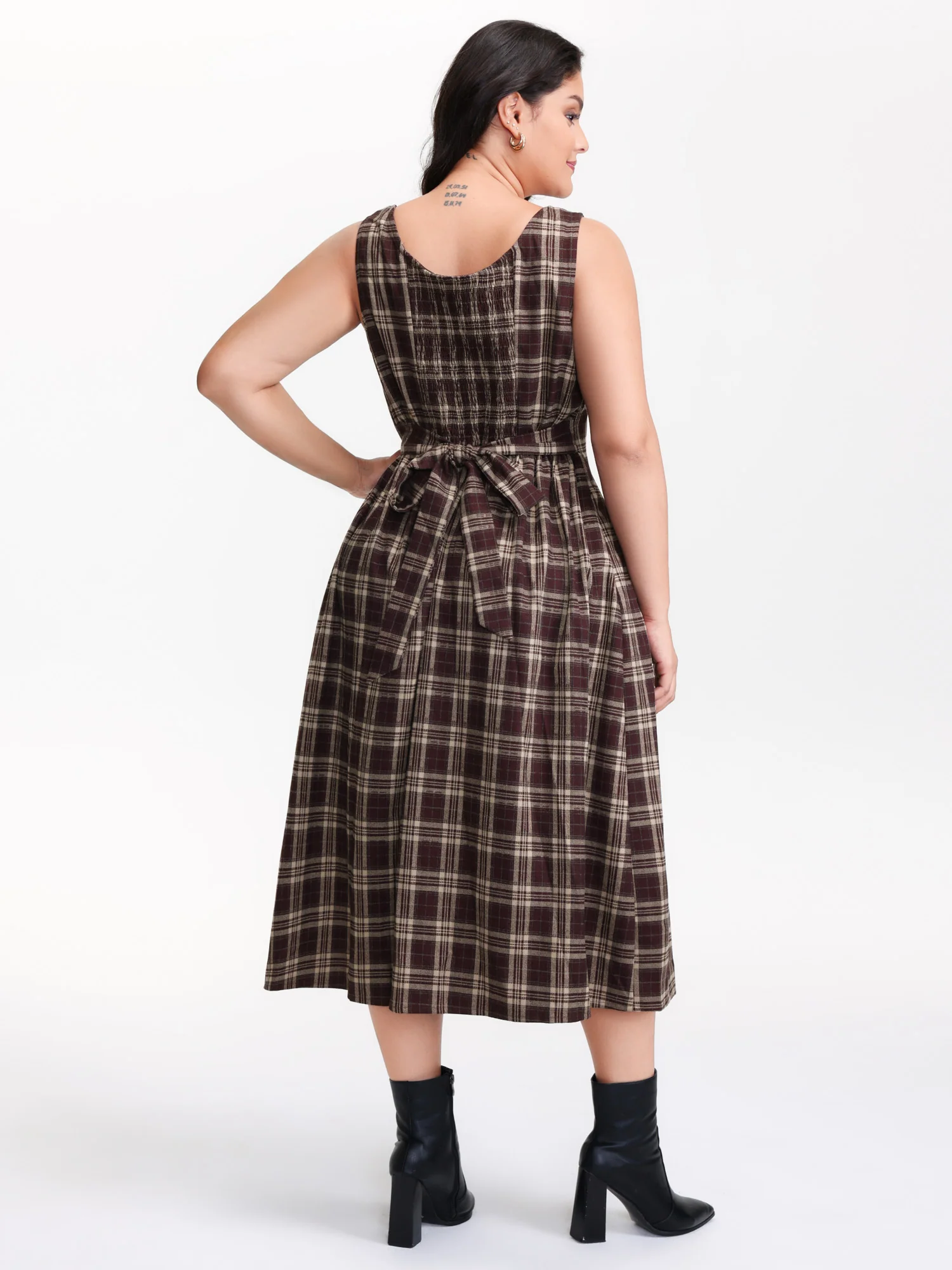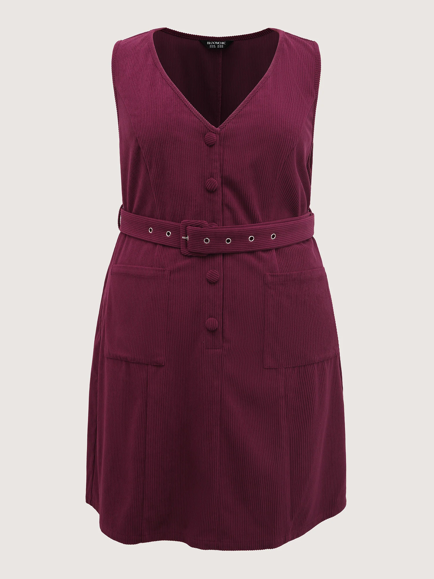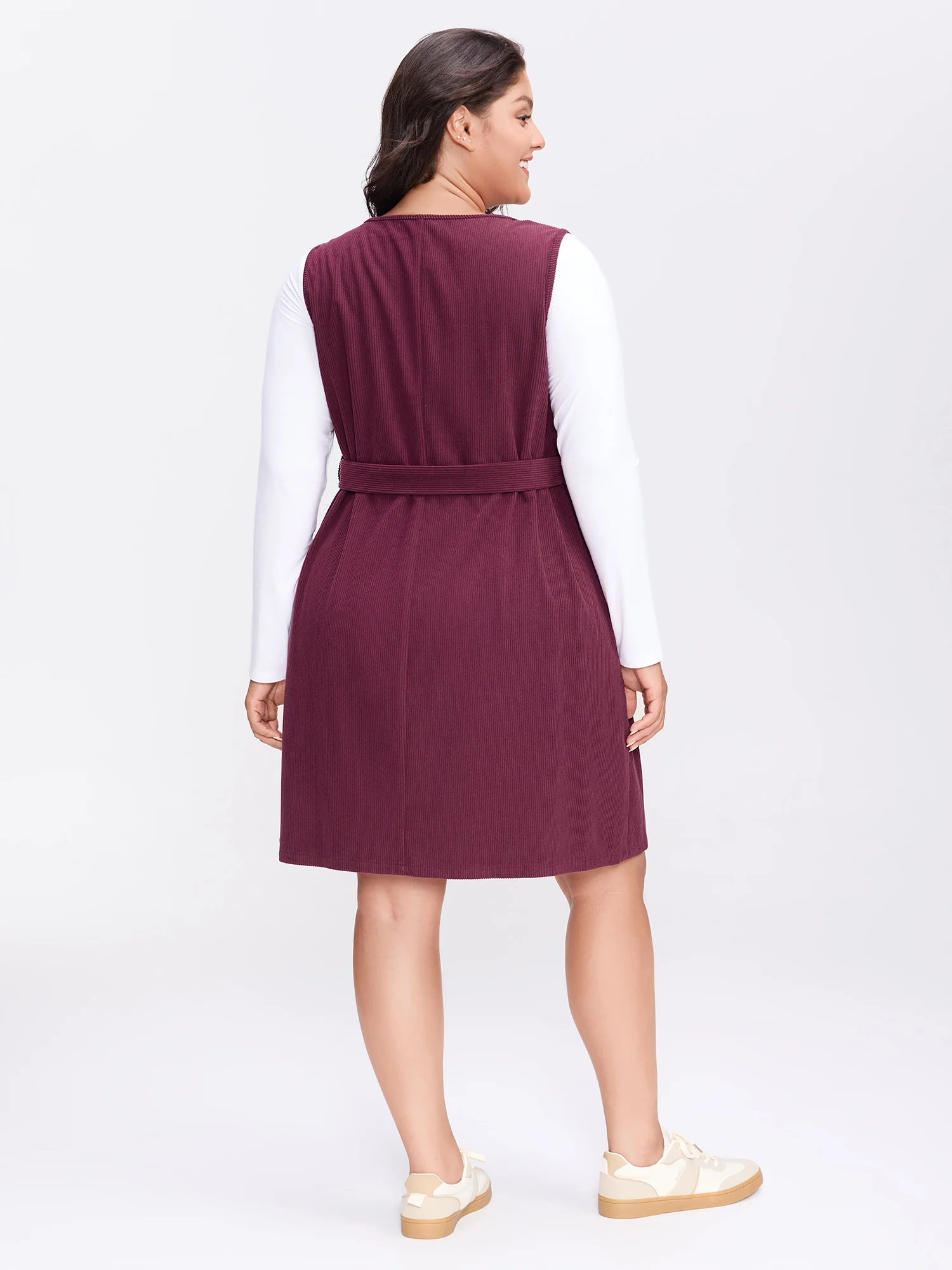 Textured Belted Waist Sleeveless Knee-Length Dress