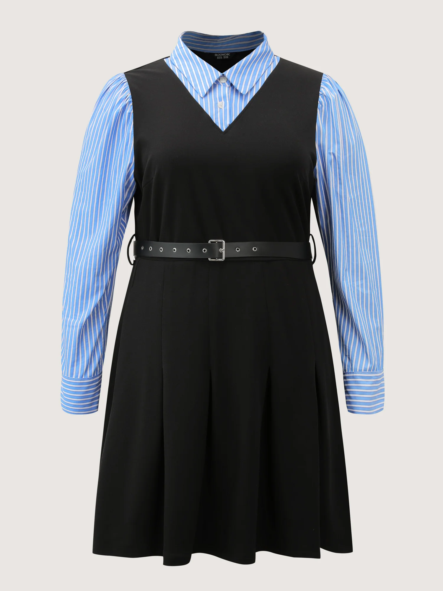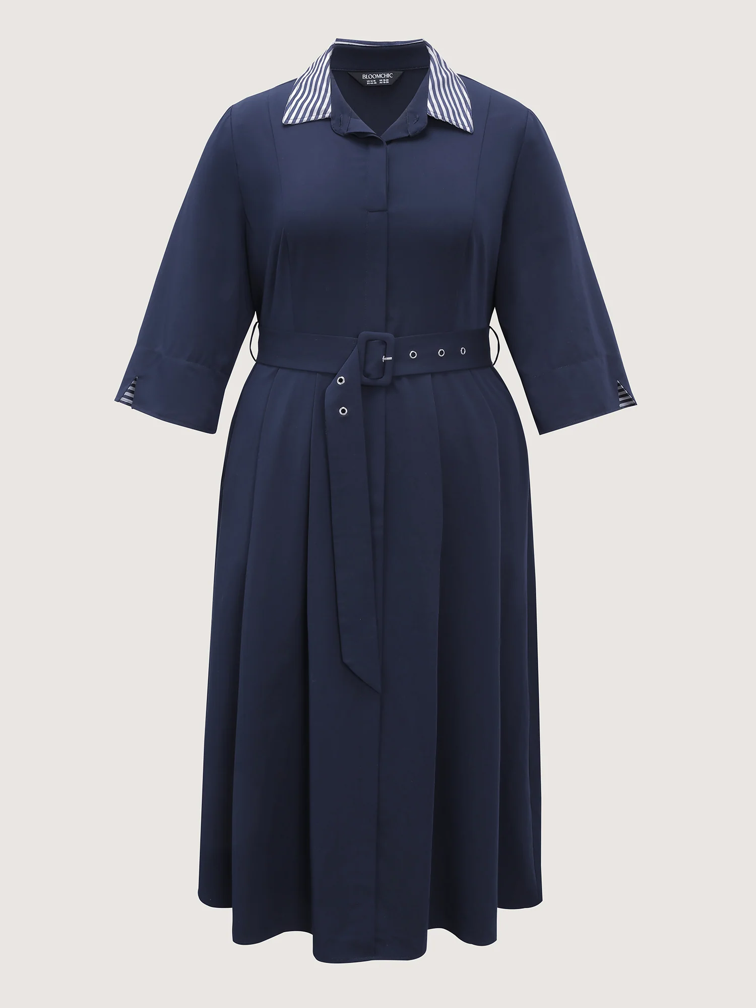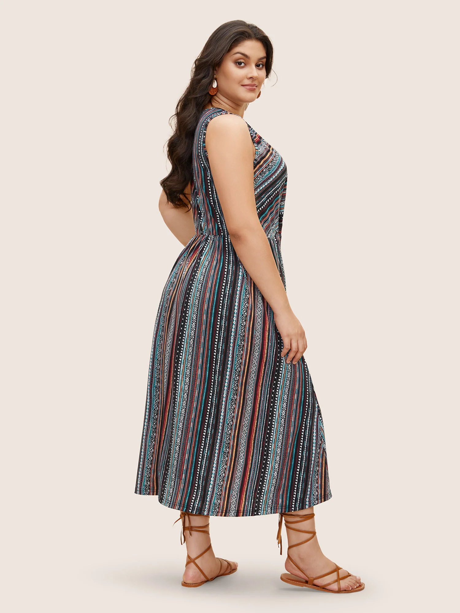 Textured Belted Waist Sleeveless Knee-Length Dress