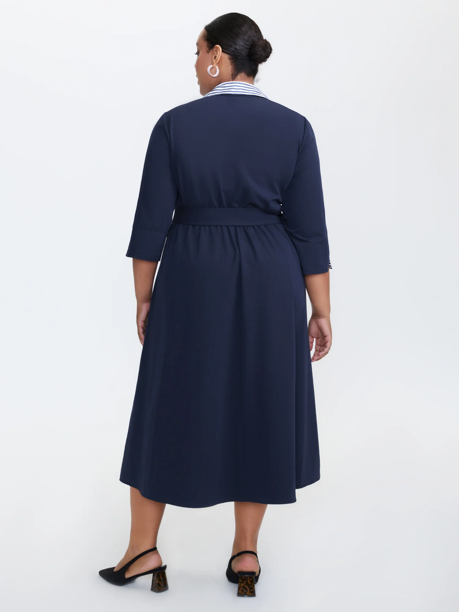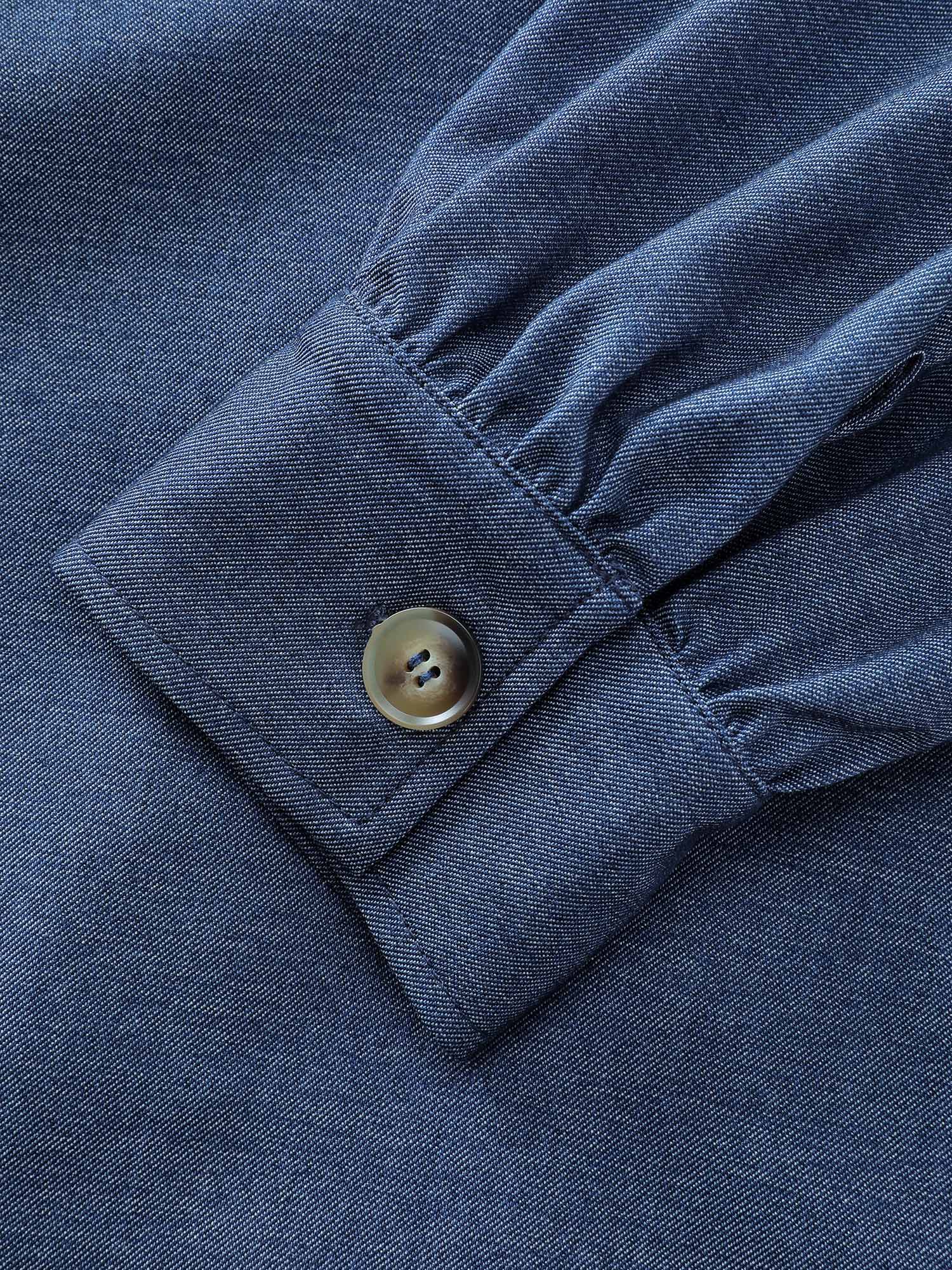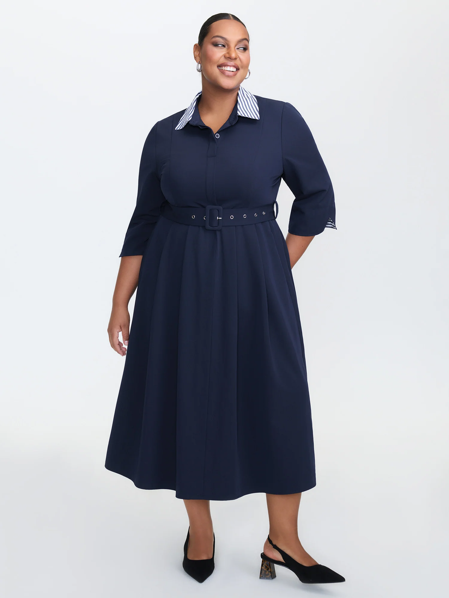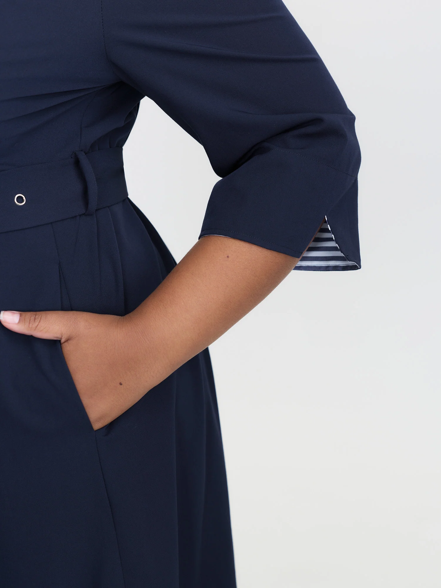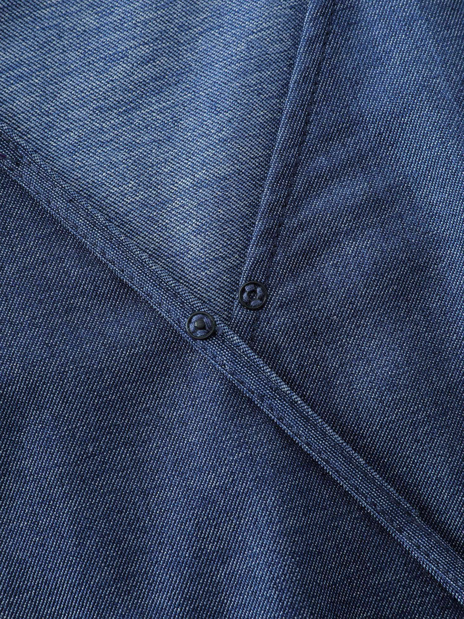 Denim-Like Cinched-Waist Pockets Midi Dress