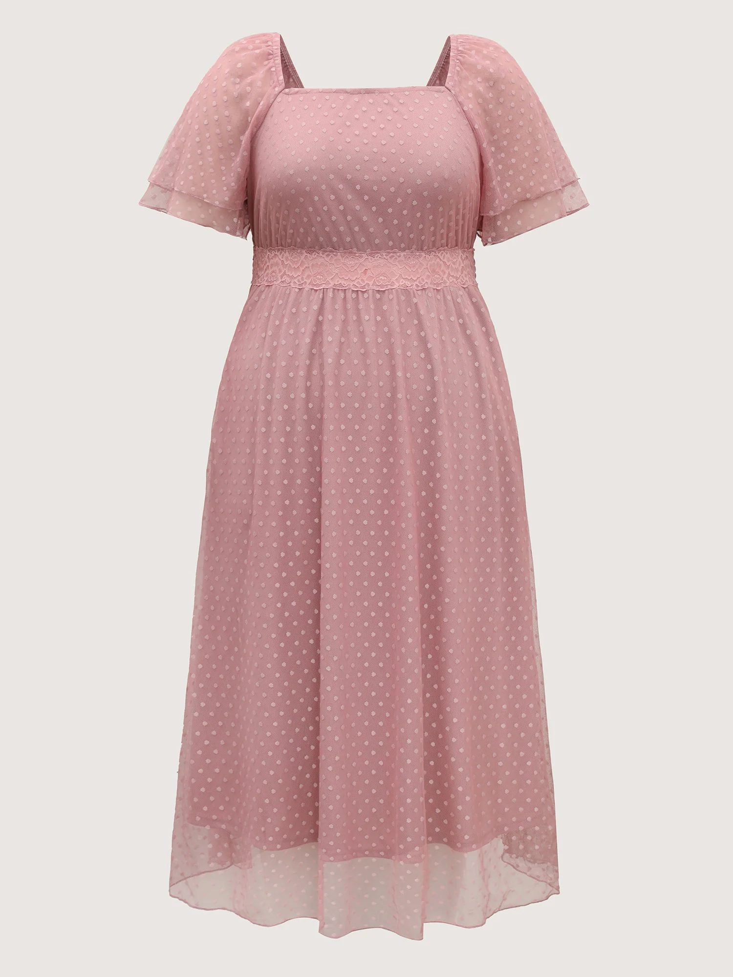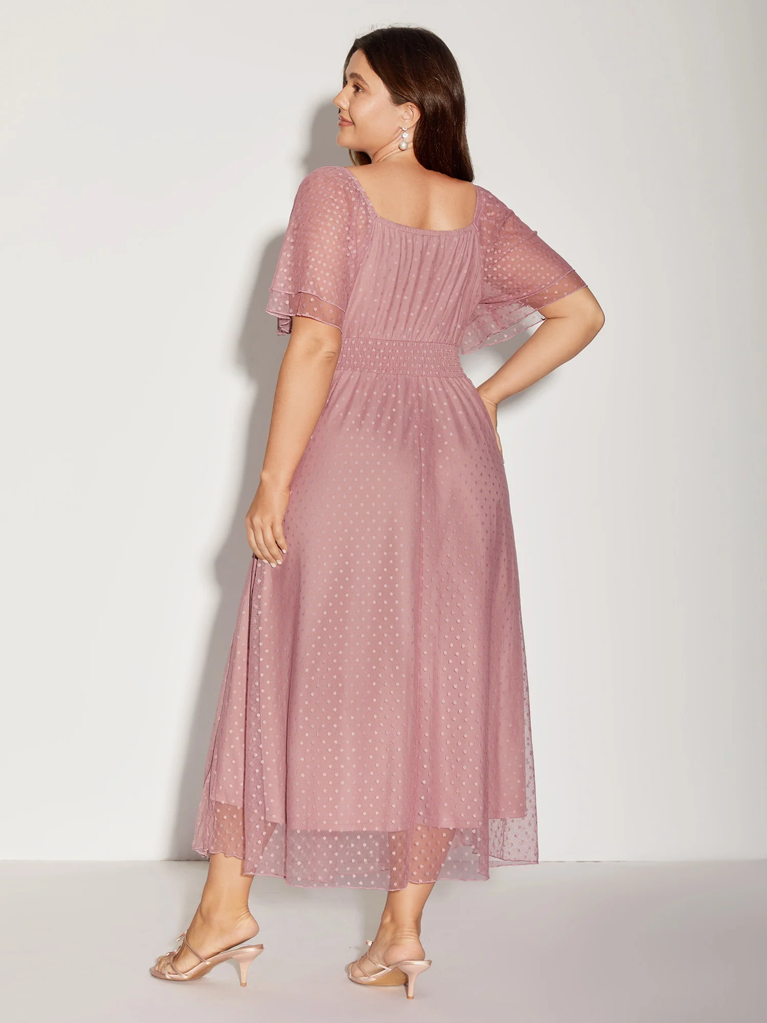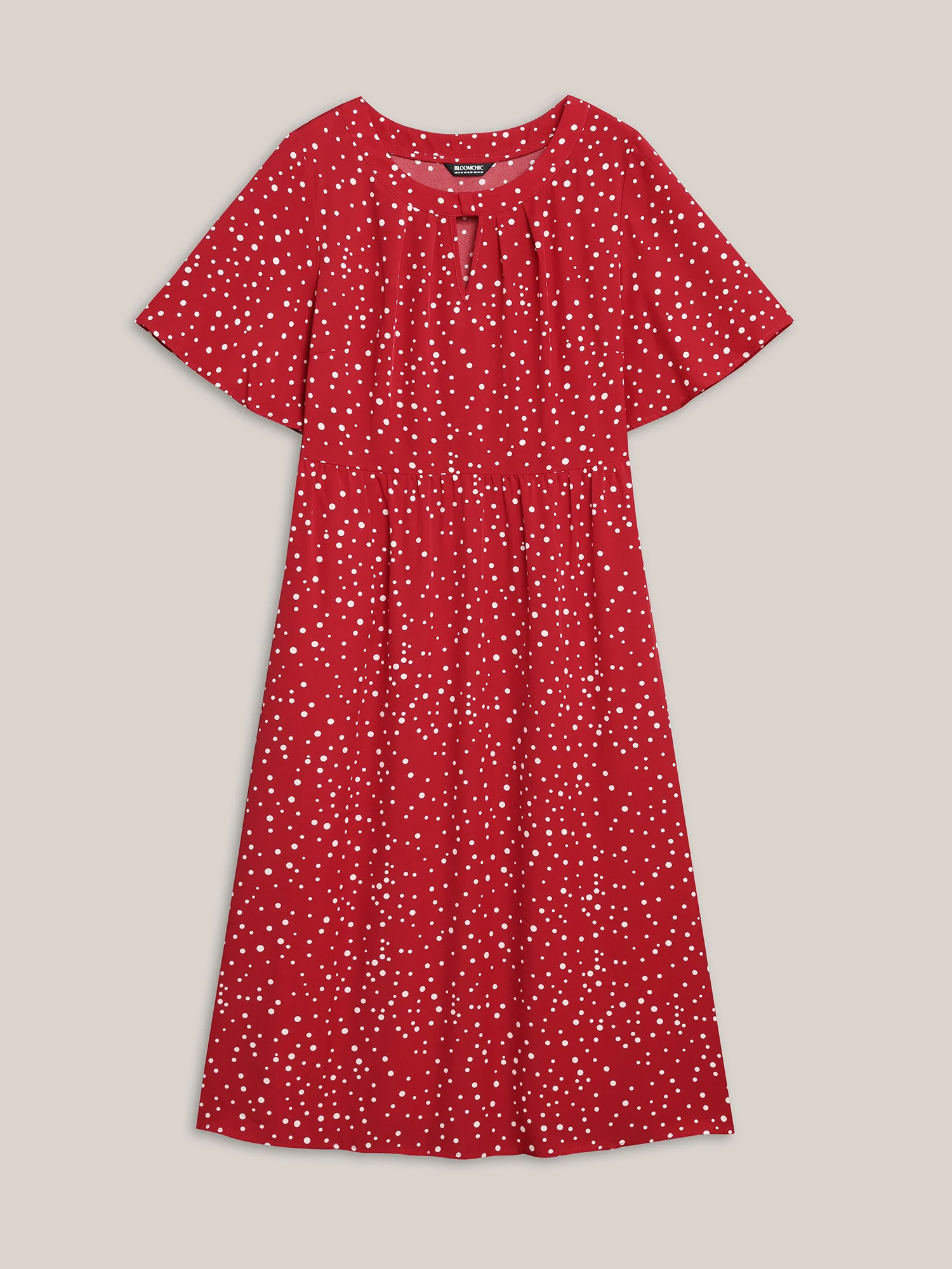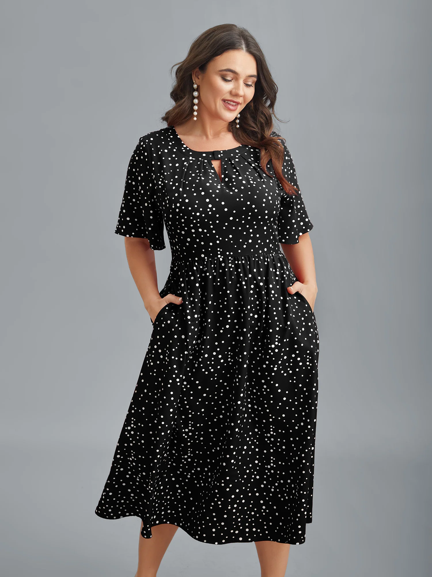 Polka Dots Print Cut-Out Flutter Sleeve Midi Dress