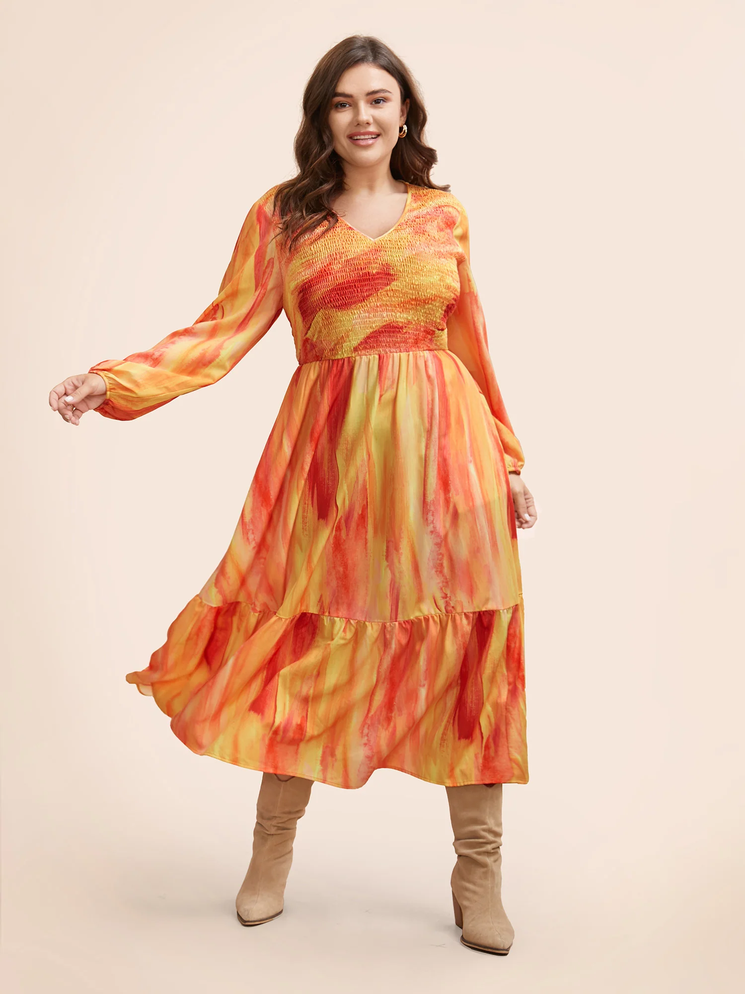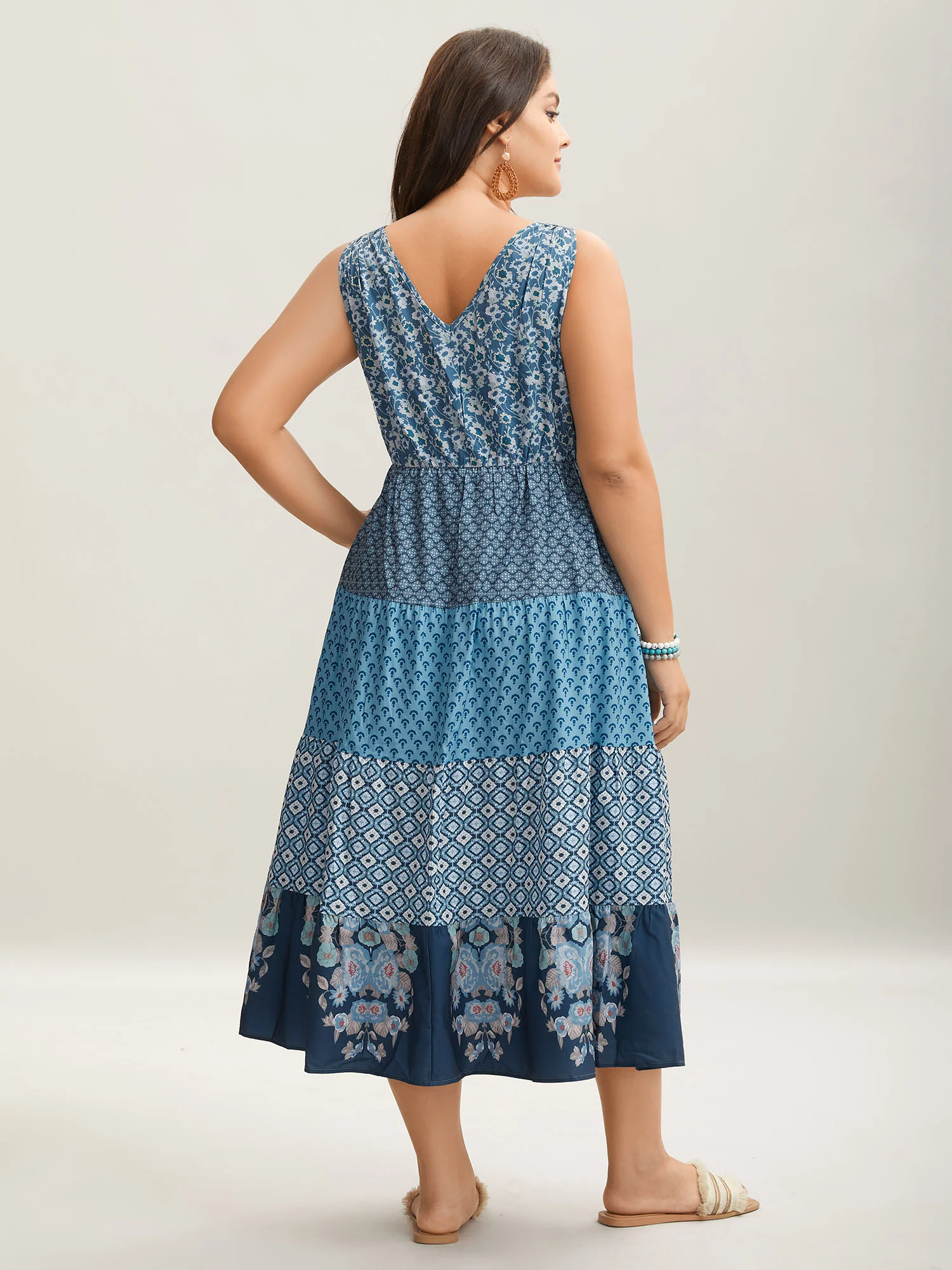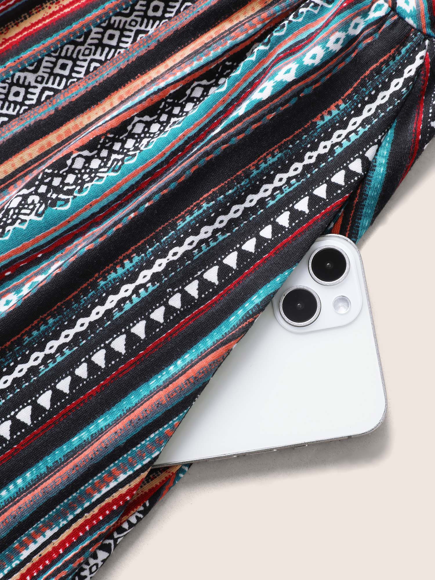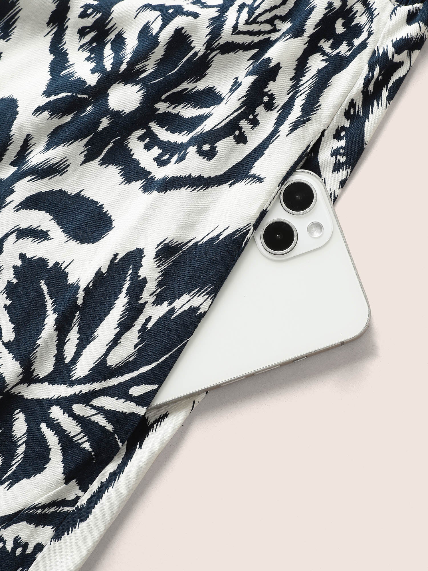 Boho Print Ruffles Shirred Pocket Elastic Waist Dress