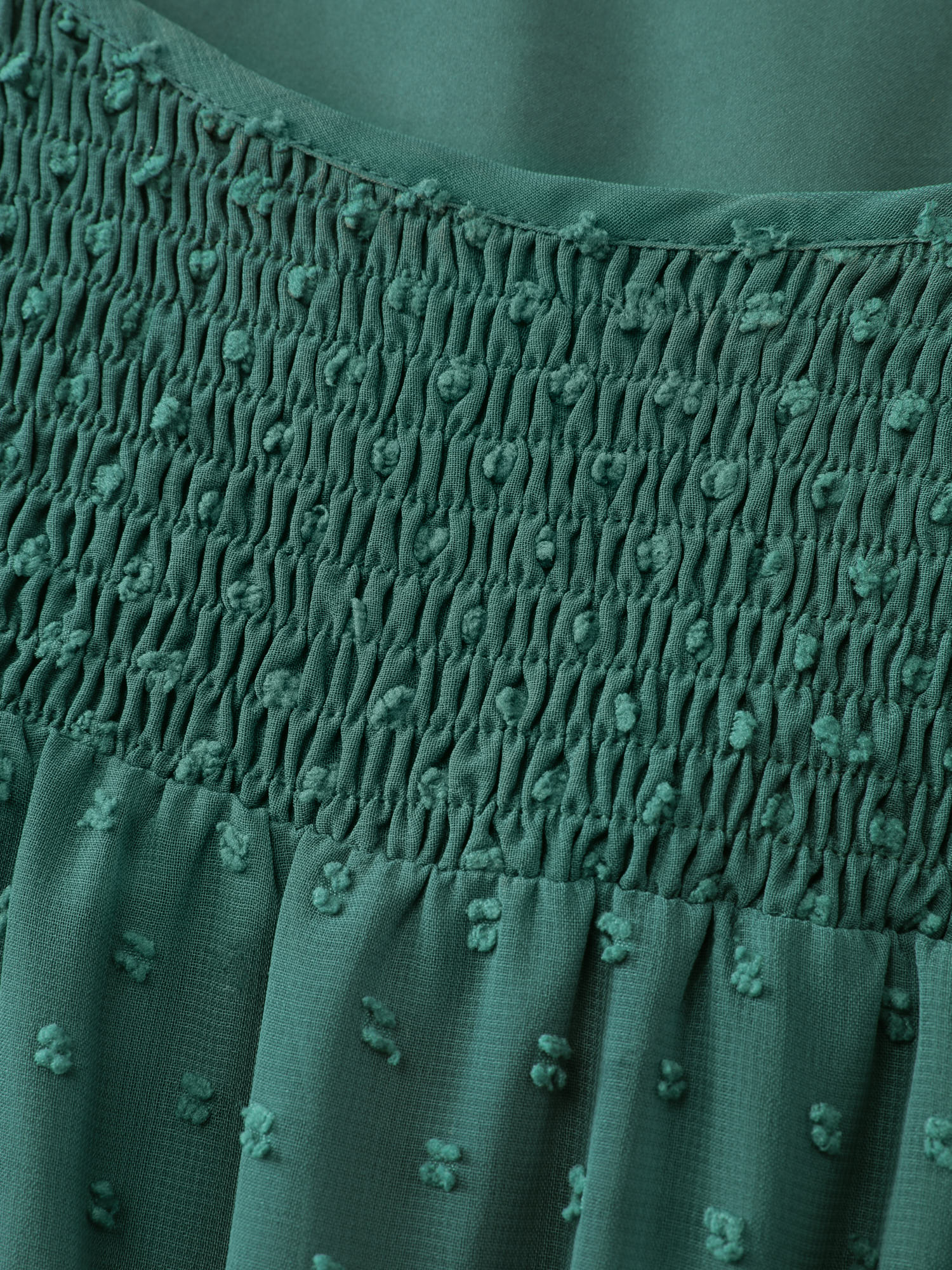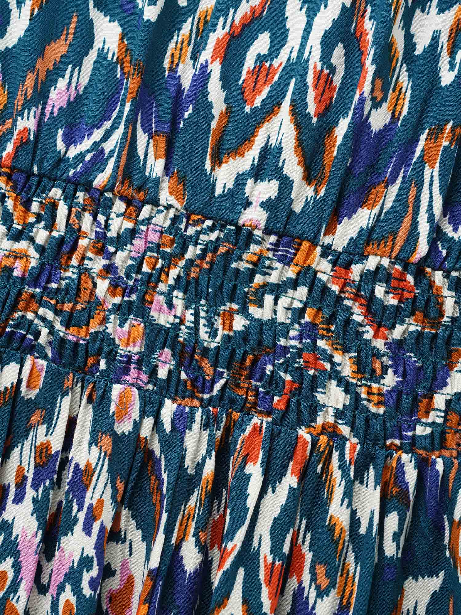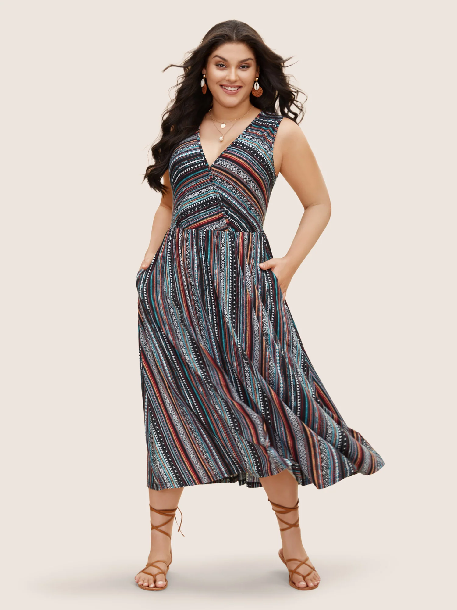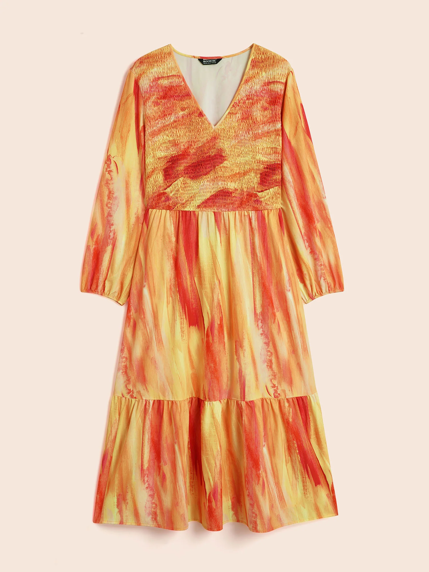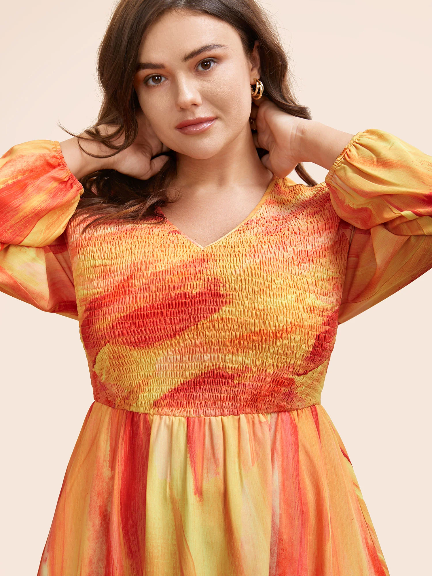 Boho Print Ruffles Shirred Pocket Elastic Waist Dress