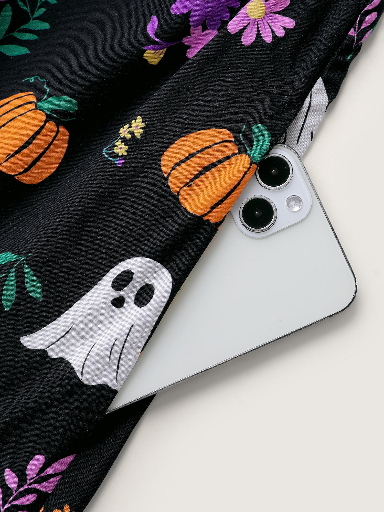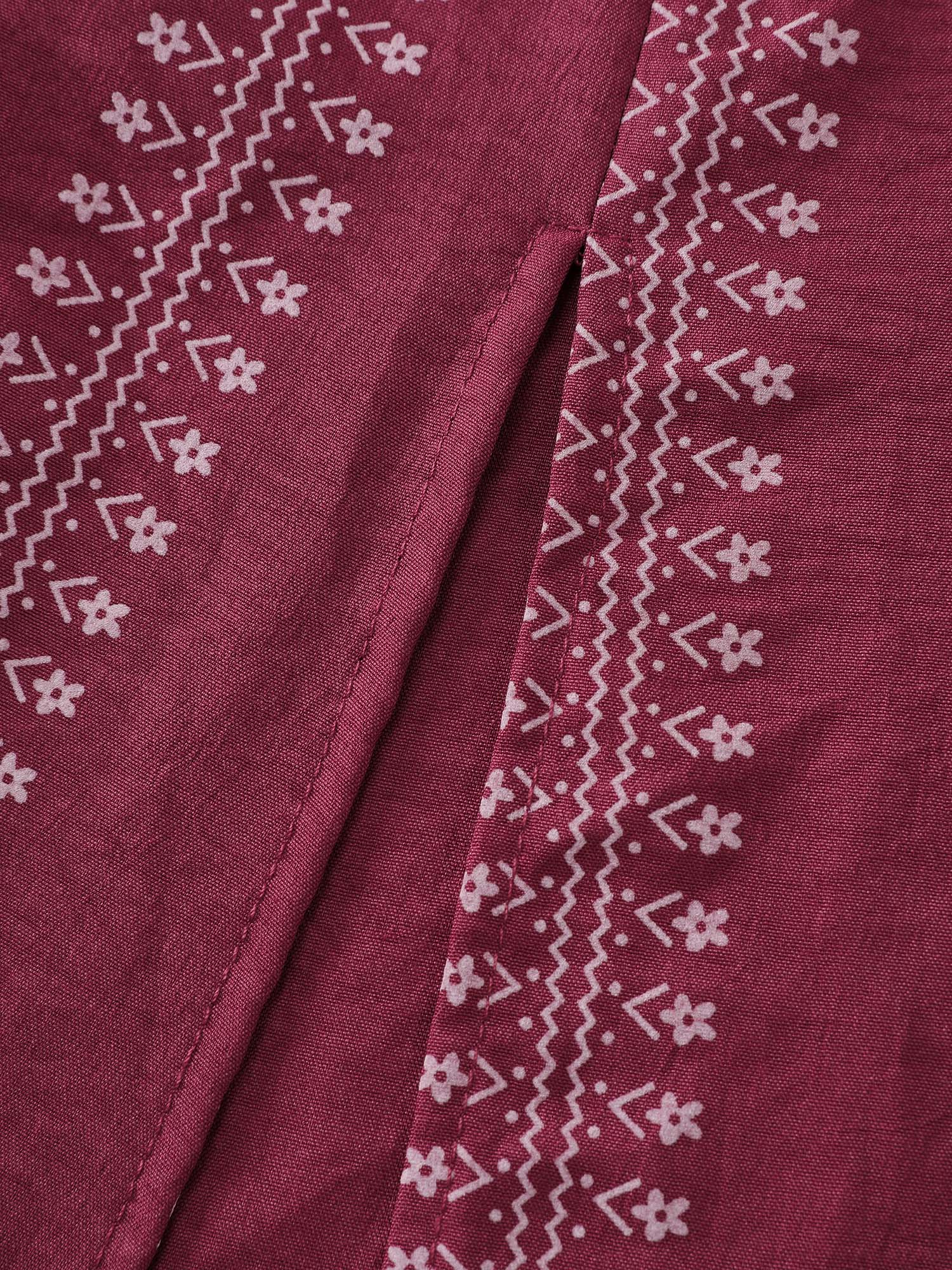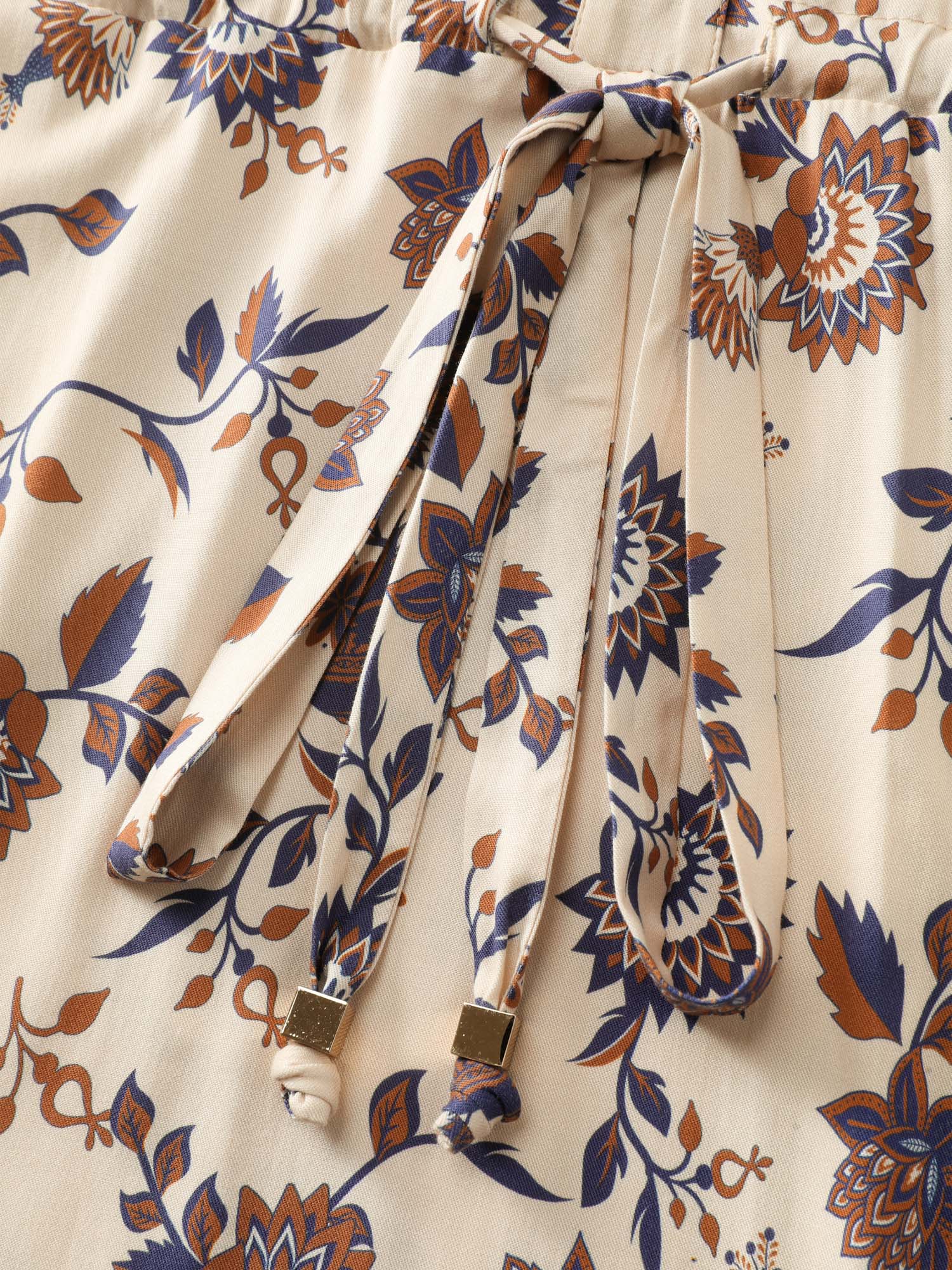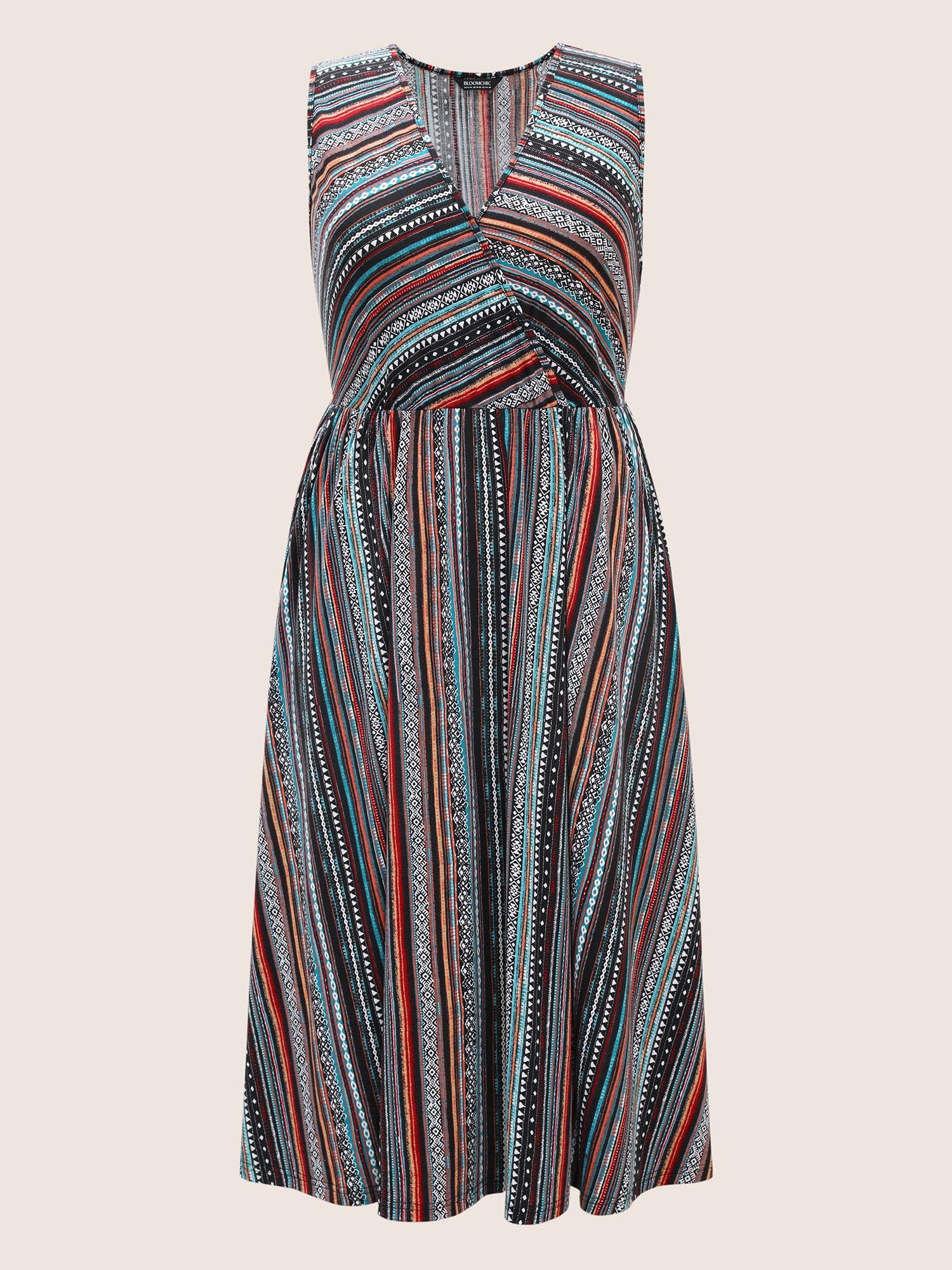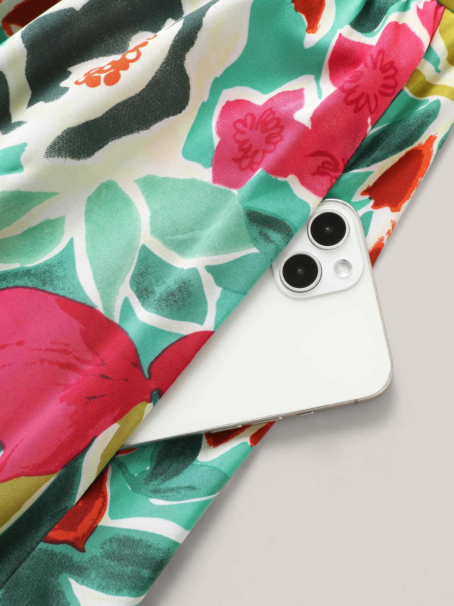 Boho Print Ruffles Shirred Pocket Elastic Waist Dress