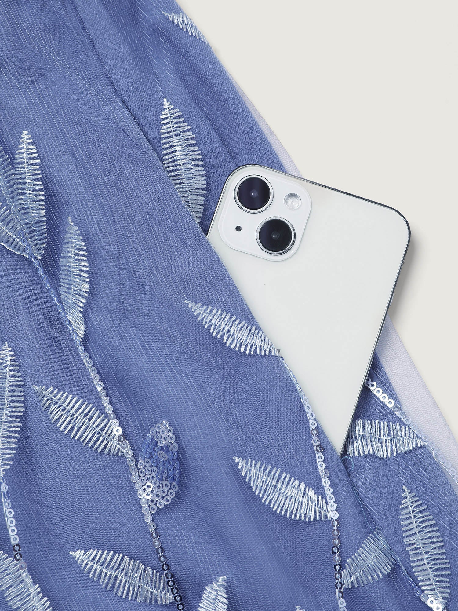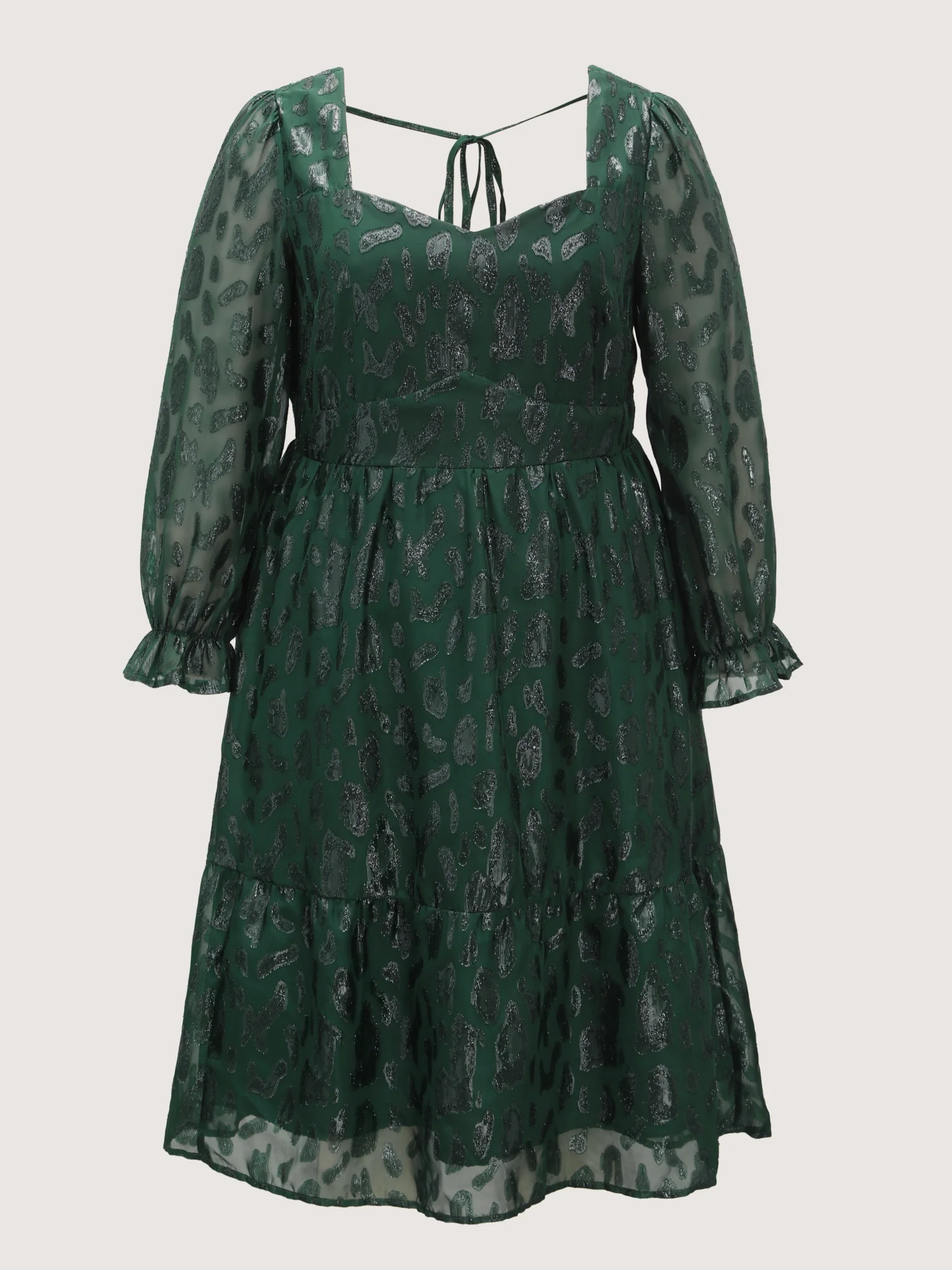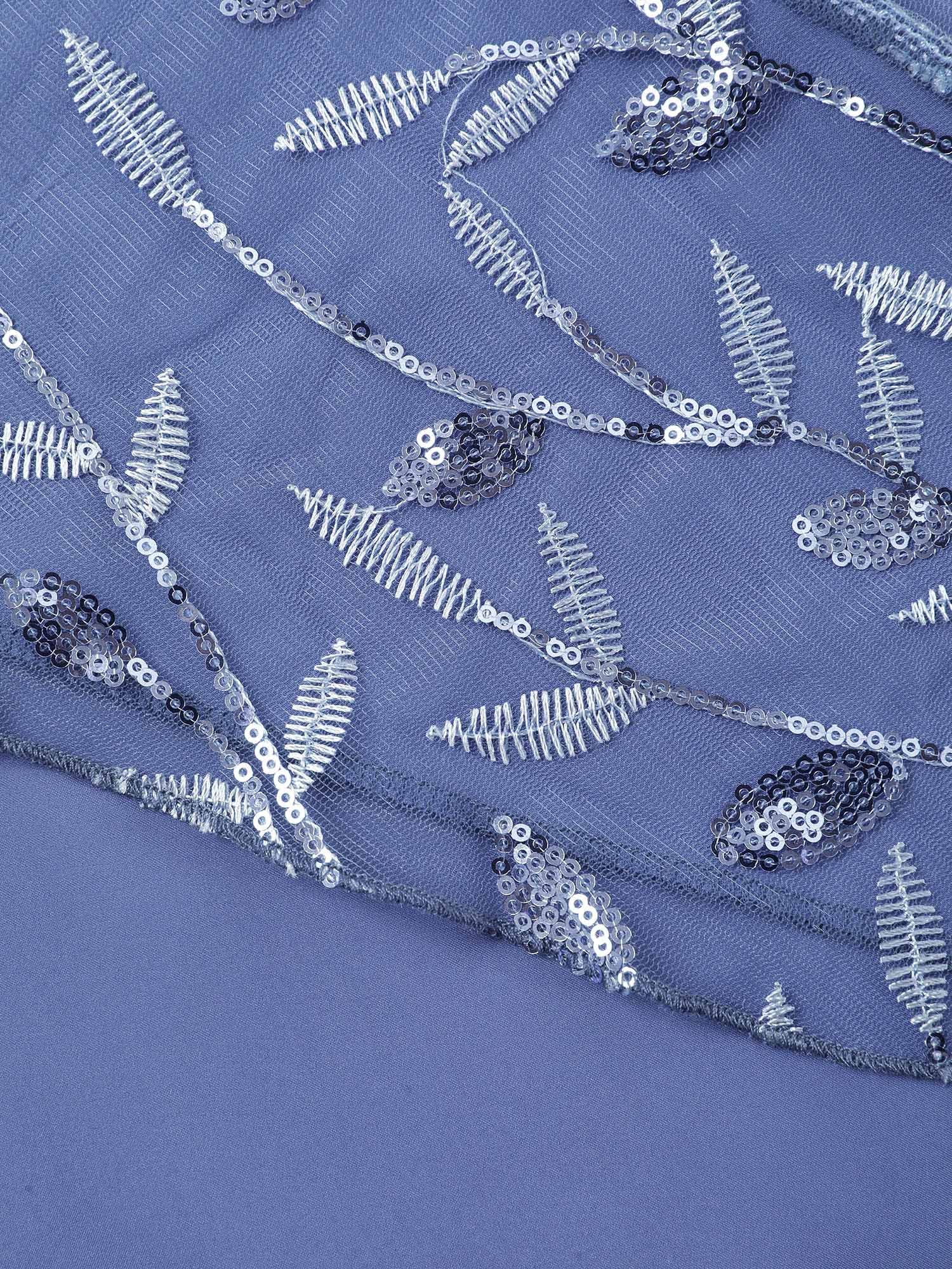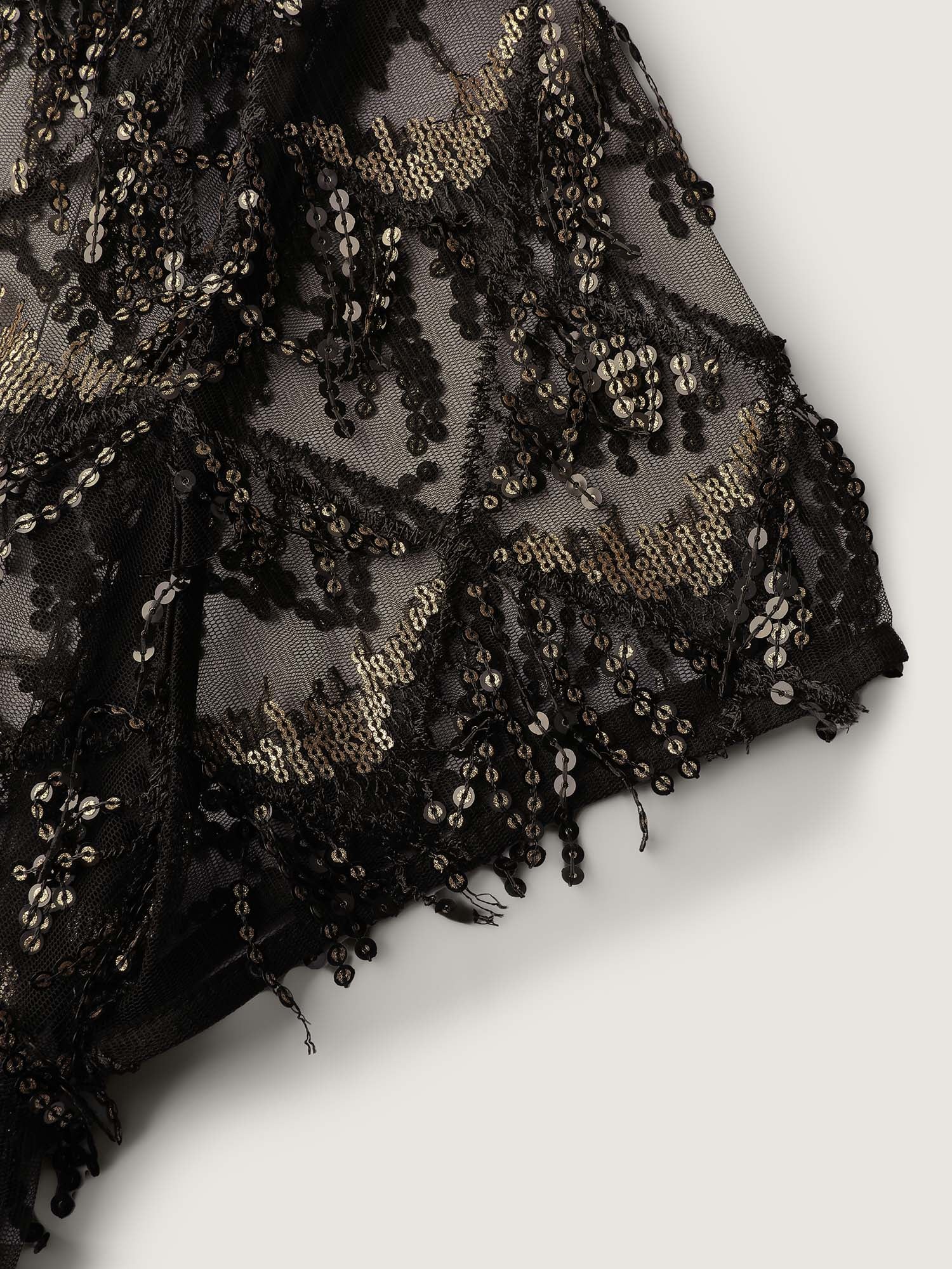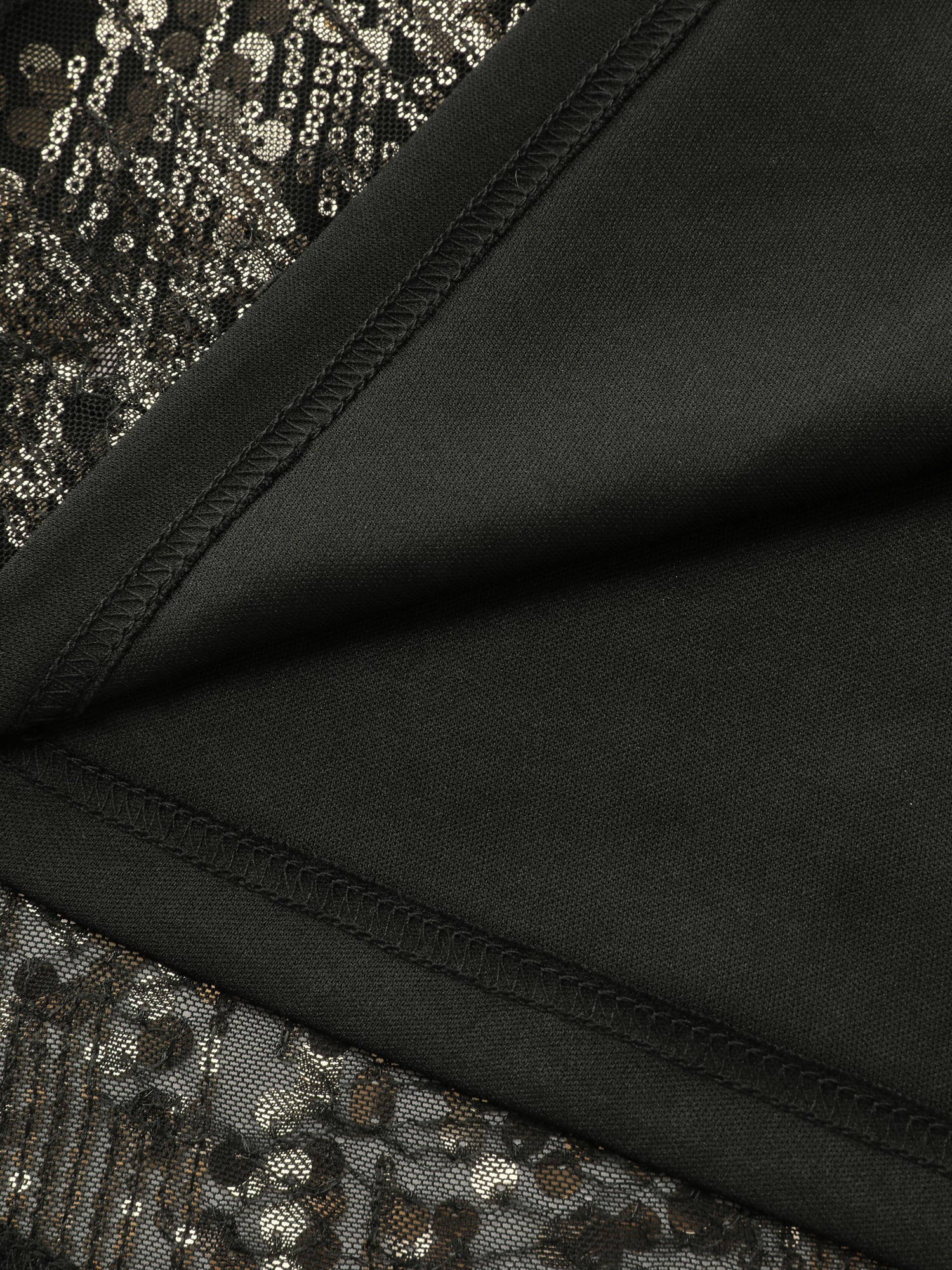 Lace Mesh Petal Hem Leaf Sequin Midi Dress