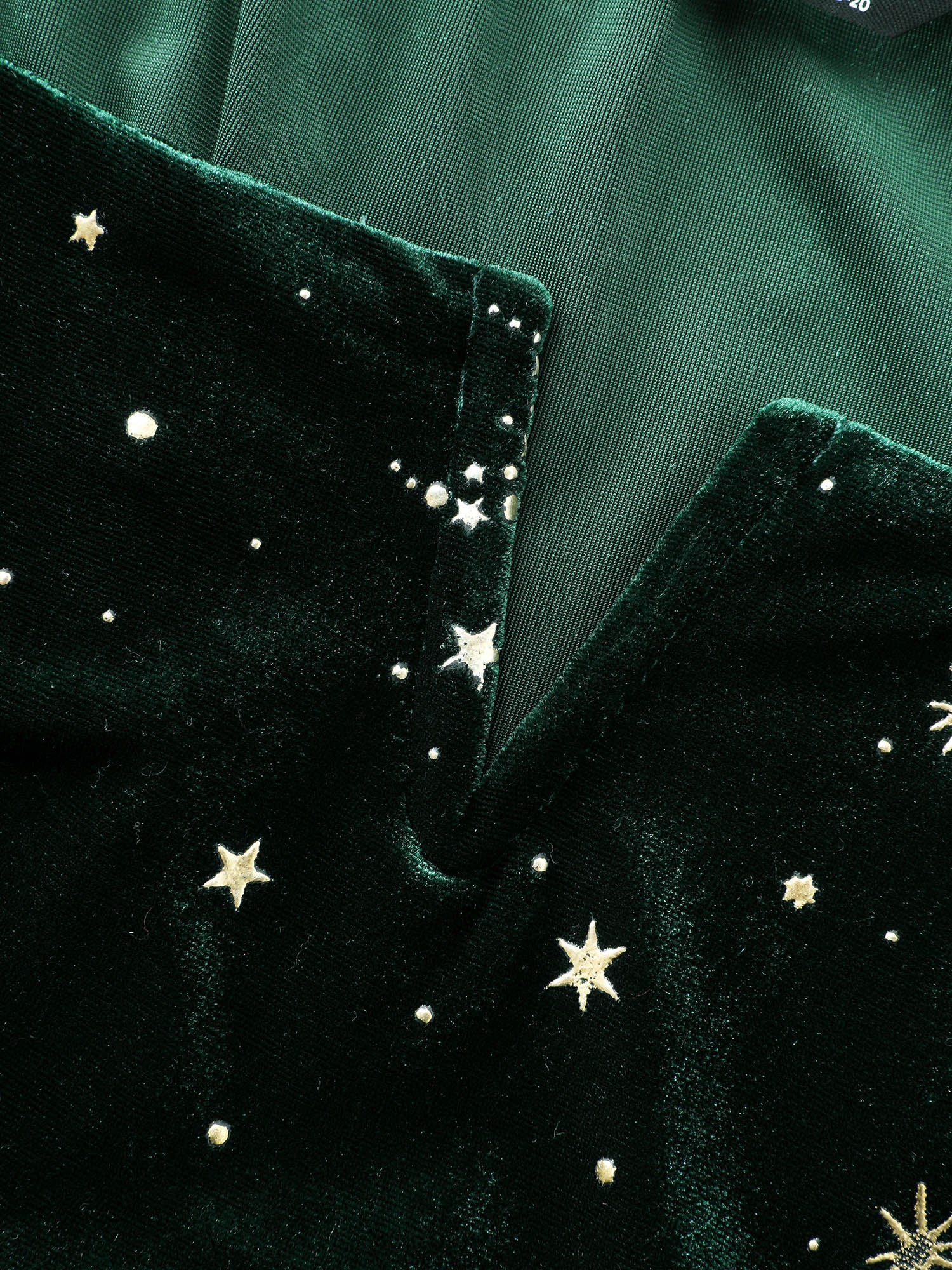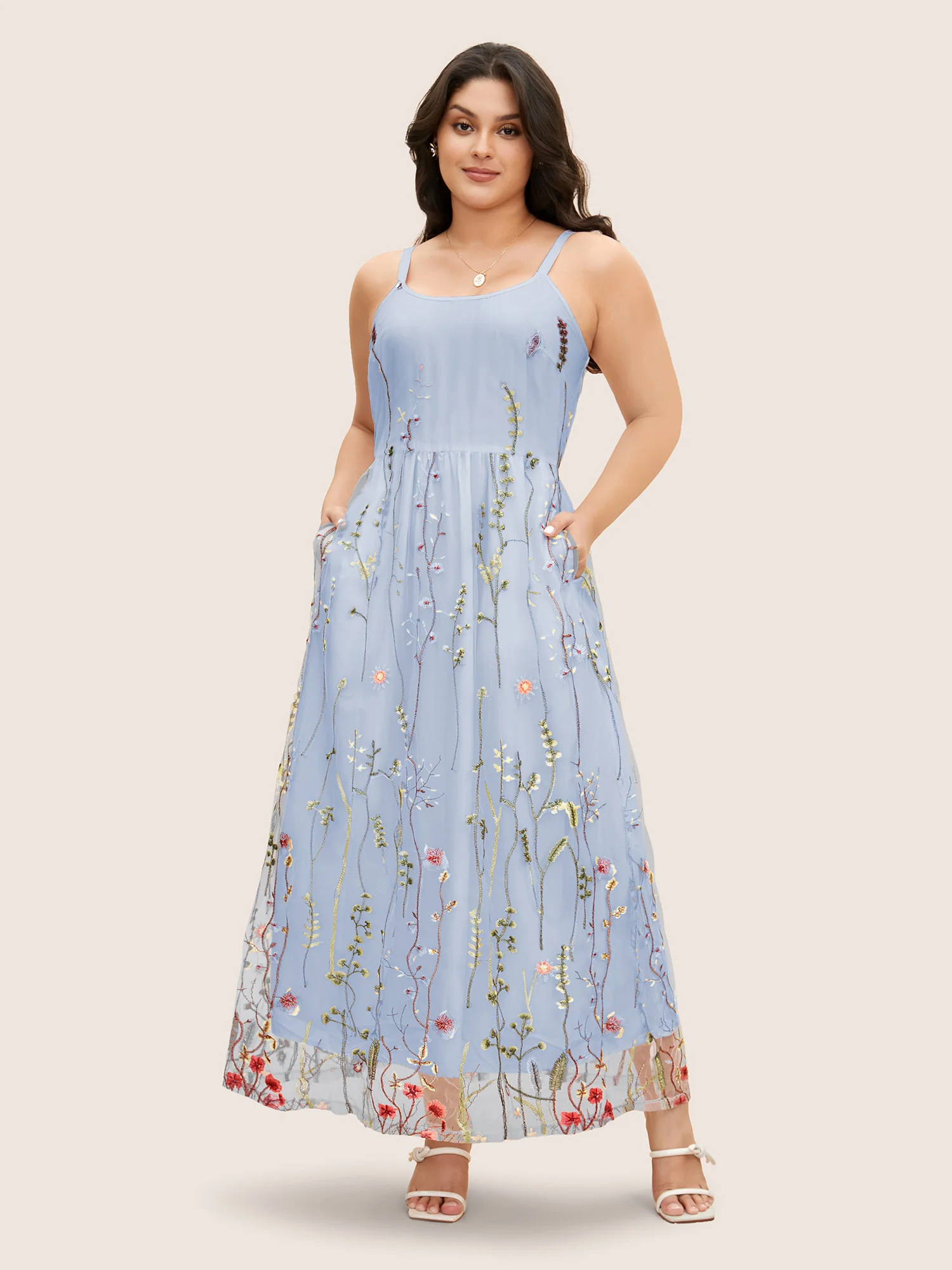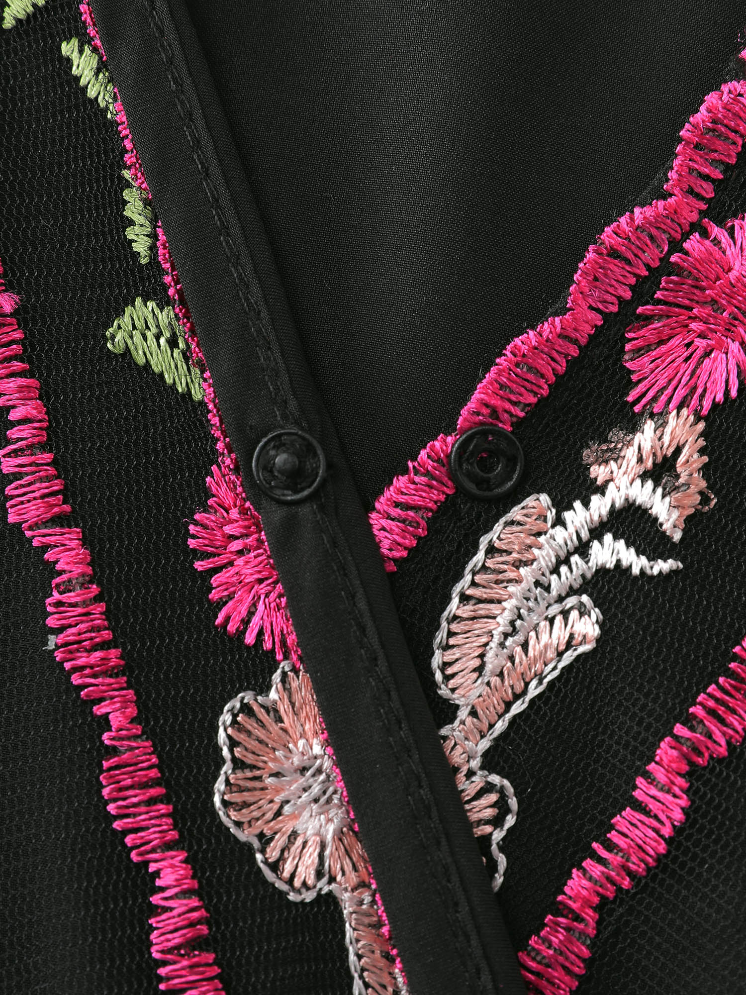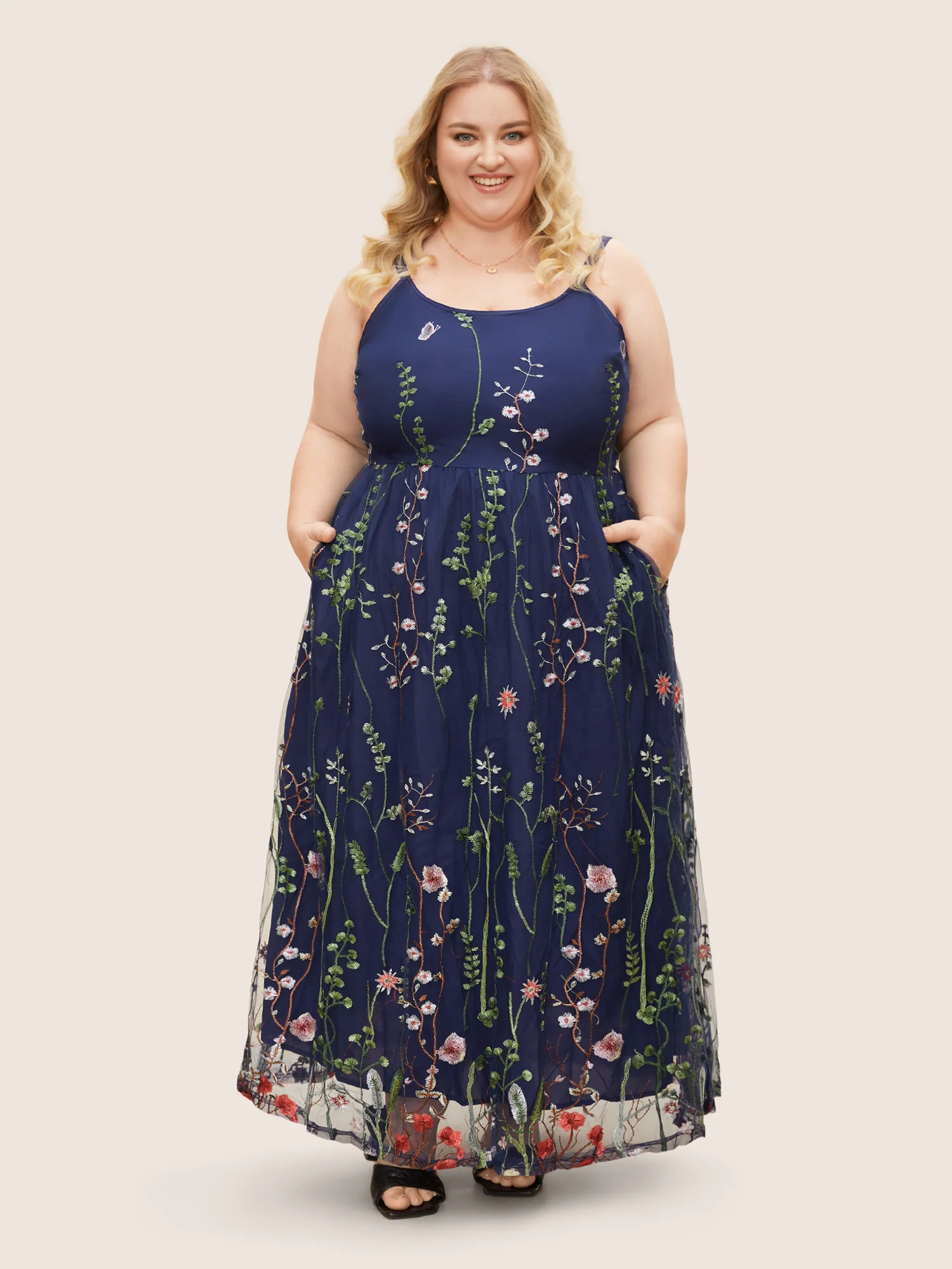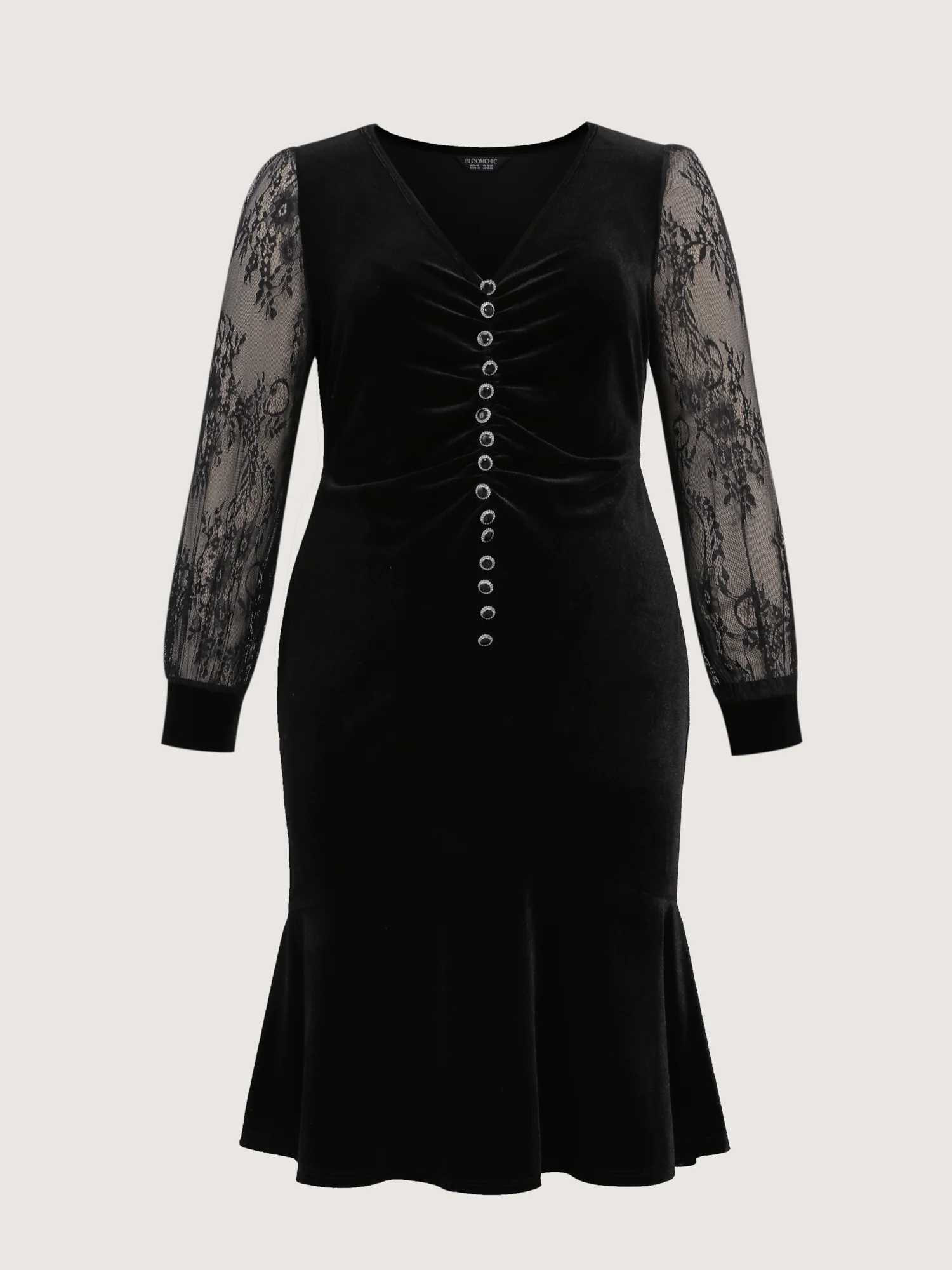 Lace Mesh Petal Hem Leaf Sequin Midi Dress