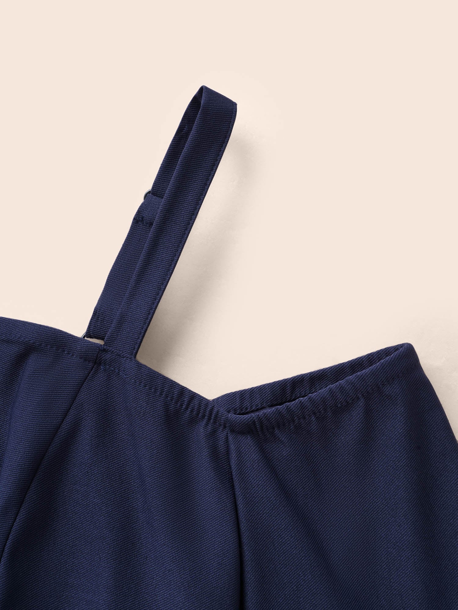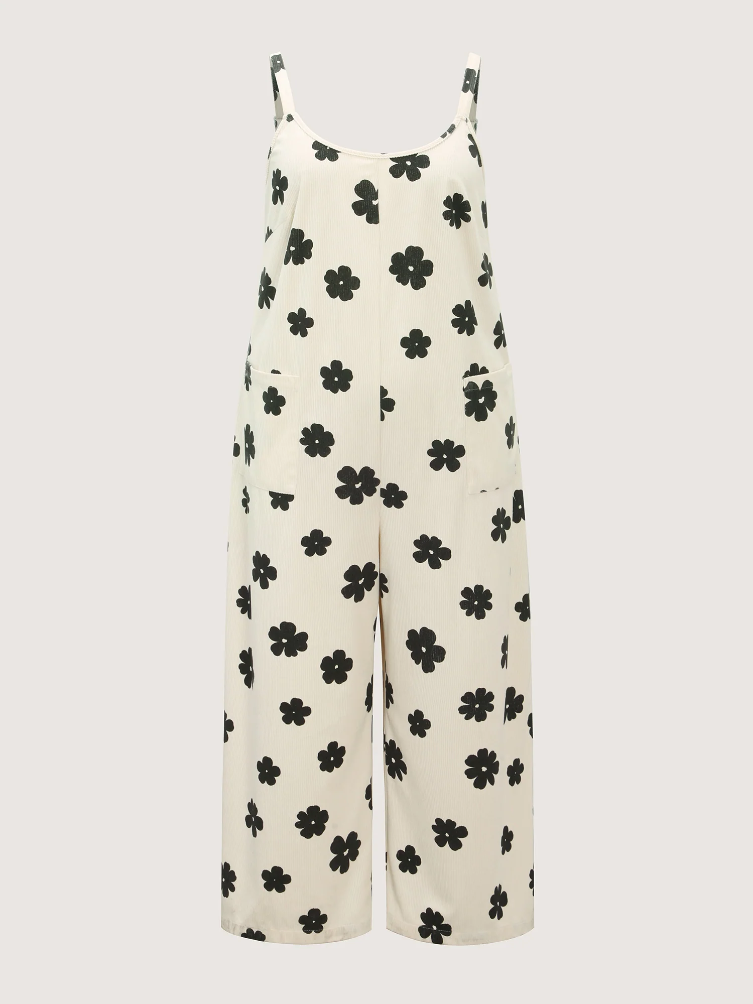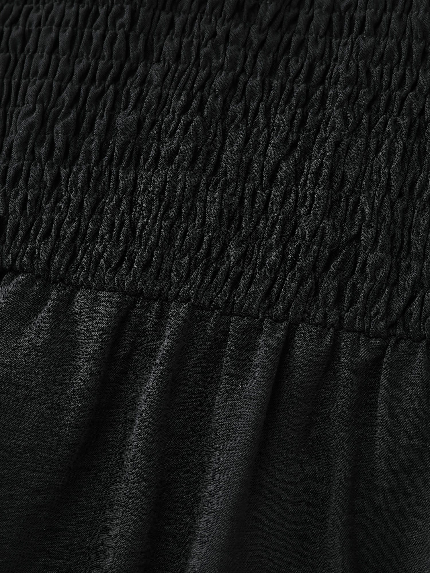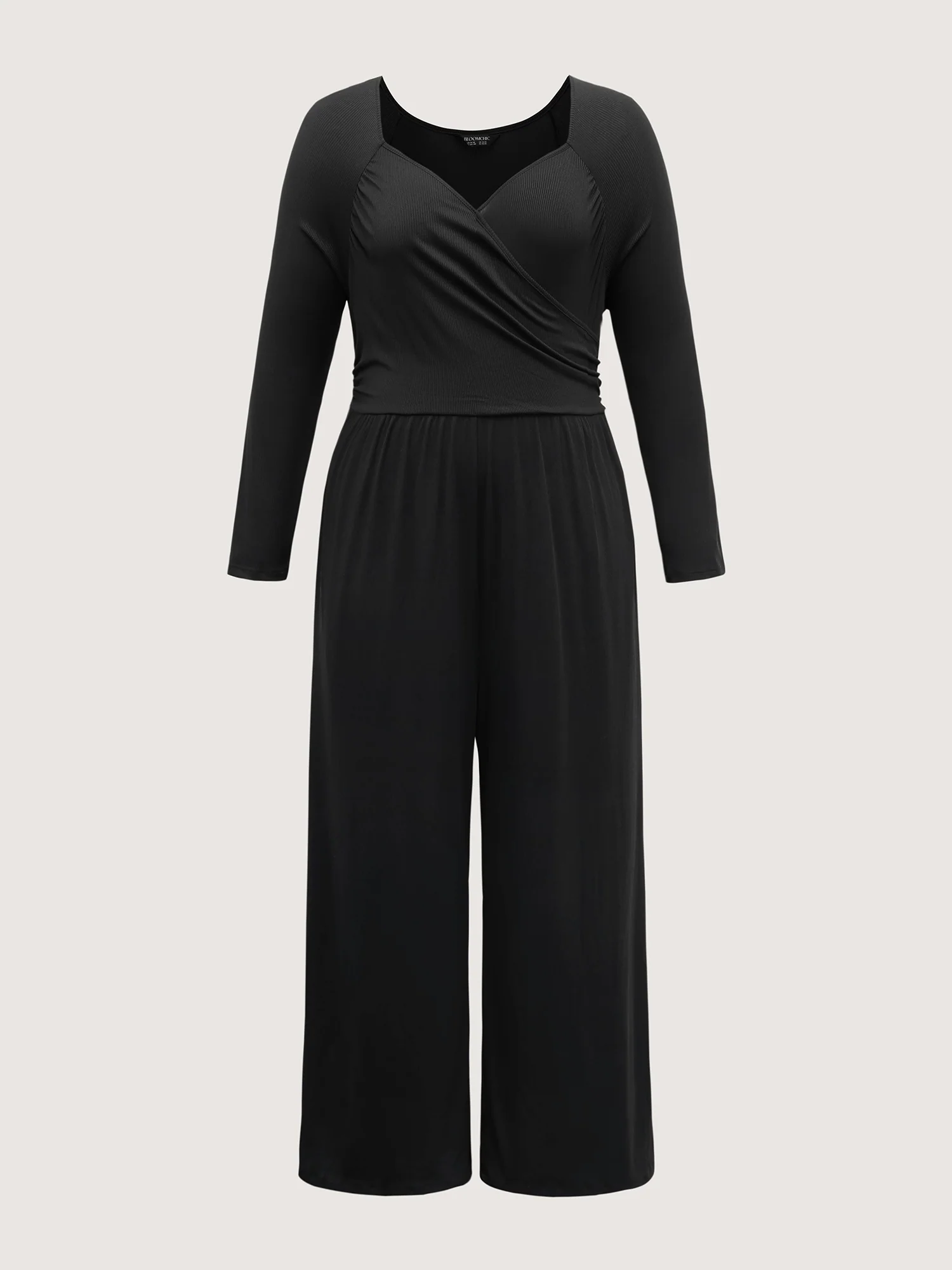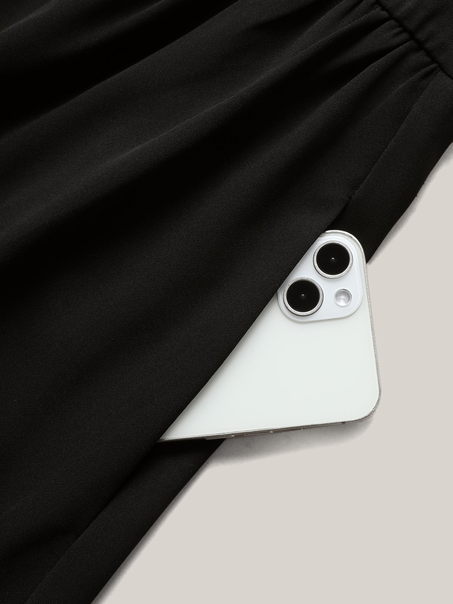 Shirred Pockets Wide-Leg Plain Jumpsuit