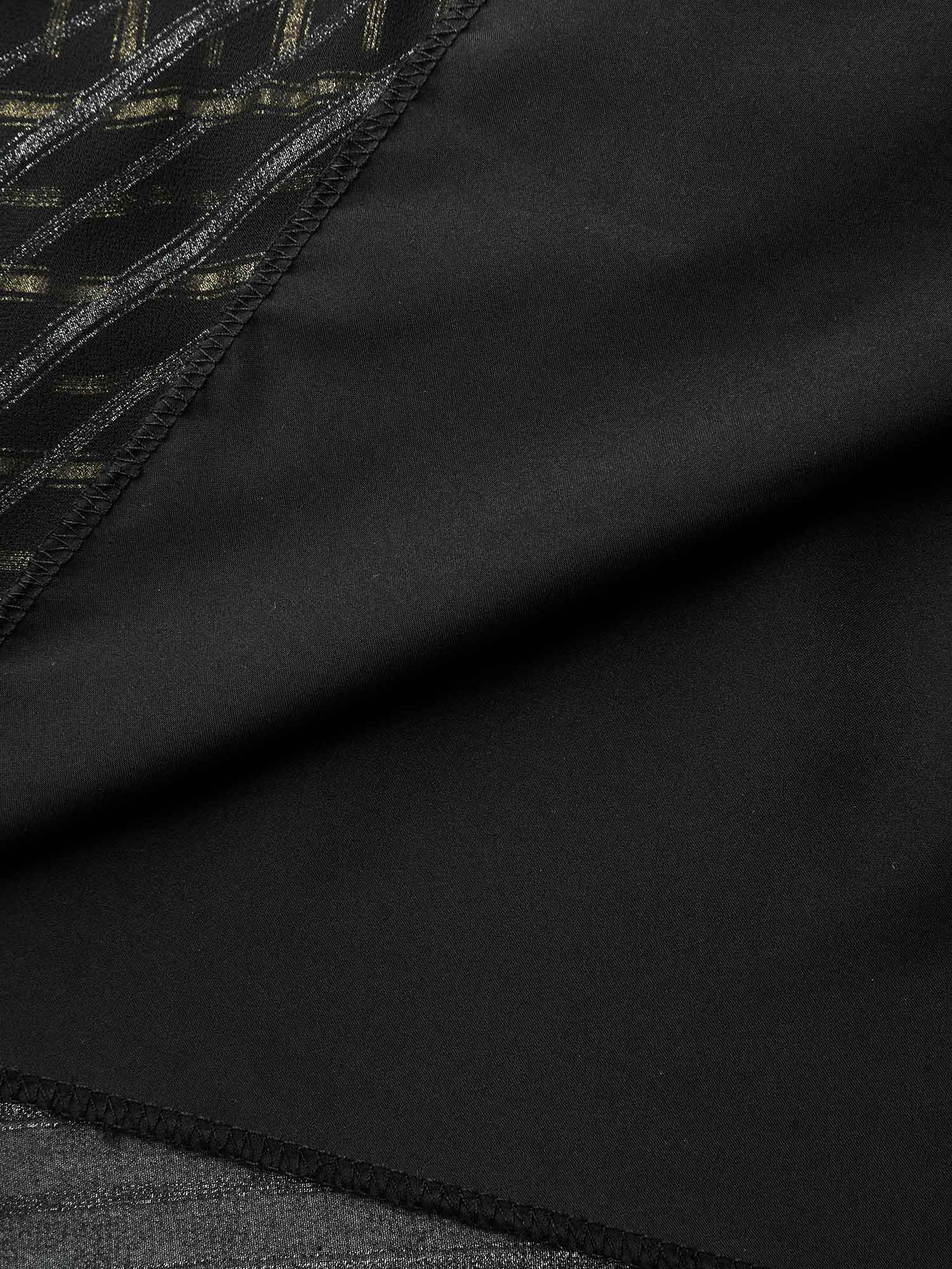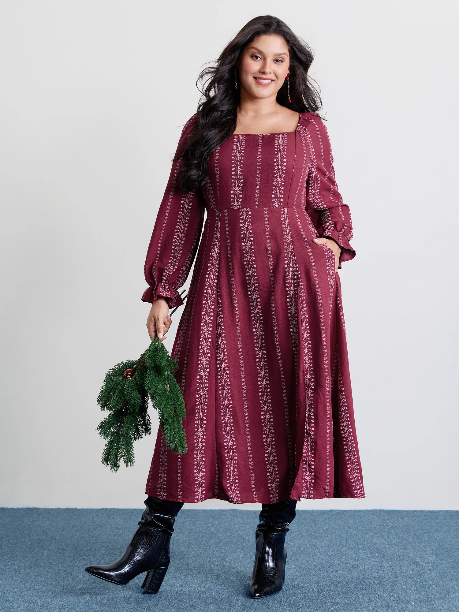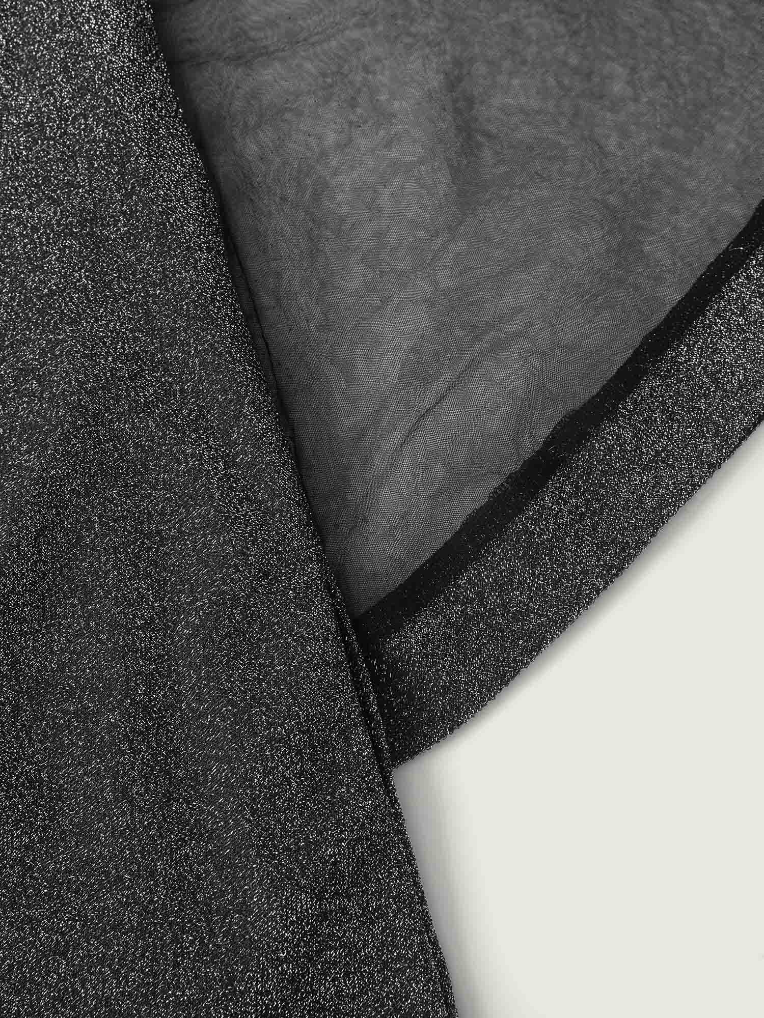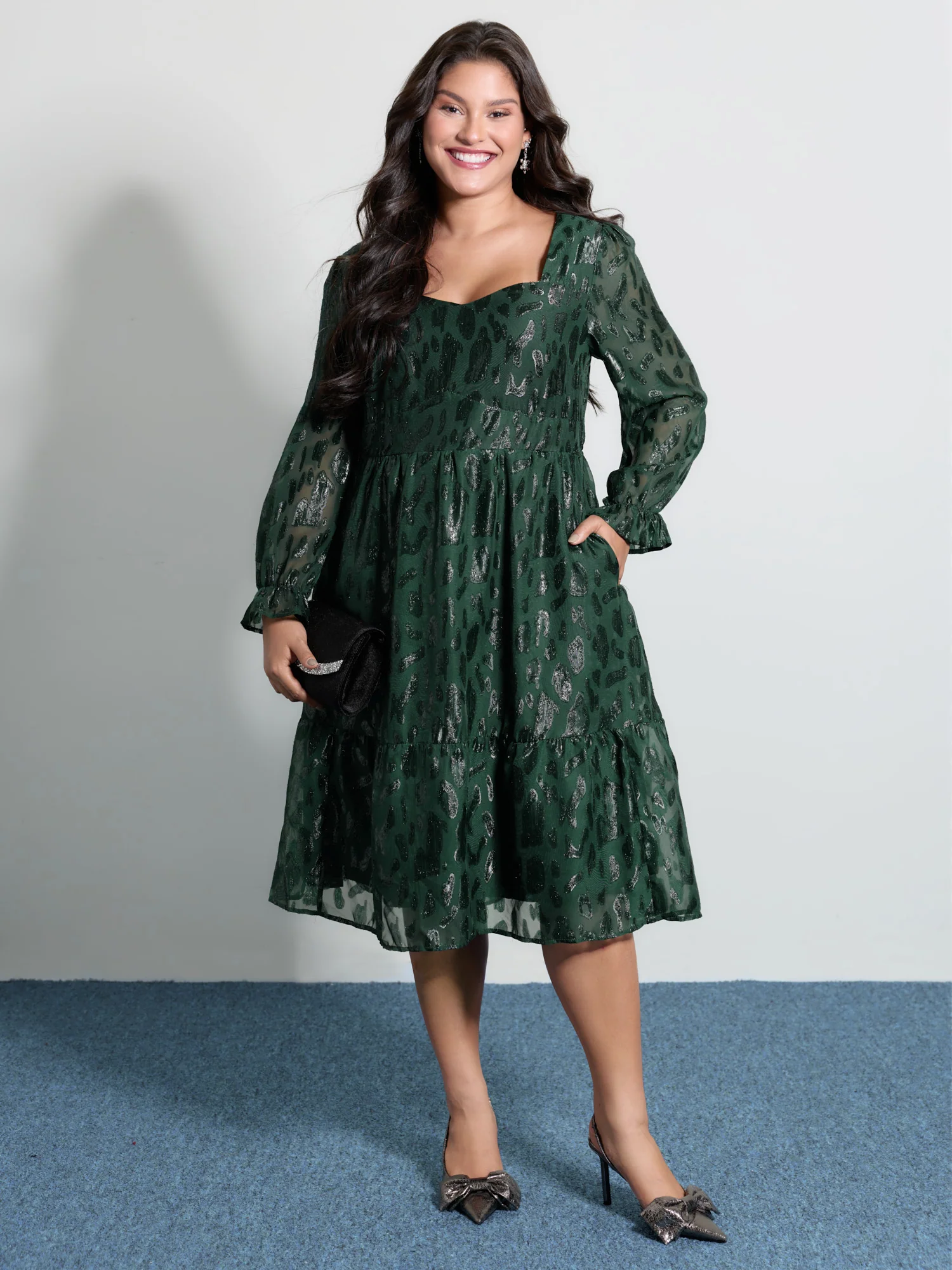 Lurex Pockets Lined Sheer Sleeve Midi Dress
