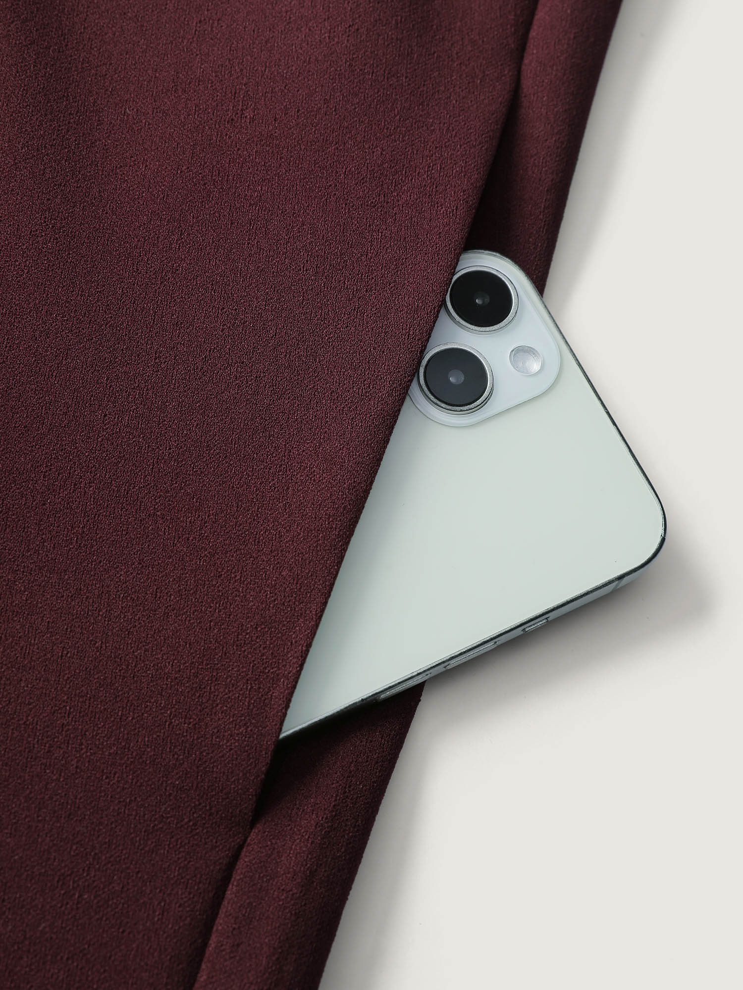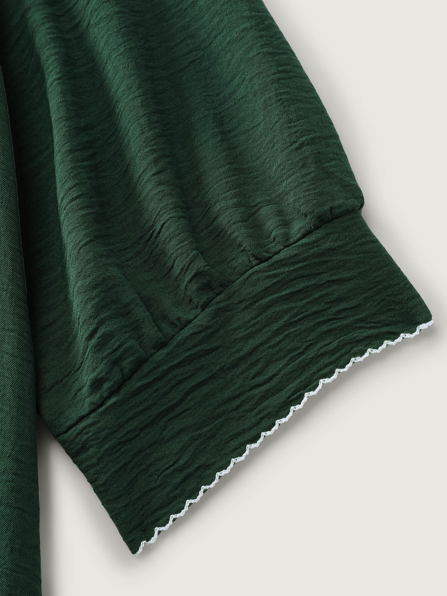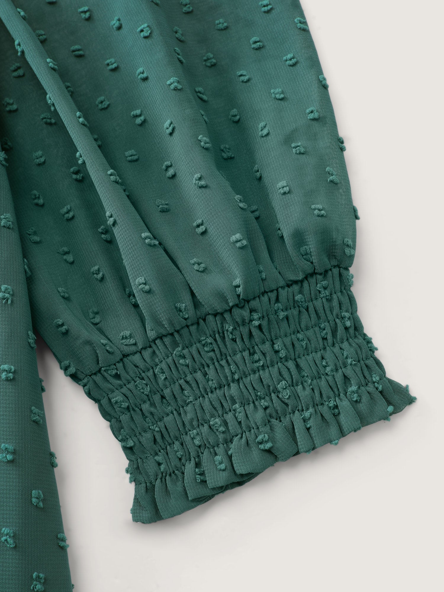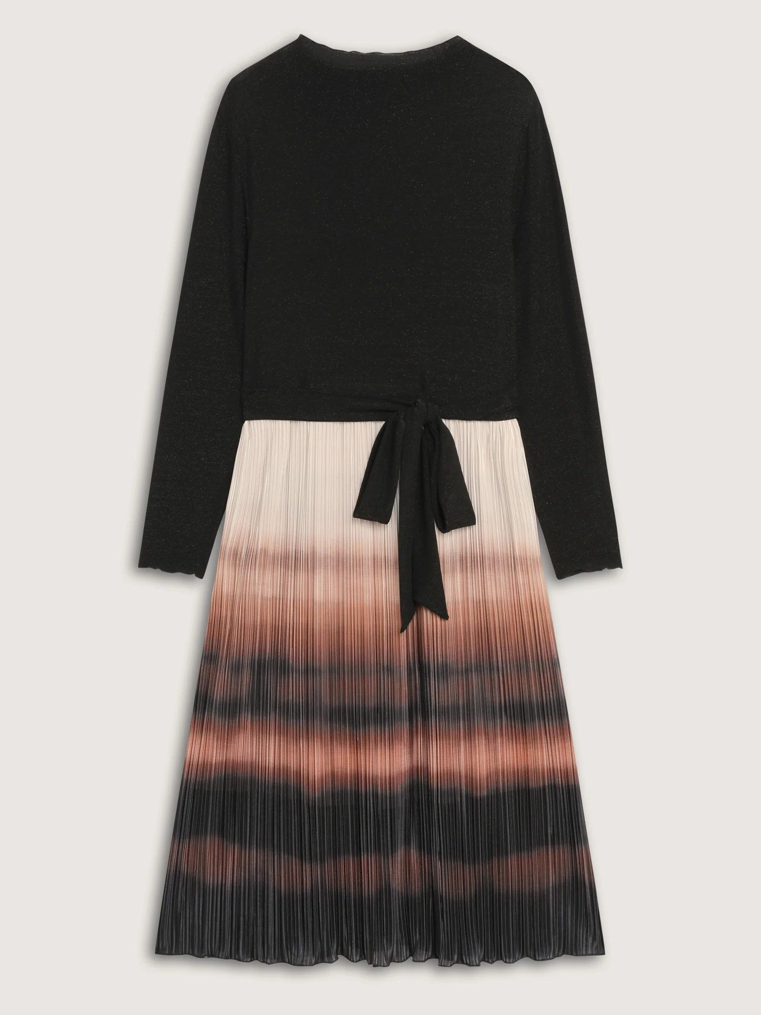 Lurex Pockets Lined Sheer Sleeve Midi Dress