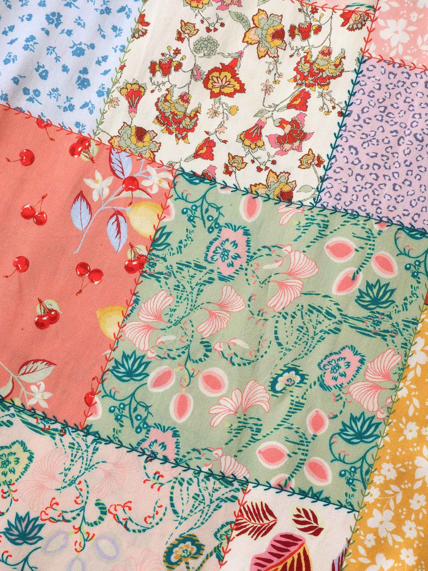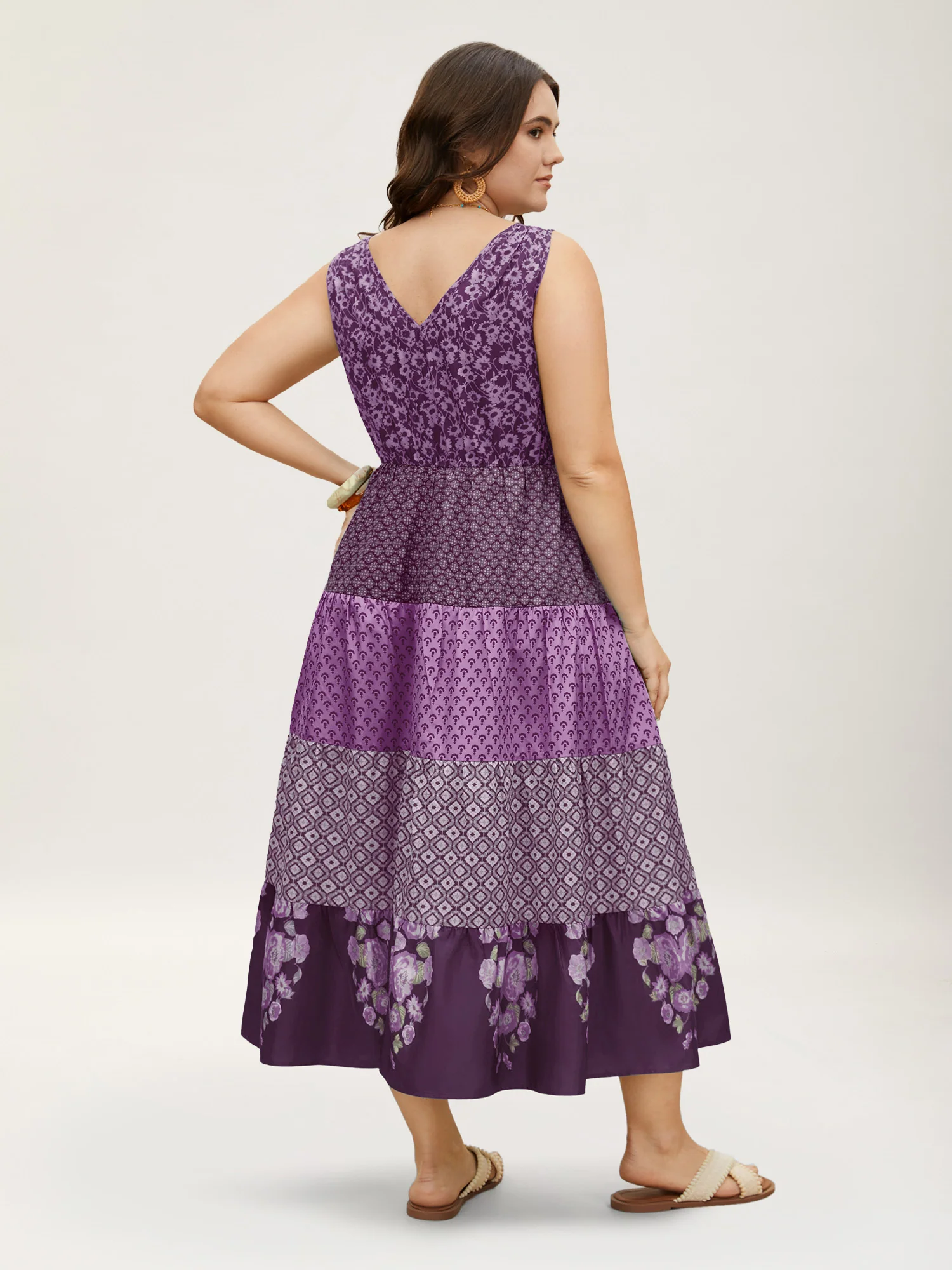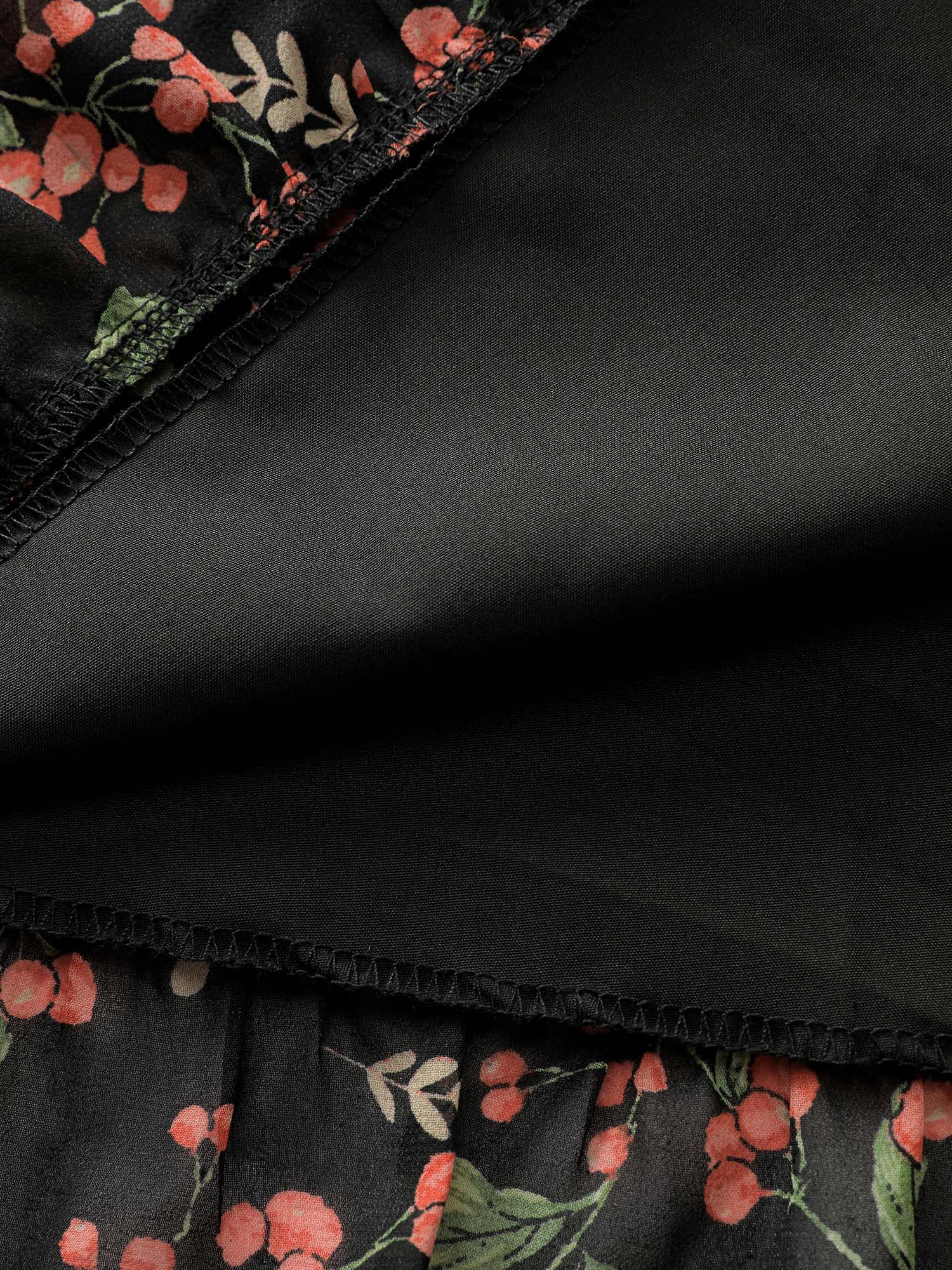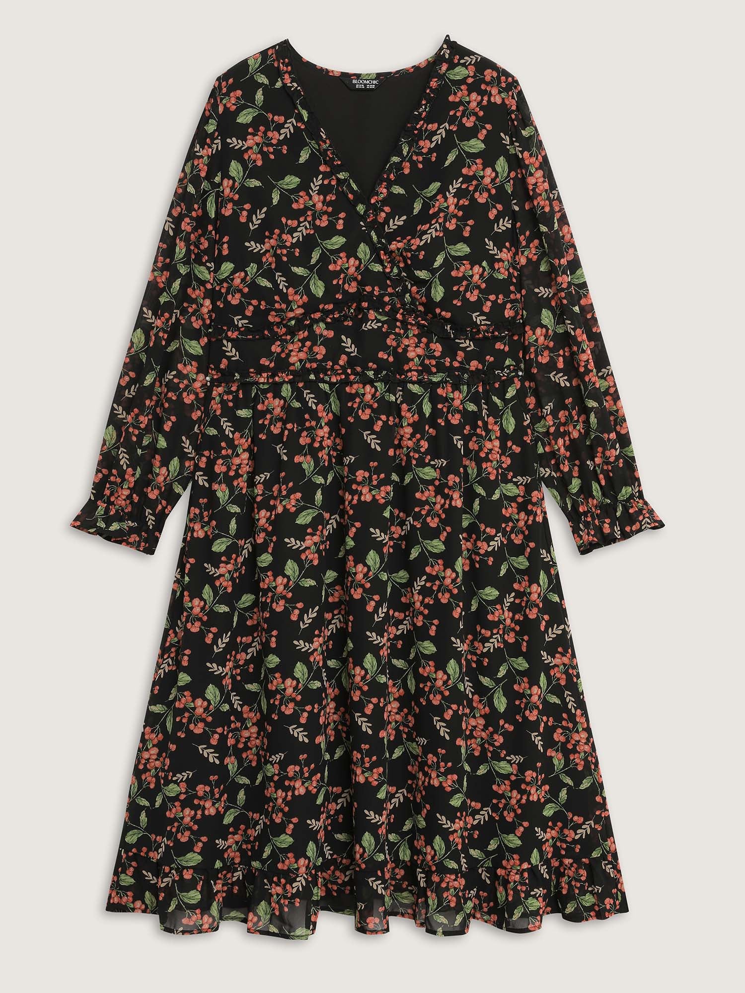 Floral Wrap Patchwork Ruffle Cap Sleeve Dress