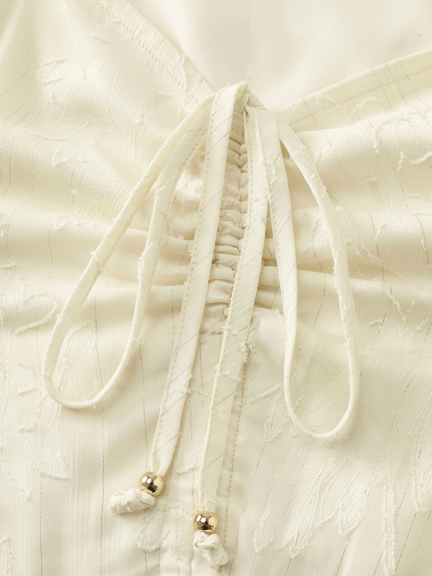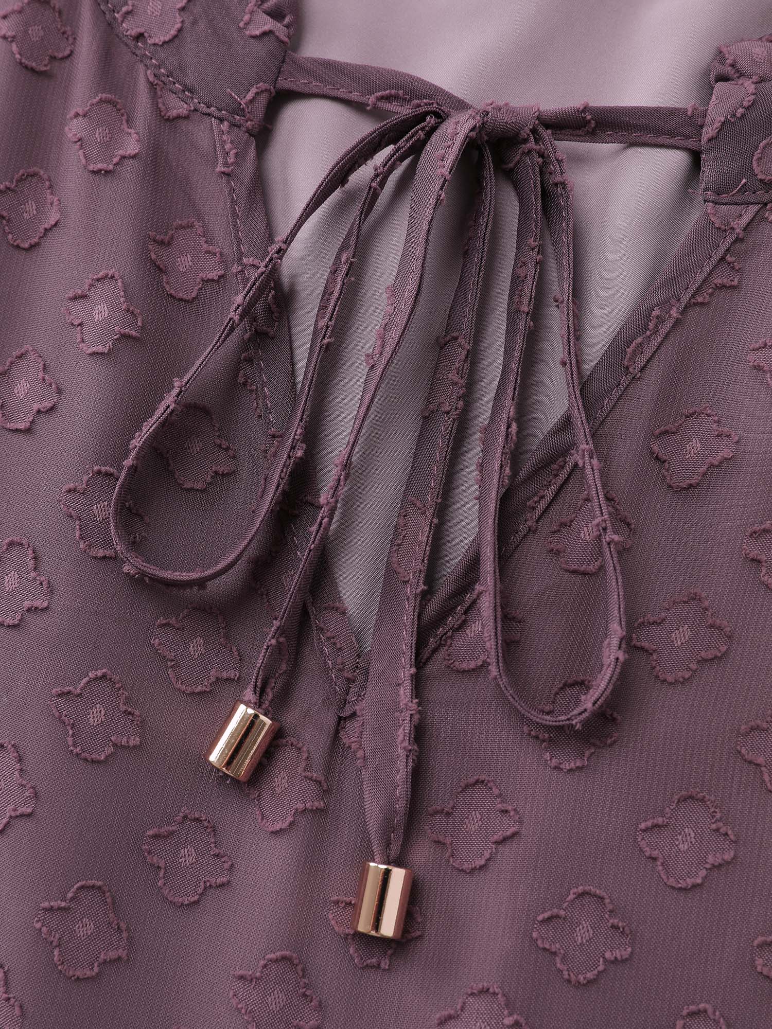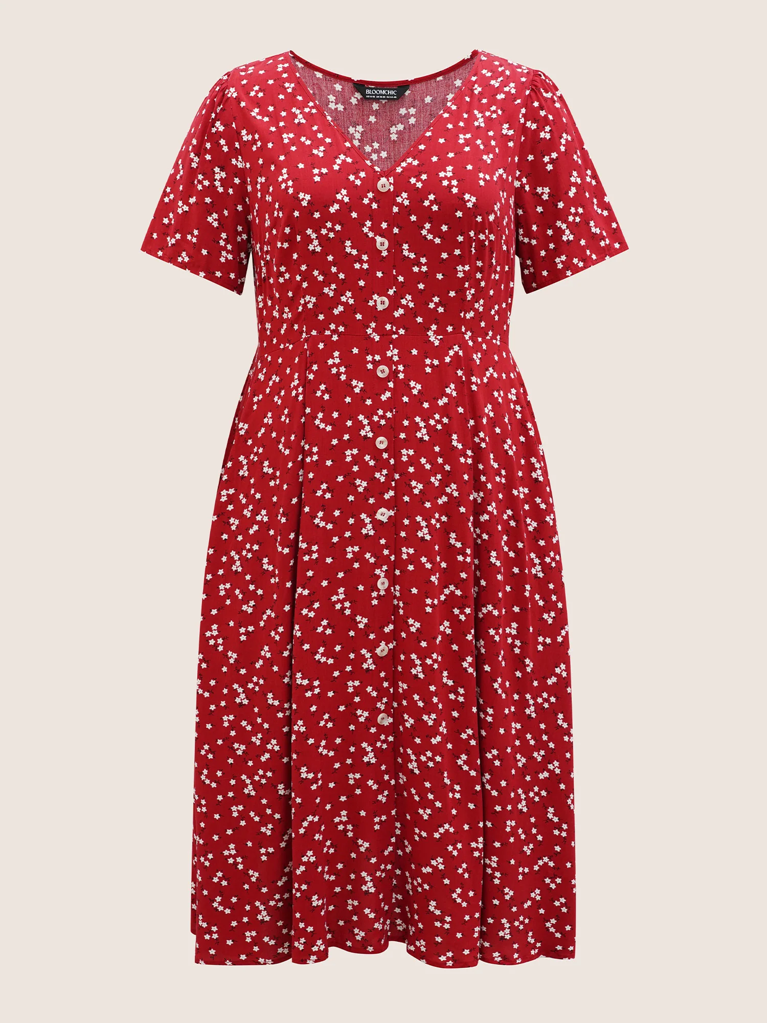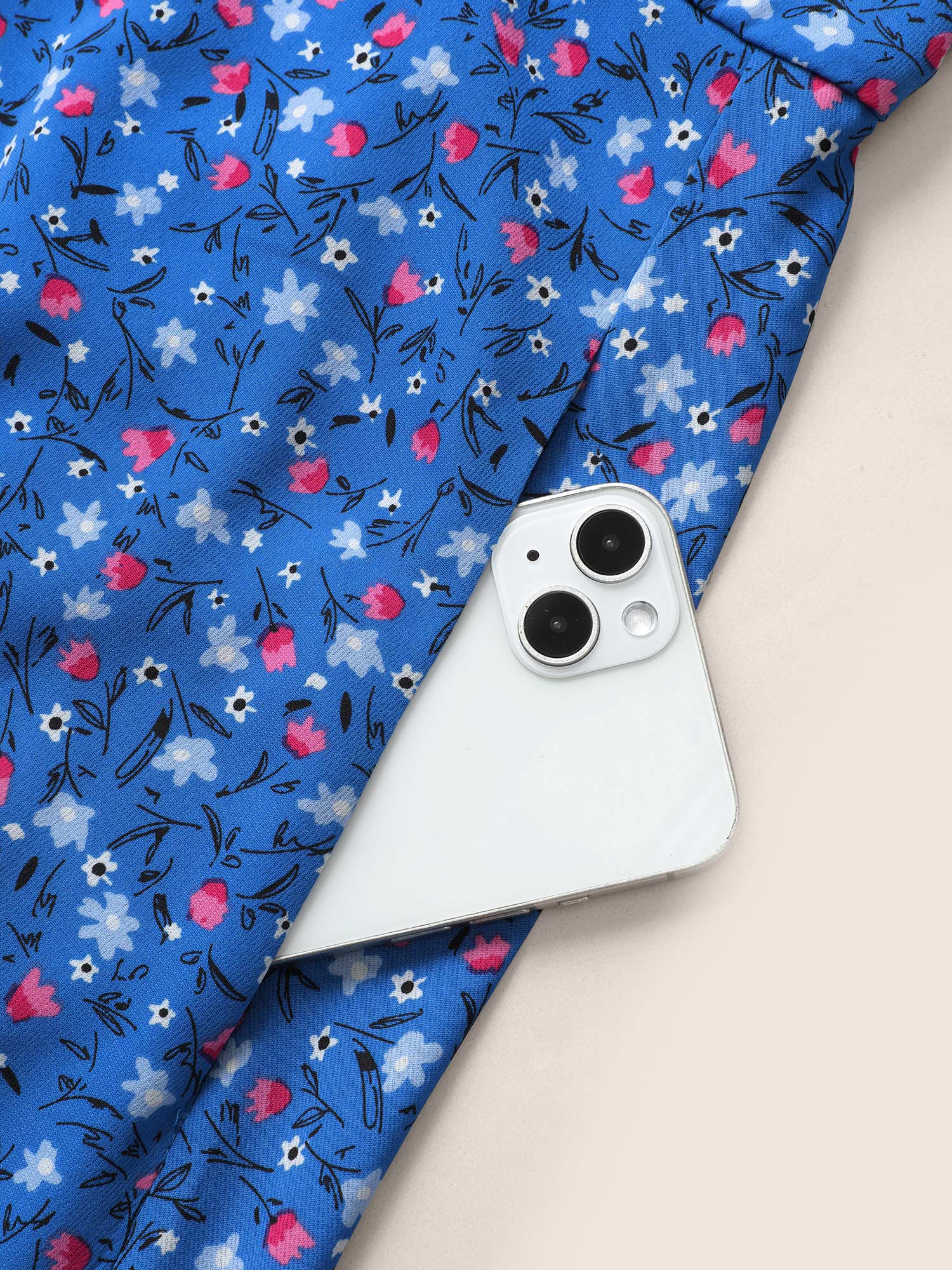 Ditsy Floral Drawstring Shirred Cuffs Dress