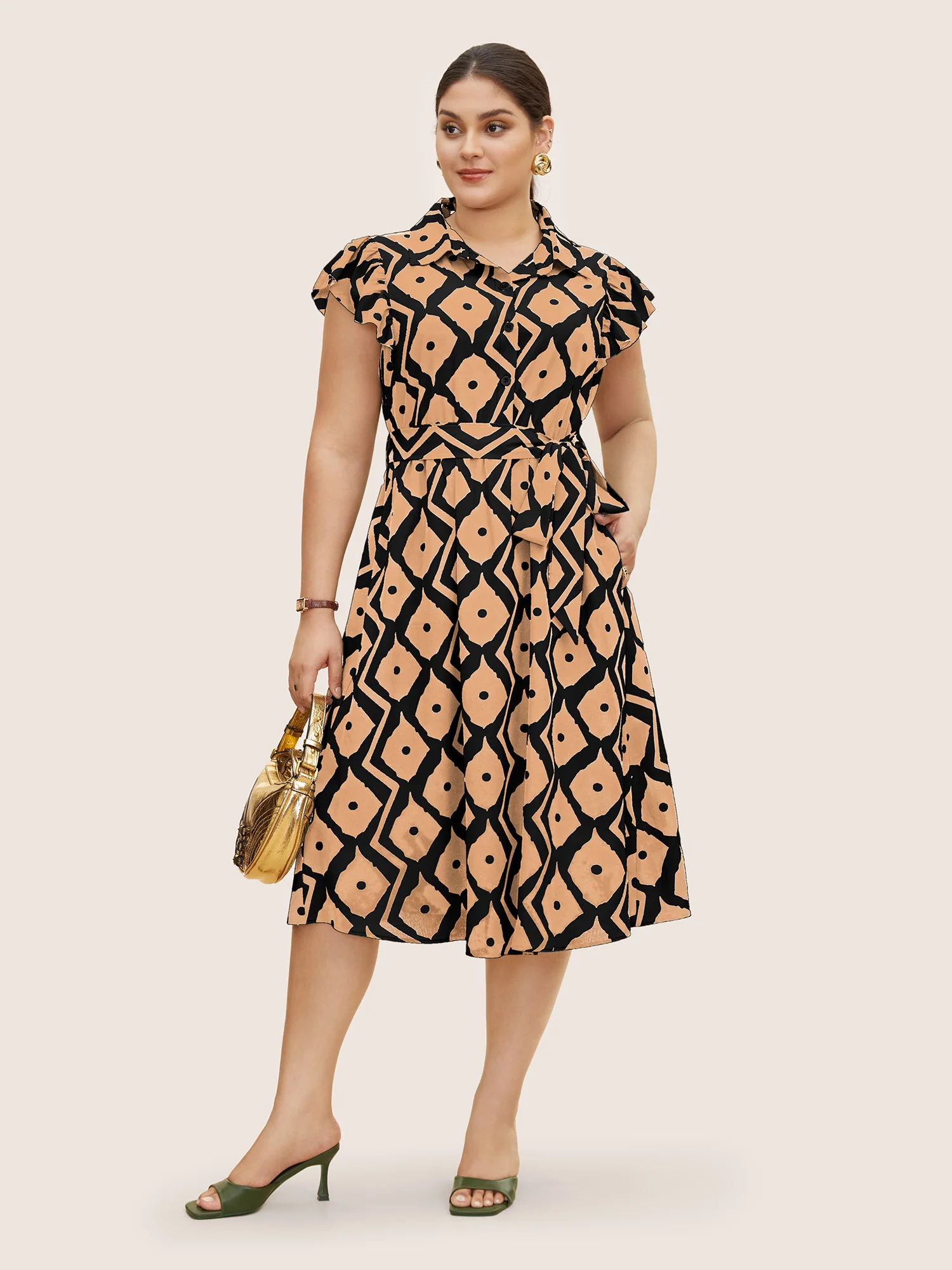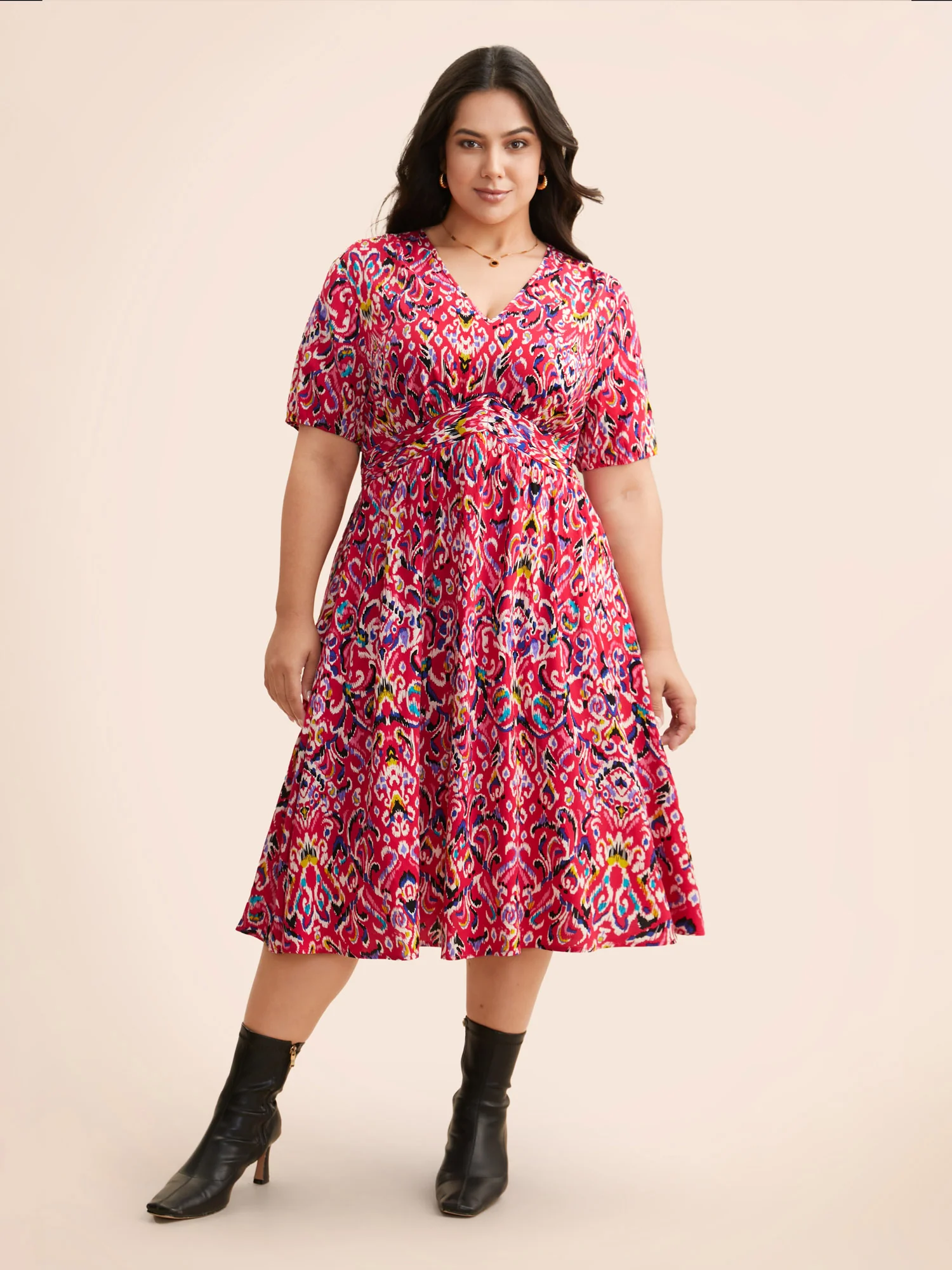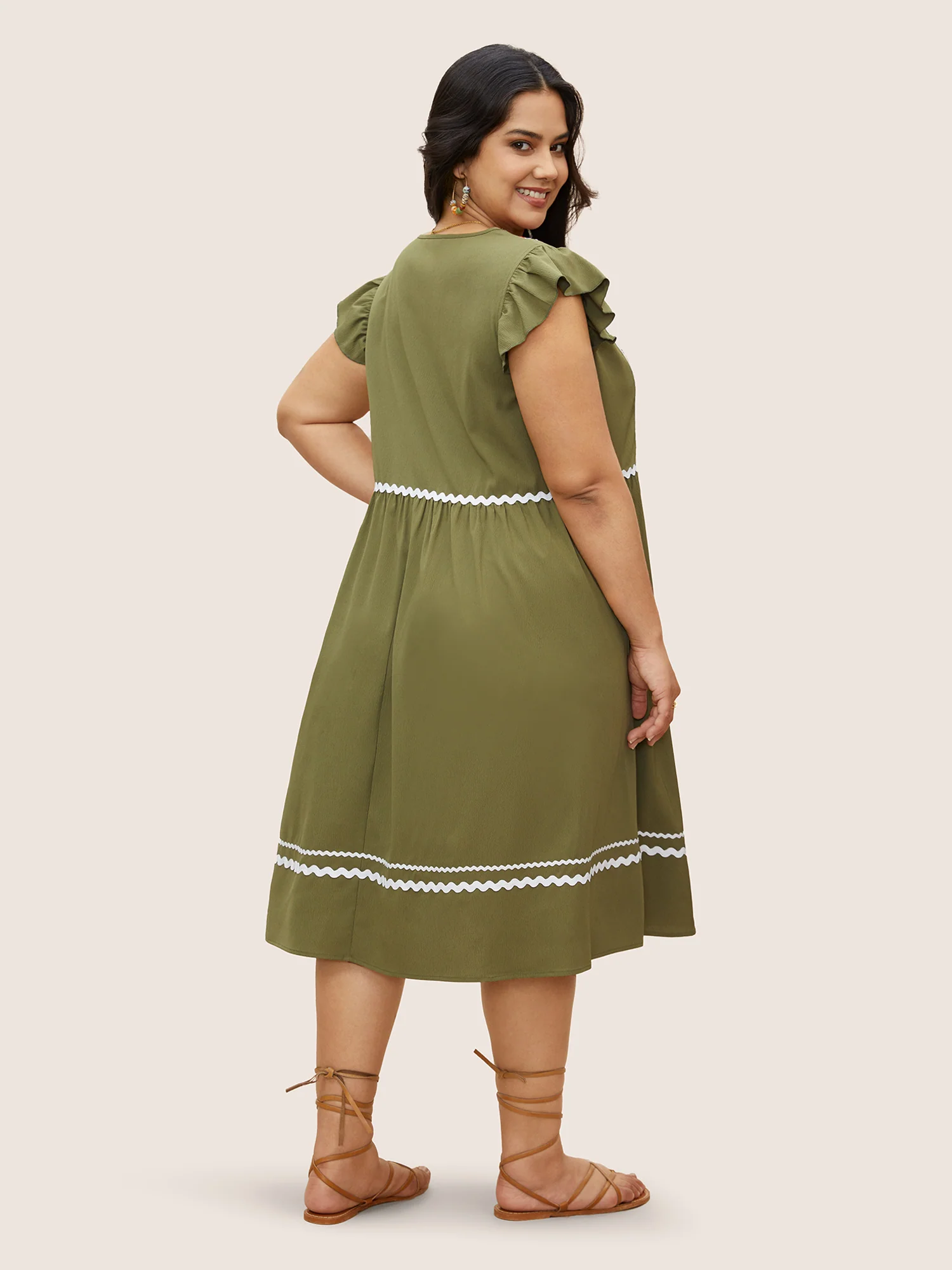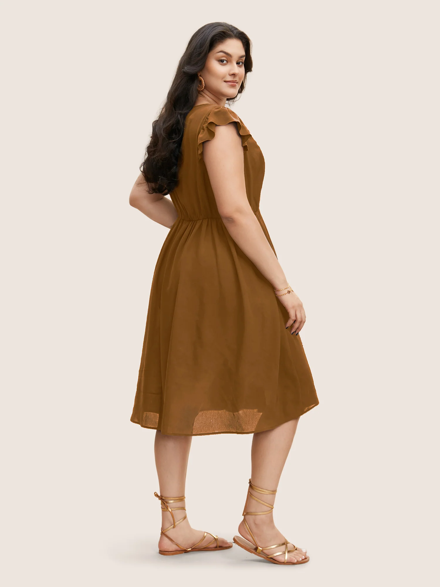 Petal Sleeve Pleated Waist-Defining Midi Dress