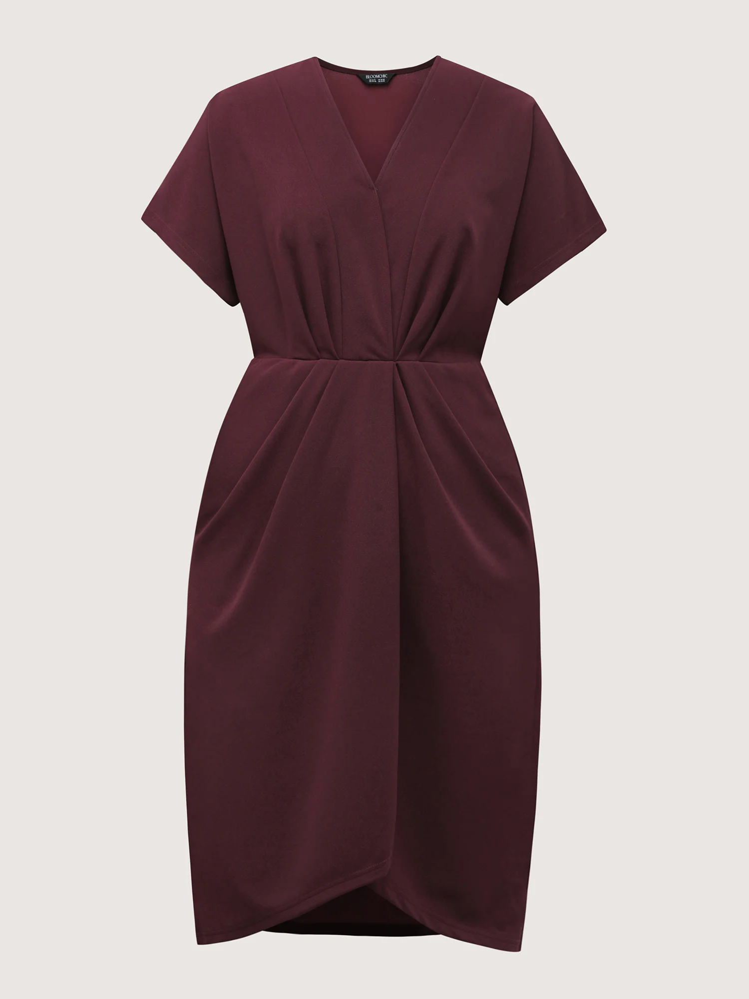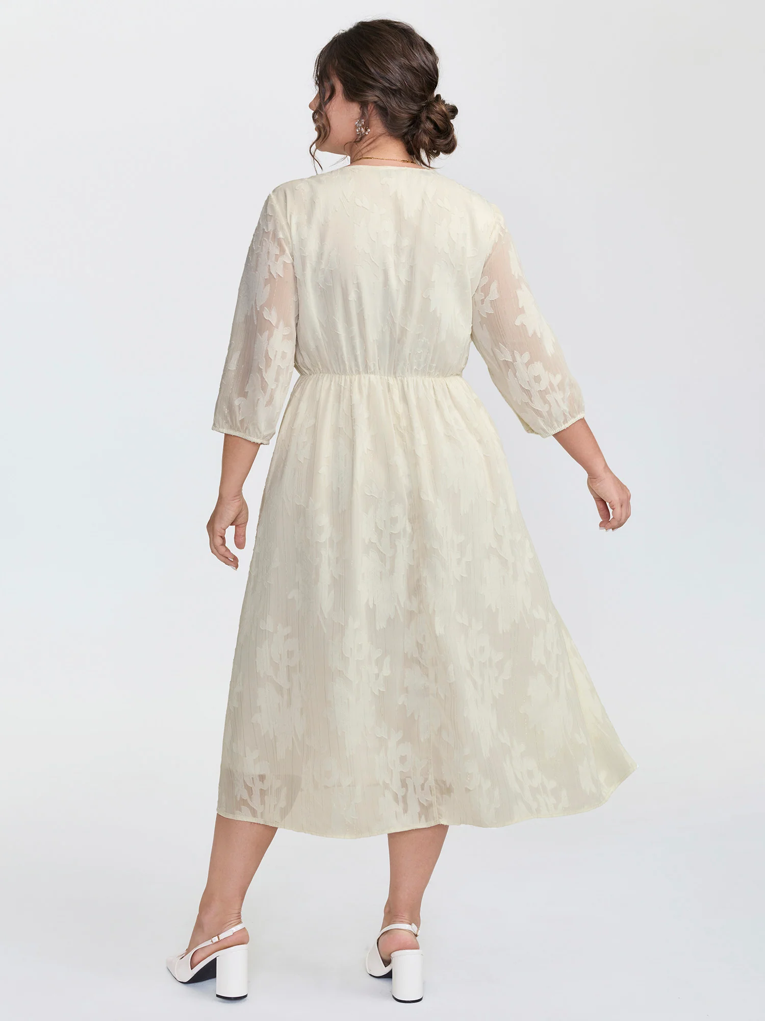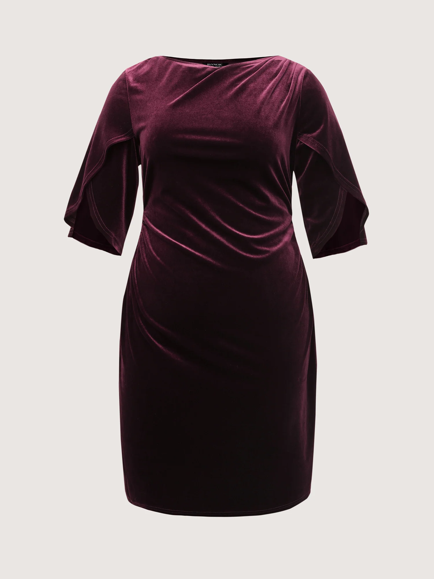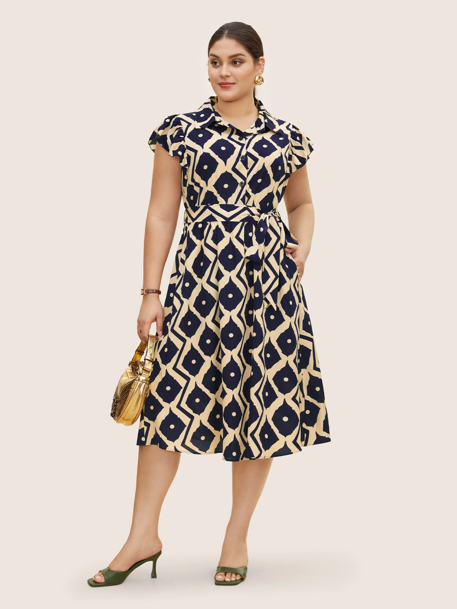 Petal Sleeve Pleated Waist-Defining Midi Dress