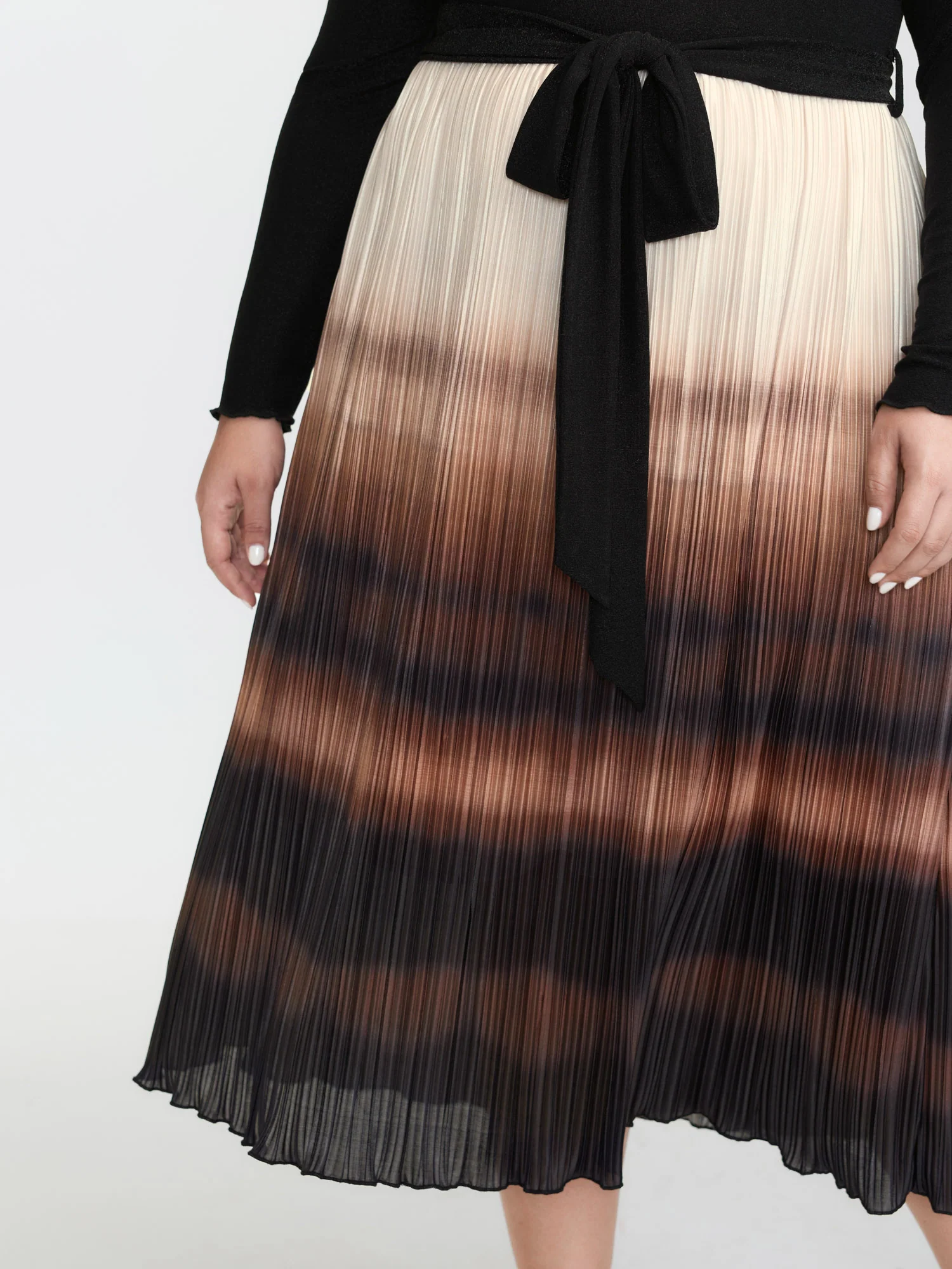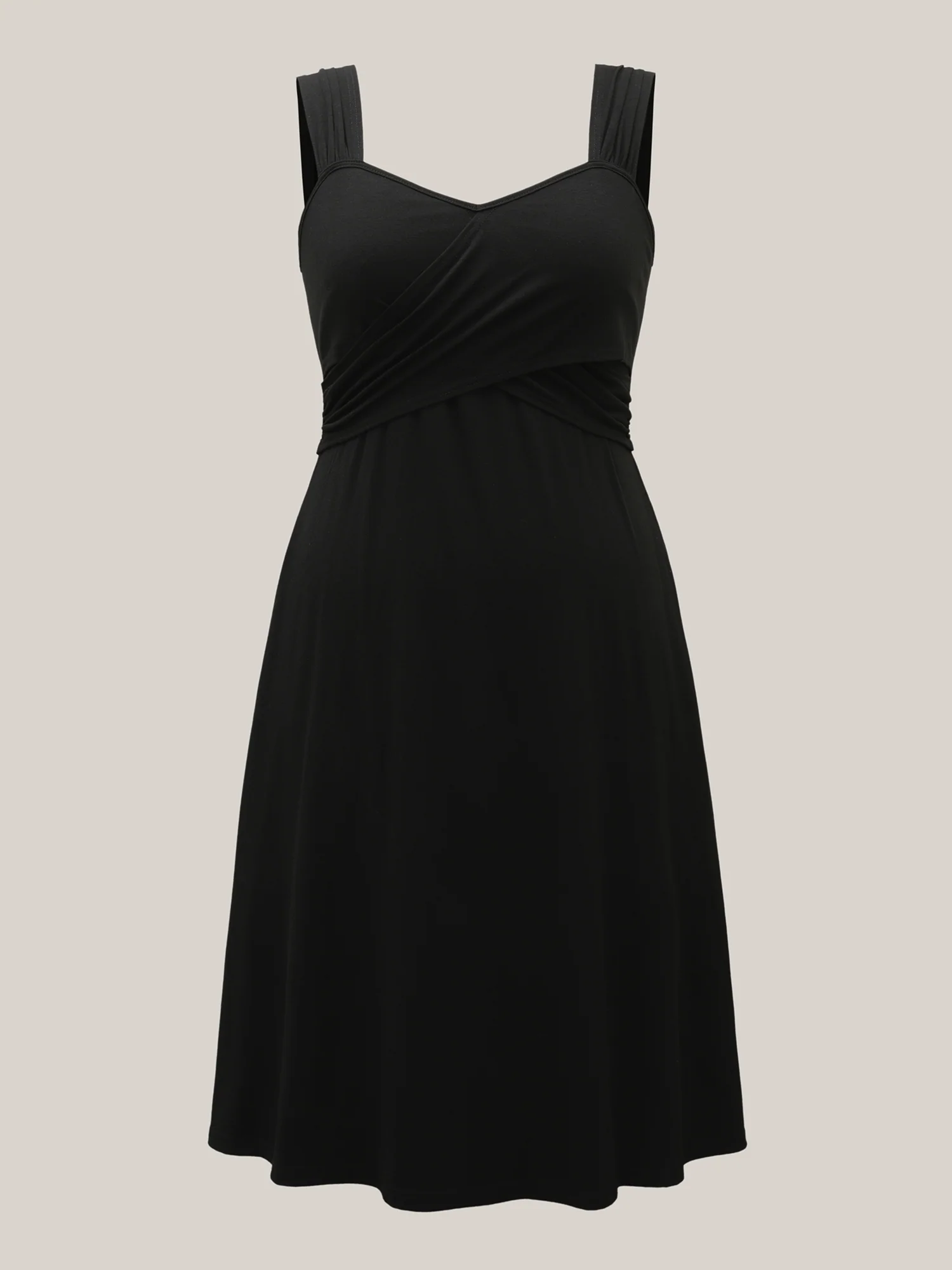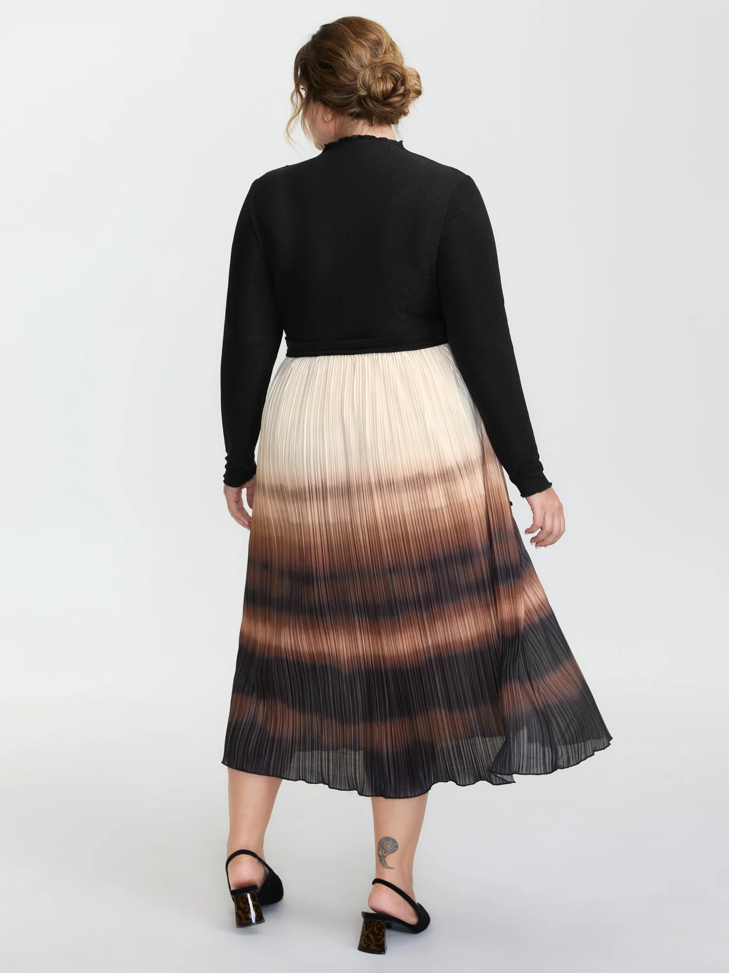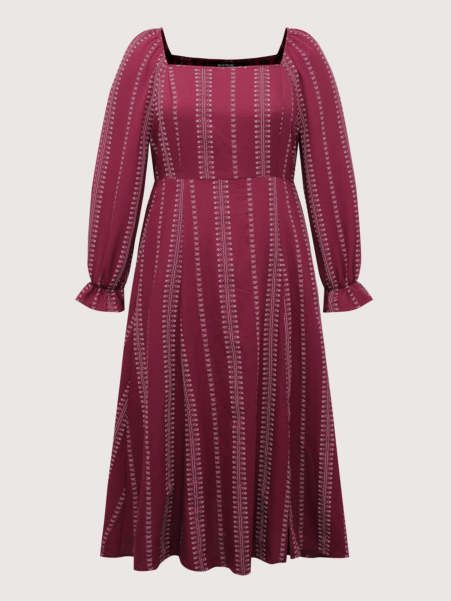 Petal Sleeve Pleated Waist-Defining Midi Dress