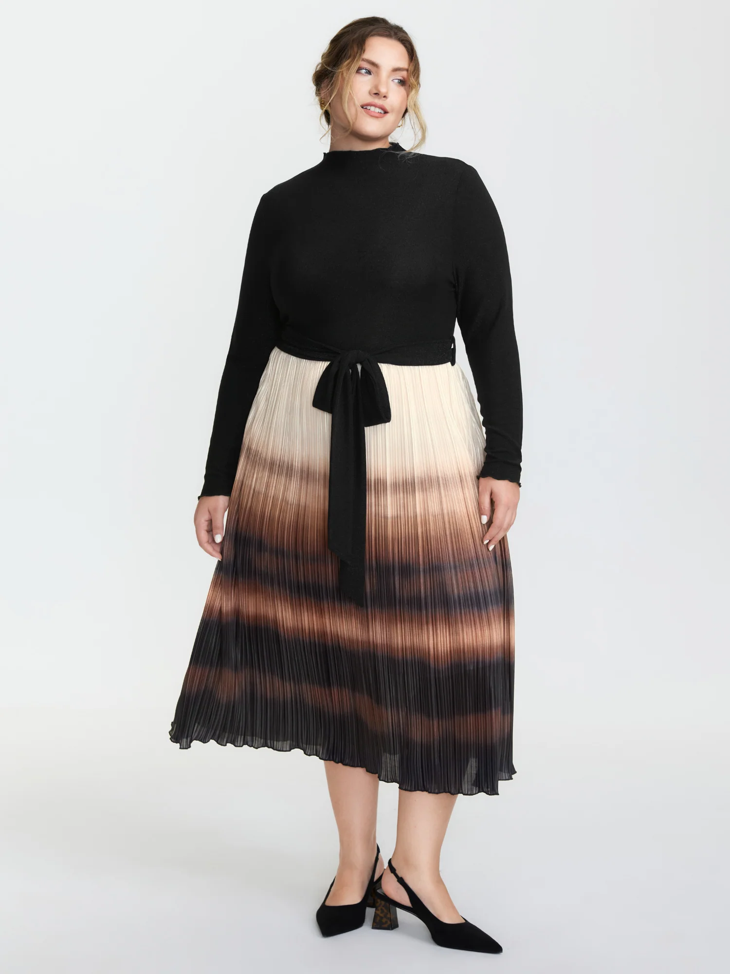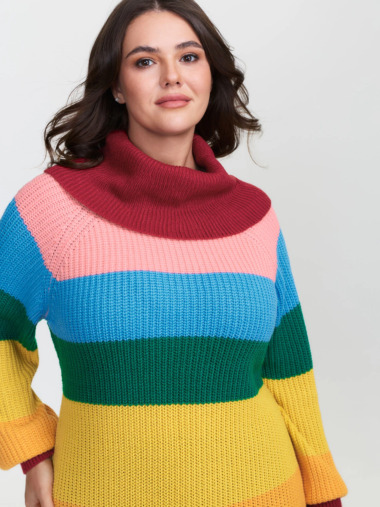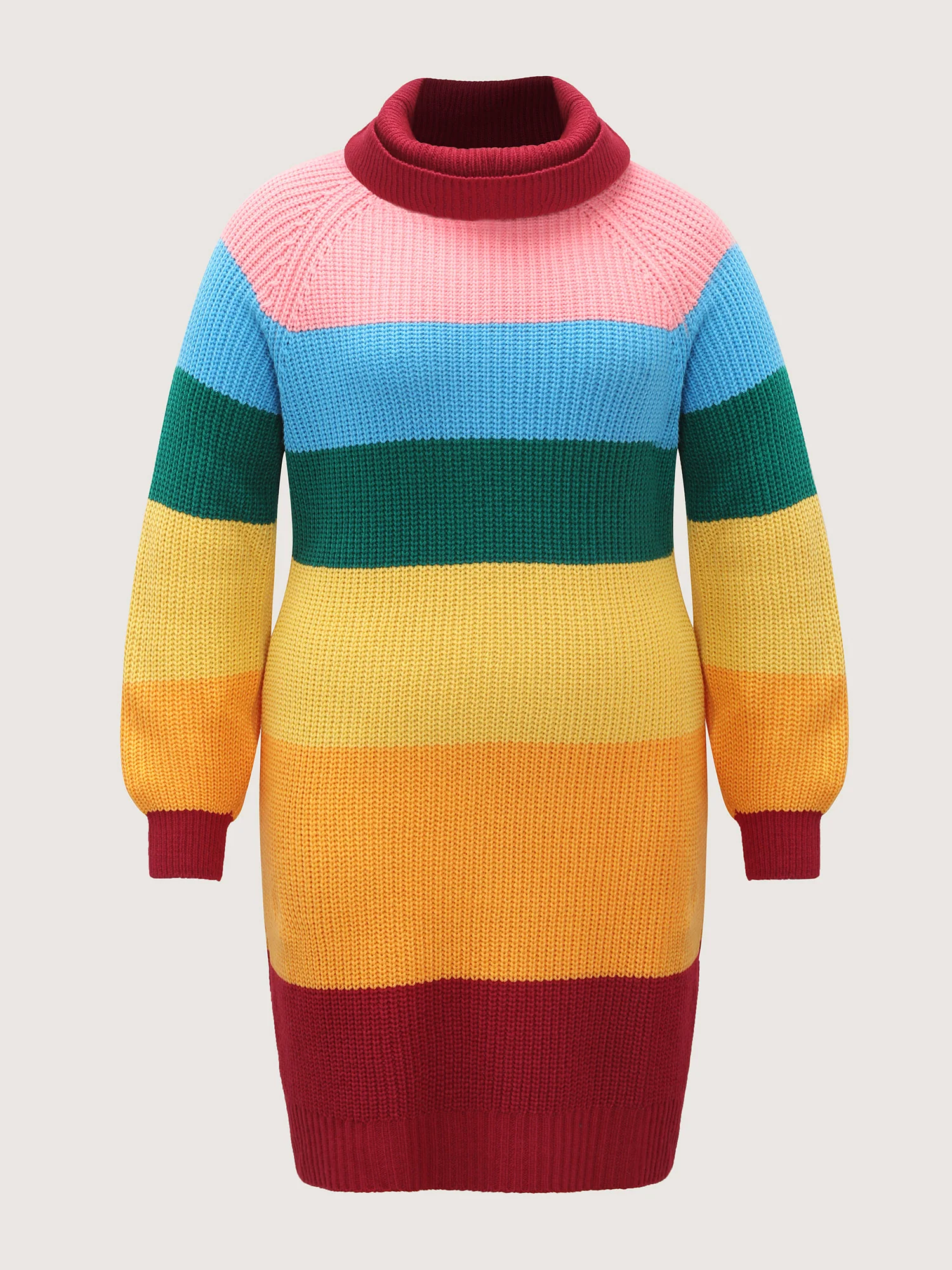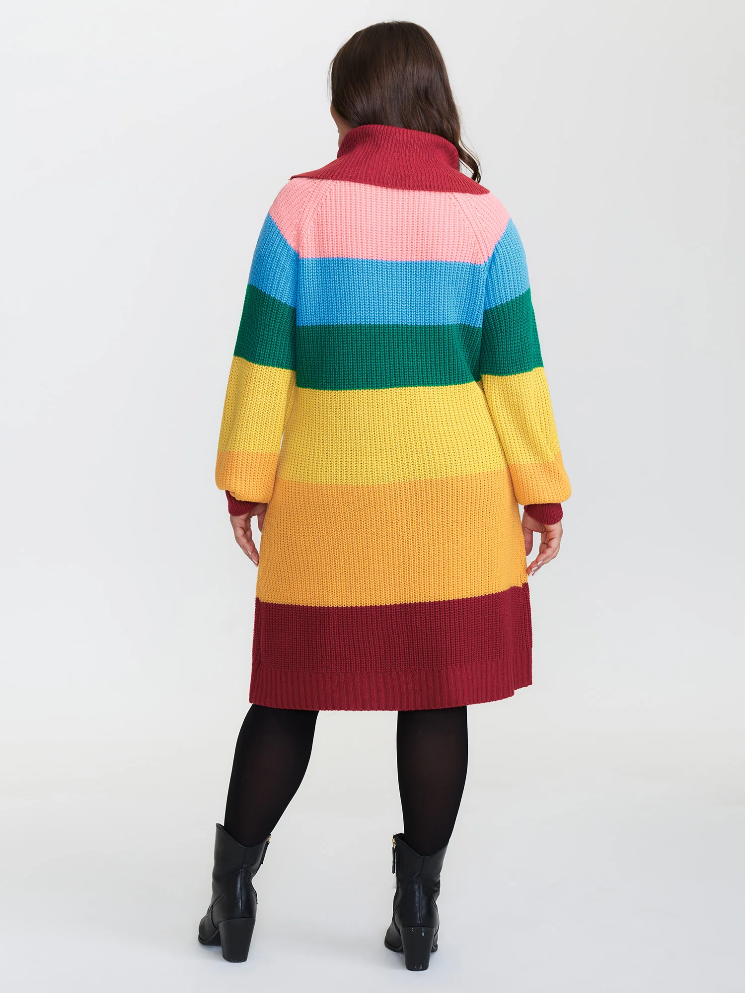 Rainbow Stripe Turtleneck Midi Sweater Dress