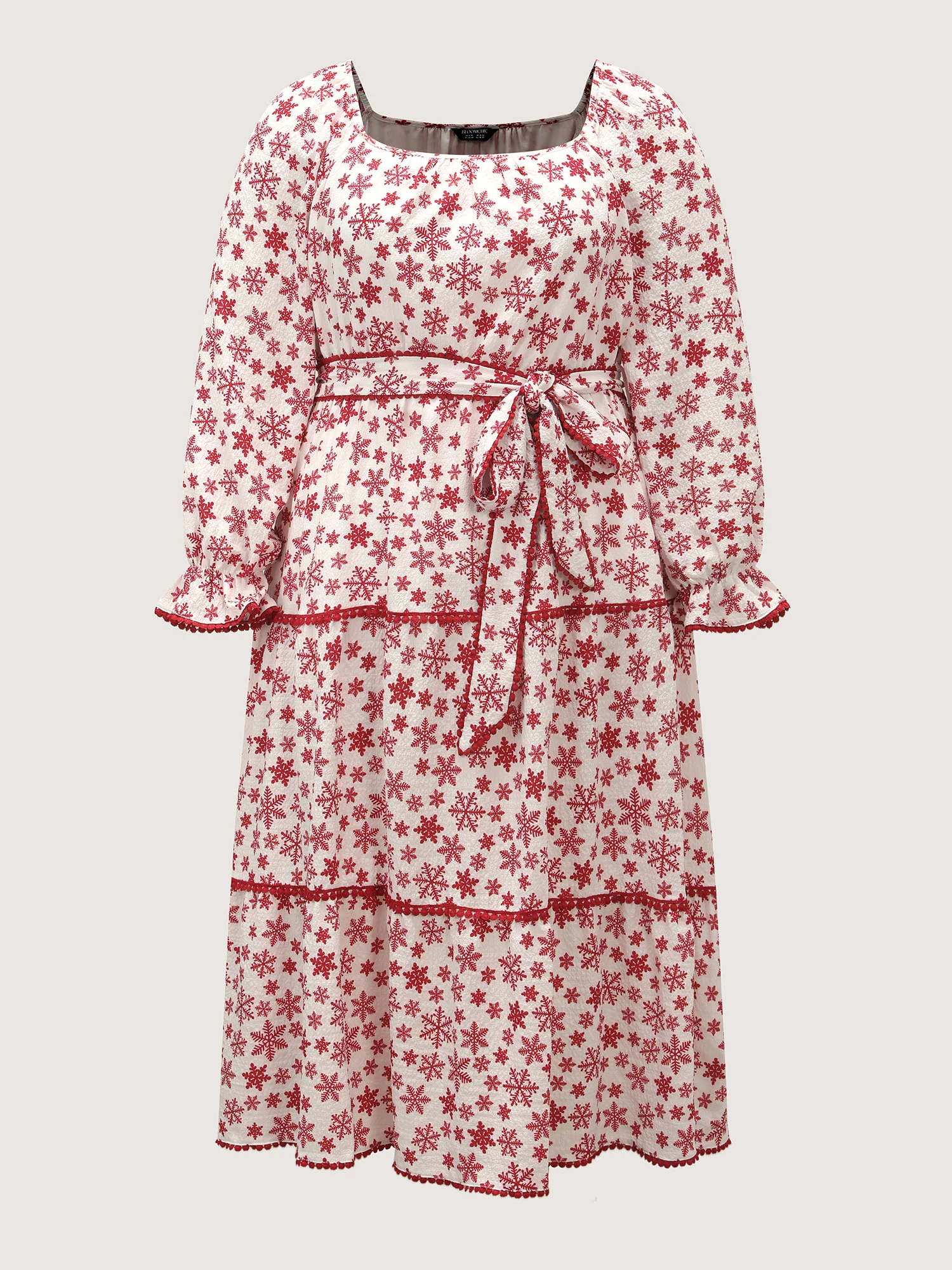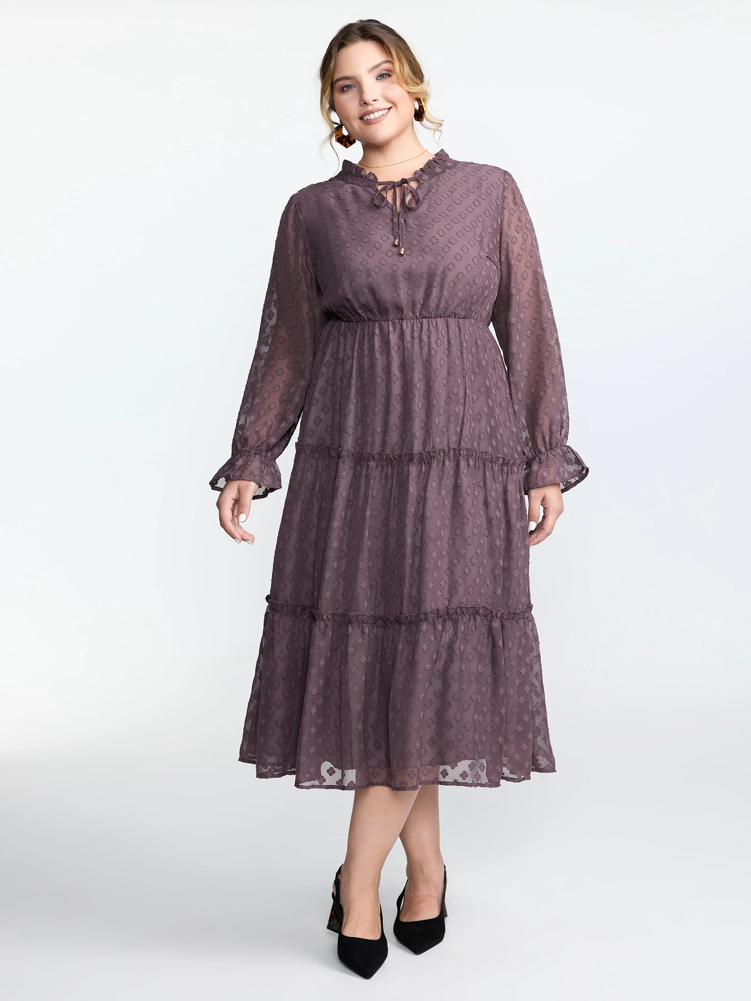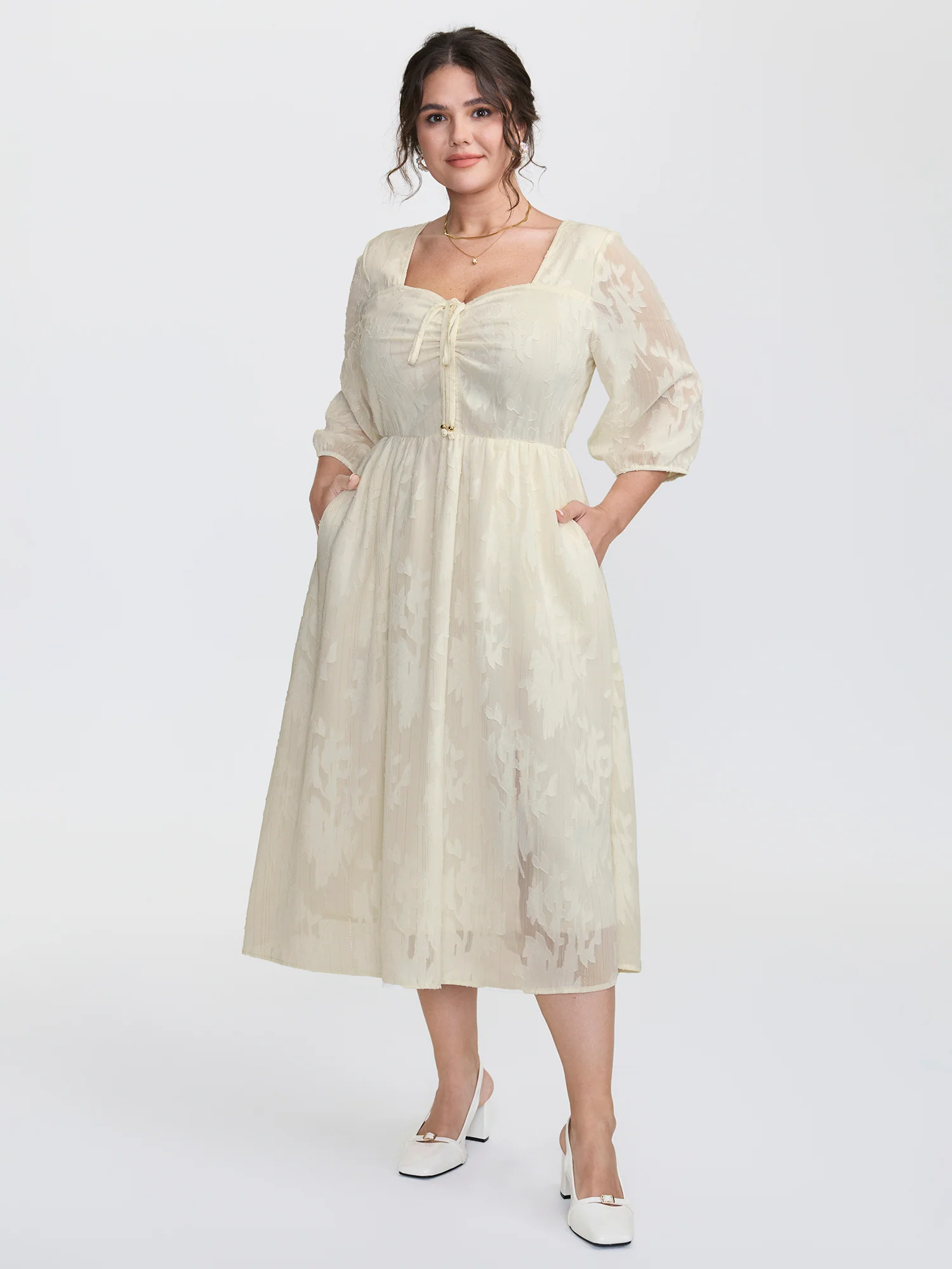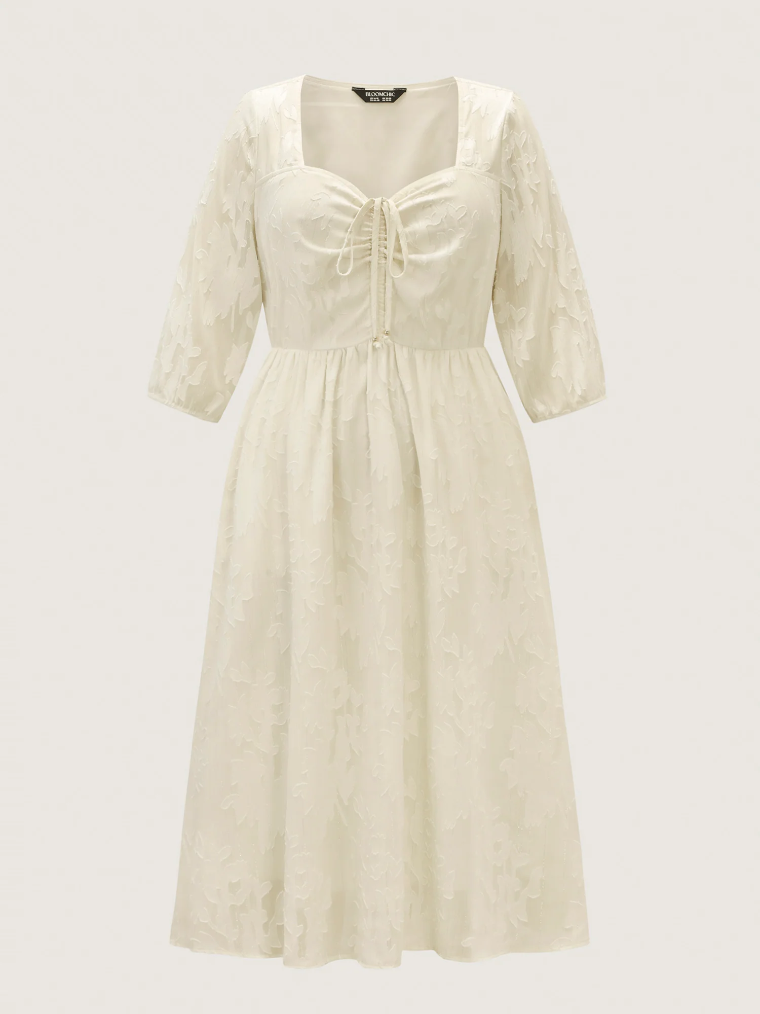 Bowknot Jacquard Stretchy Waist Knee-Length Dress