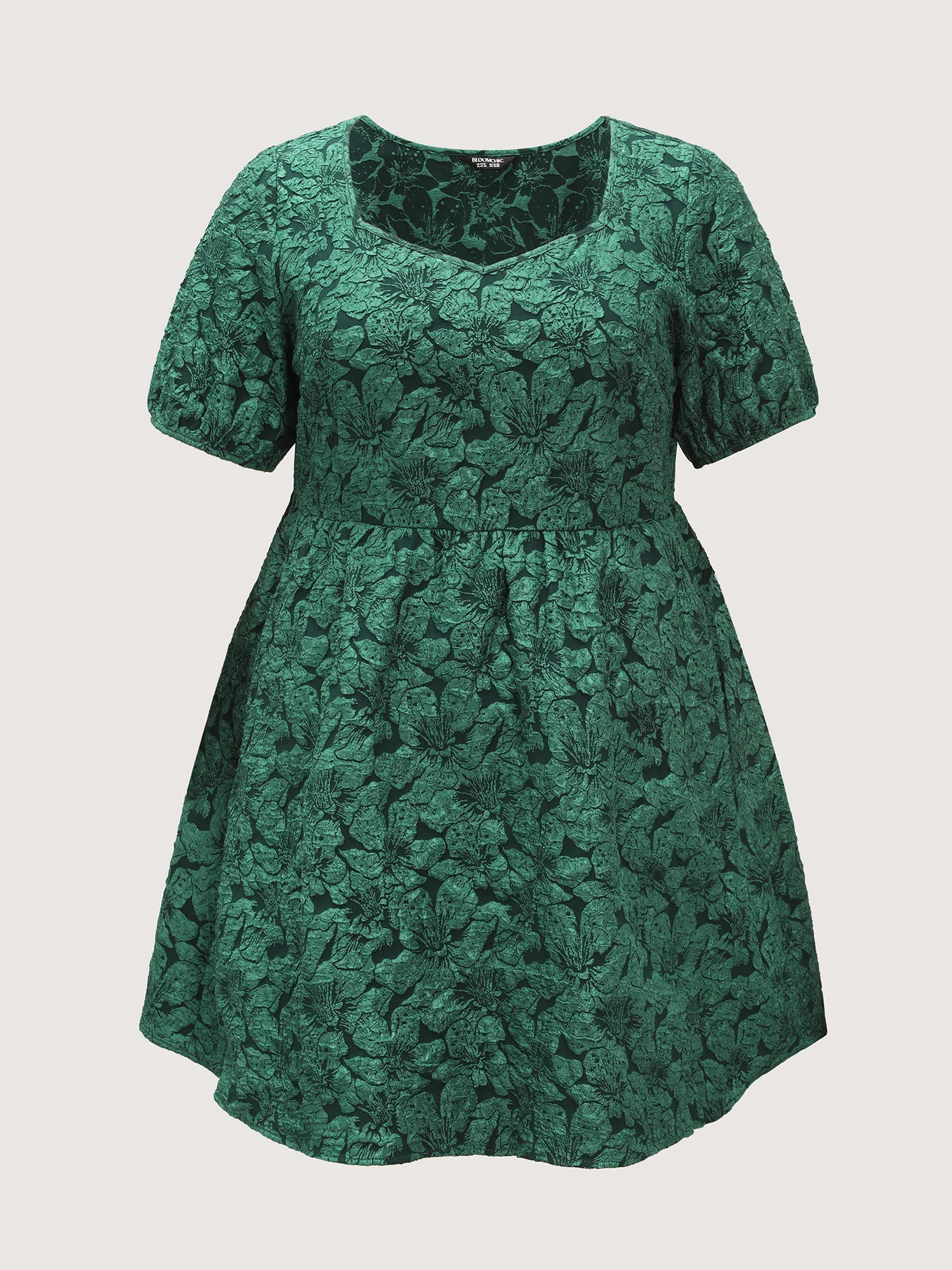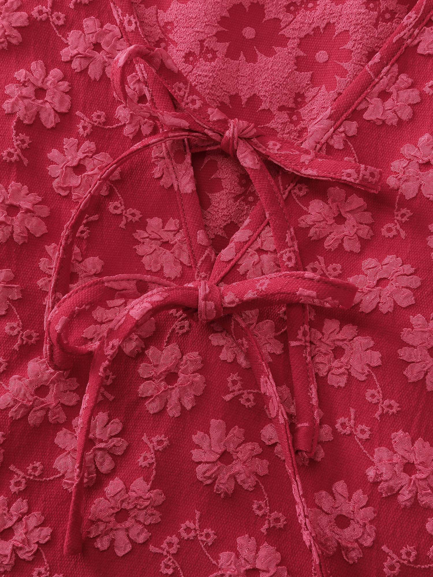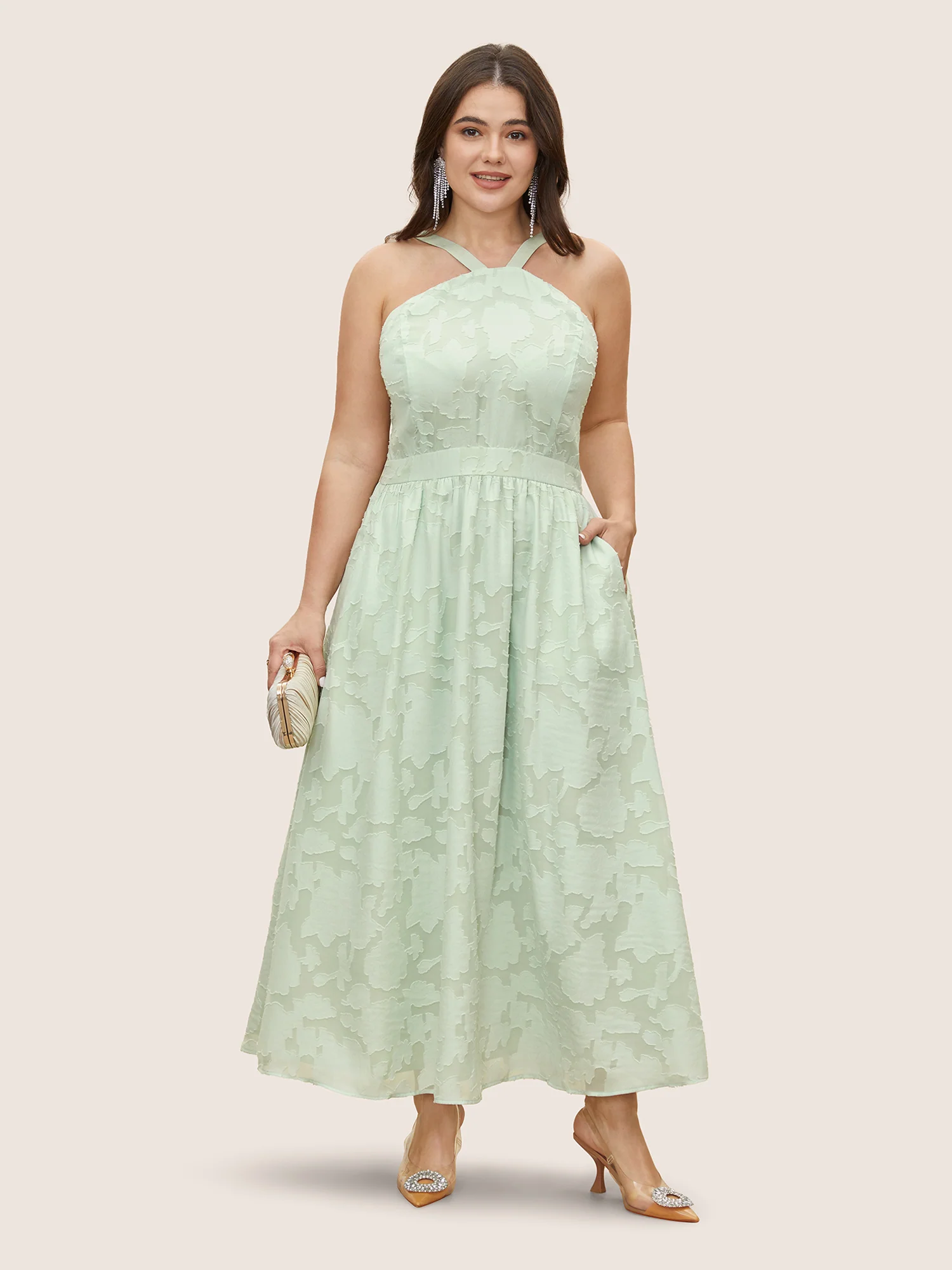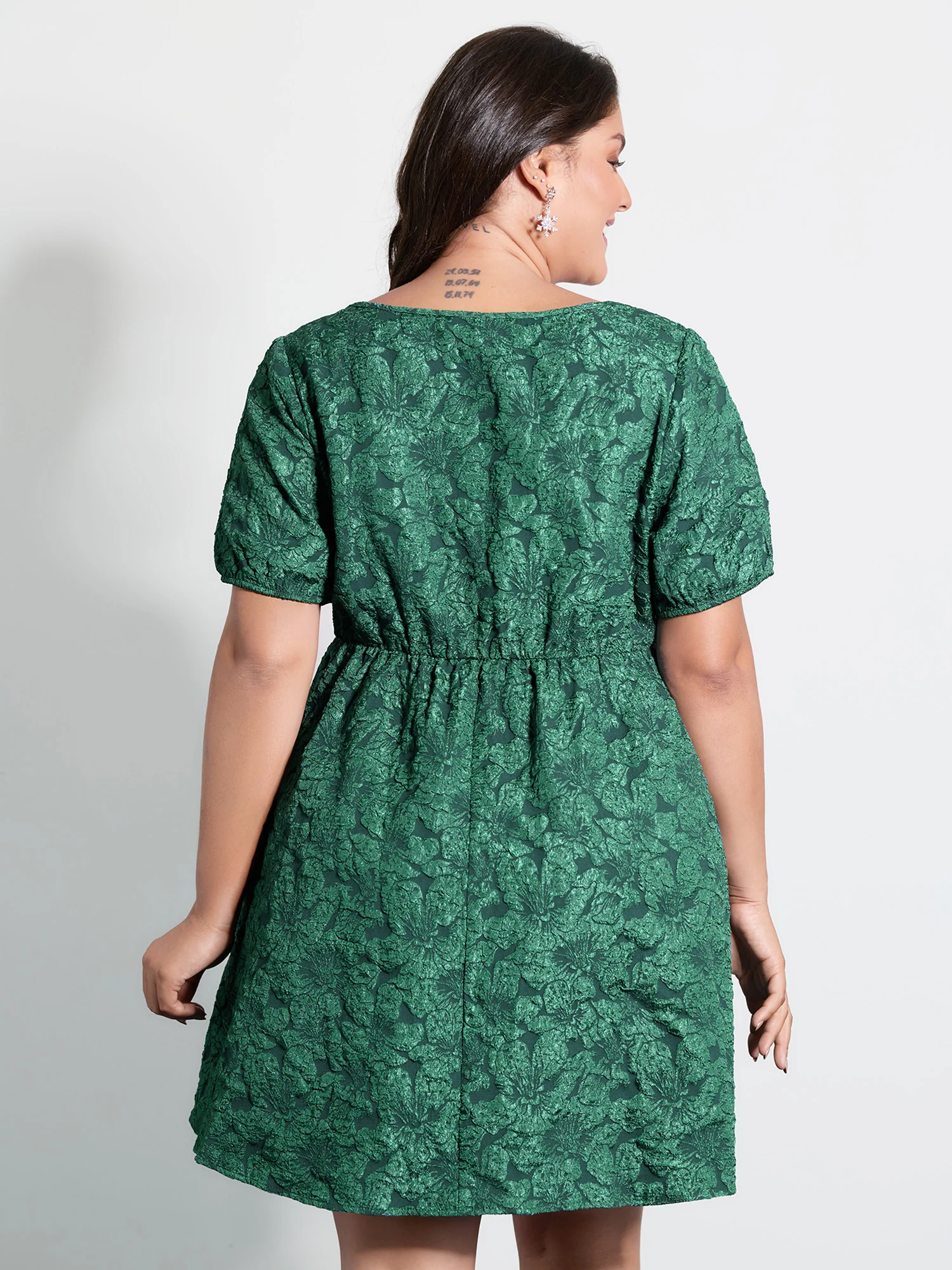 Bowknot Jacquard Stretchy Waist Knee-Length Dress