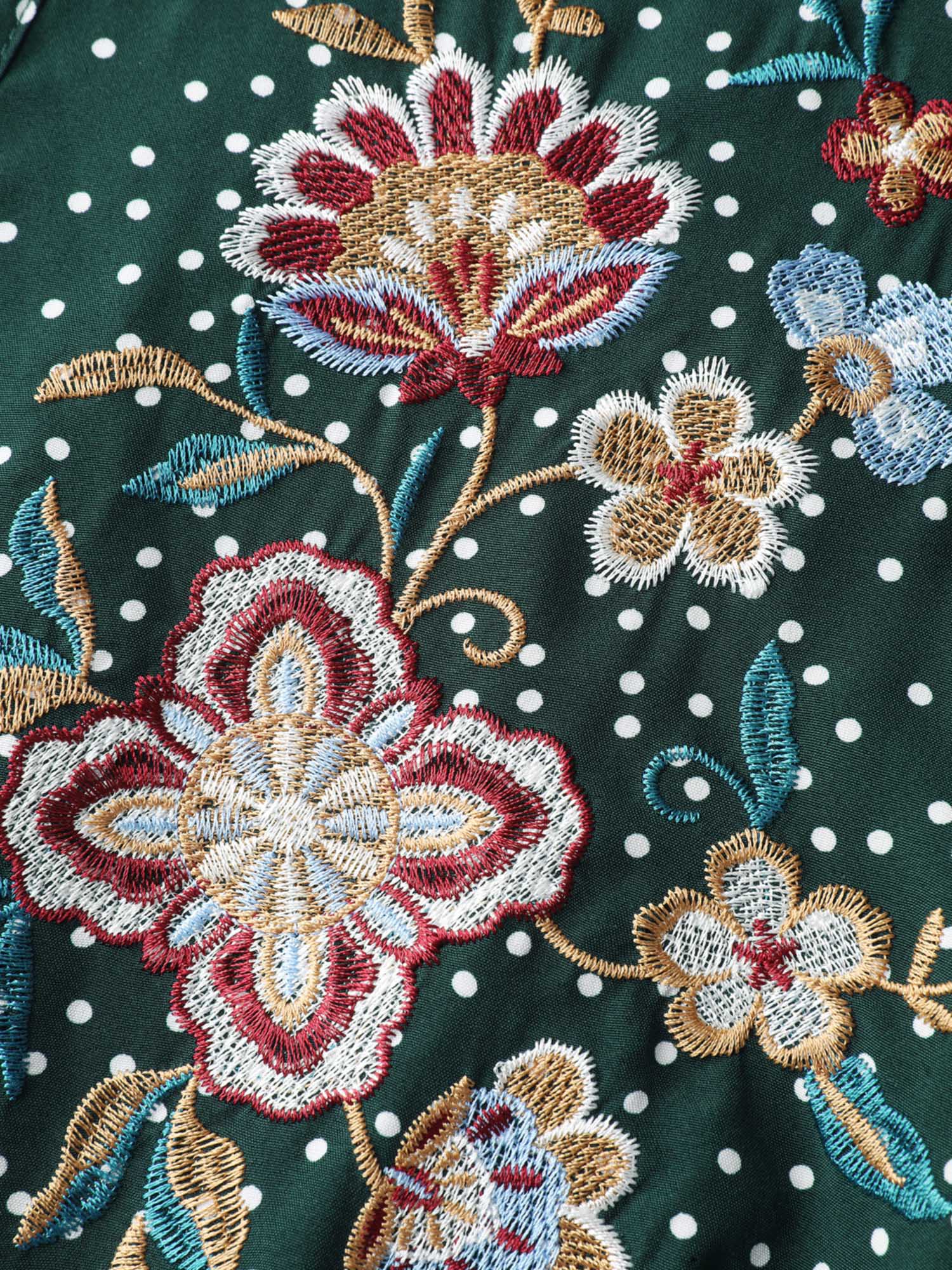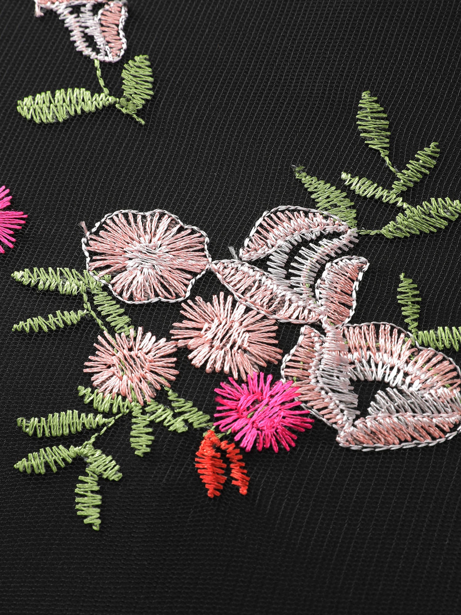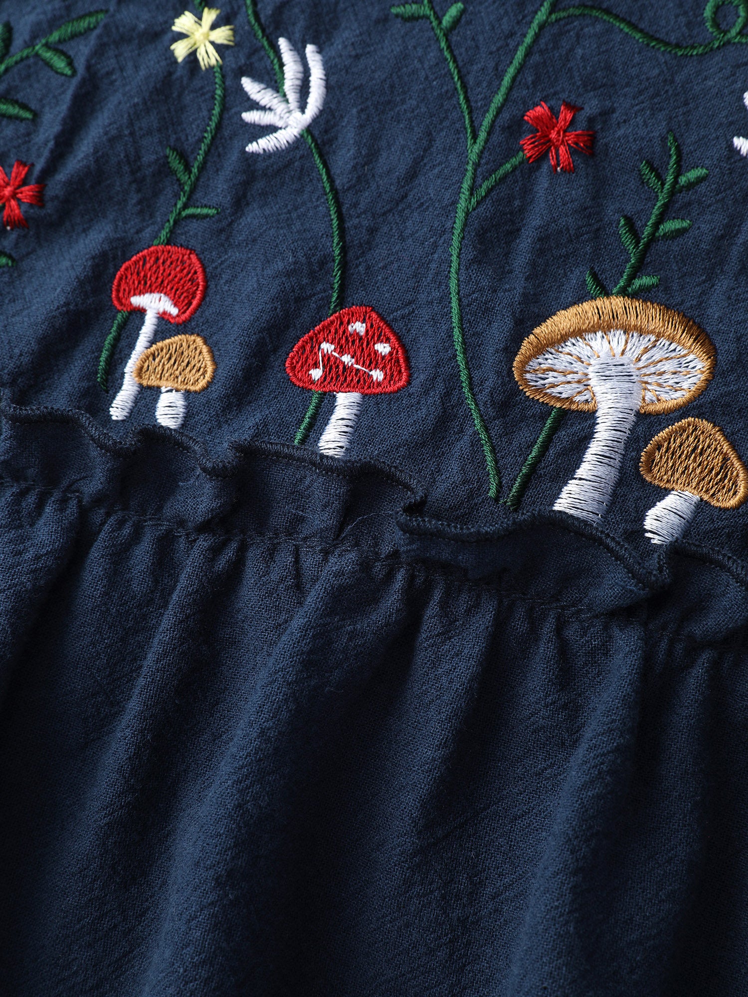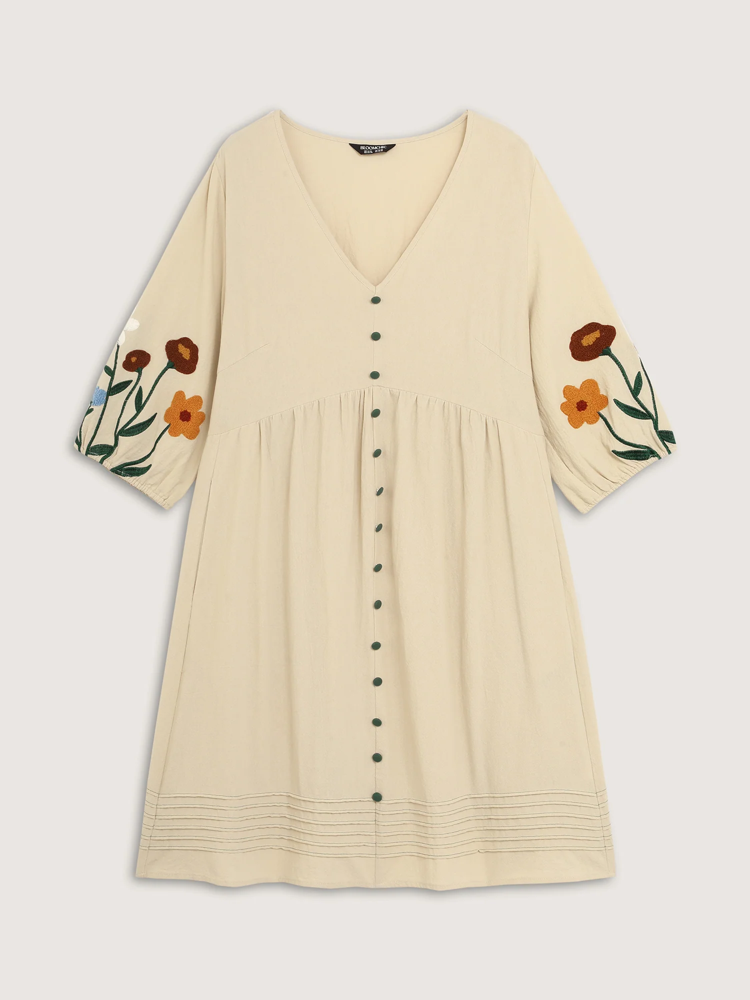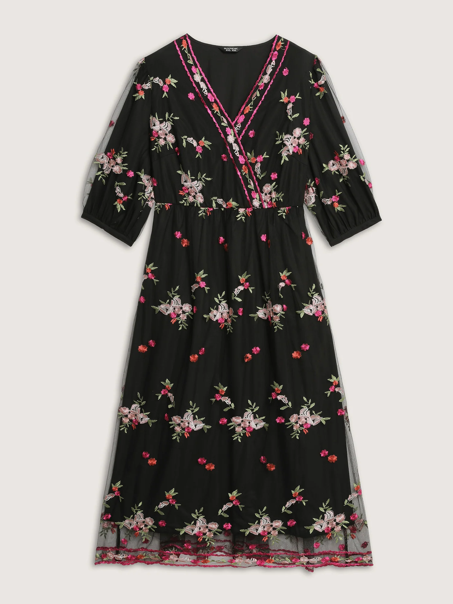 Color Embroidered Patchwork Flounce Sleeve Dress