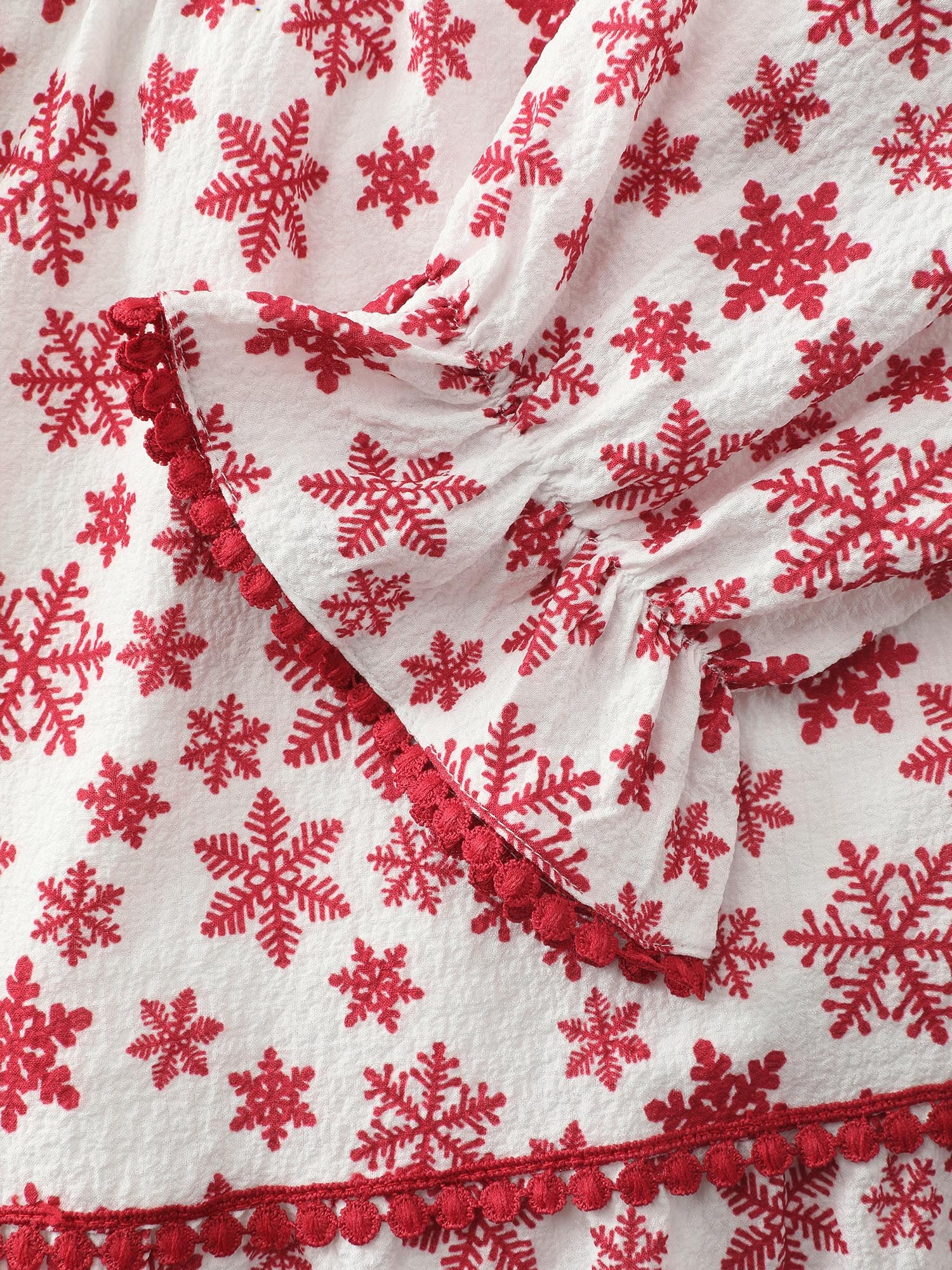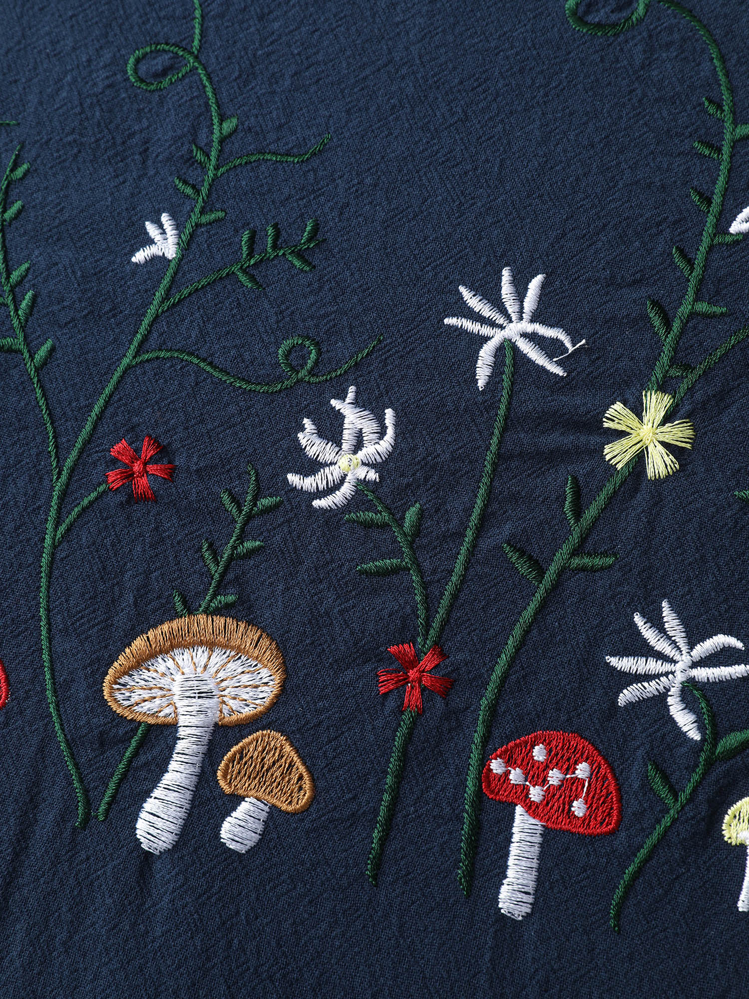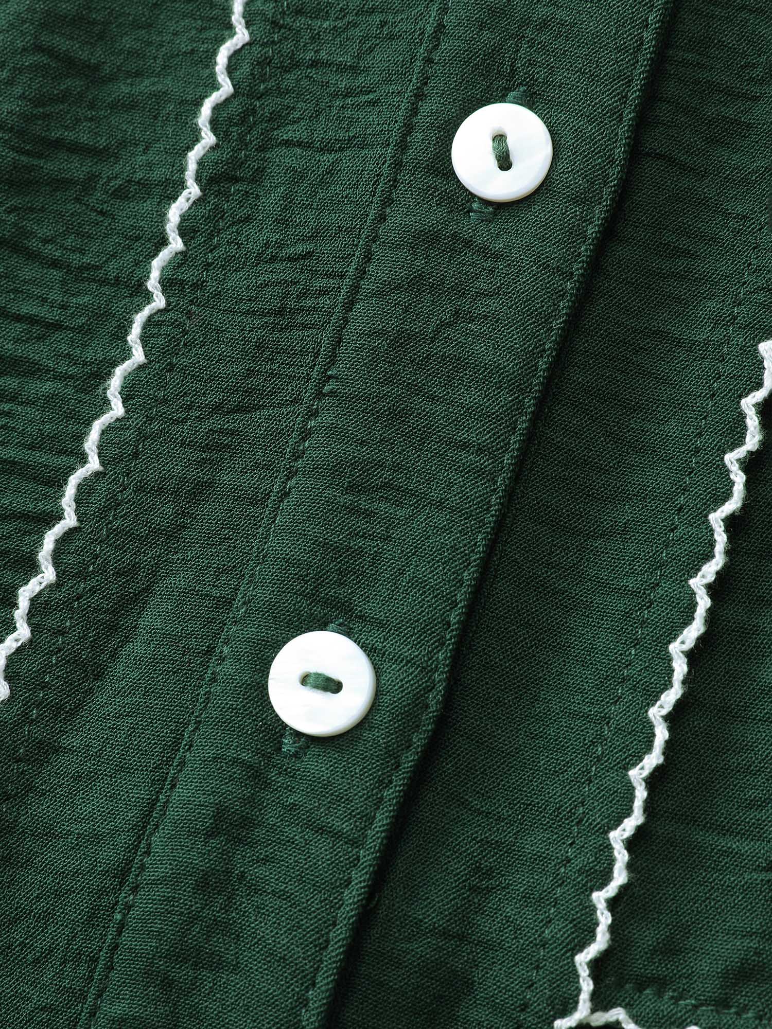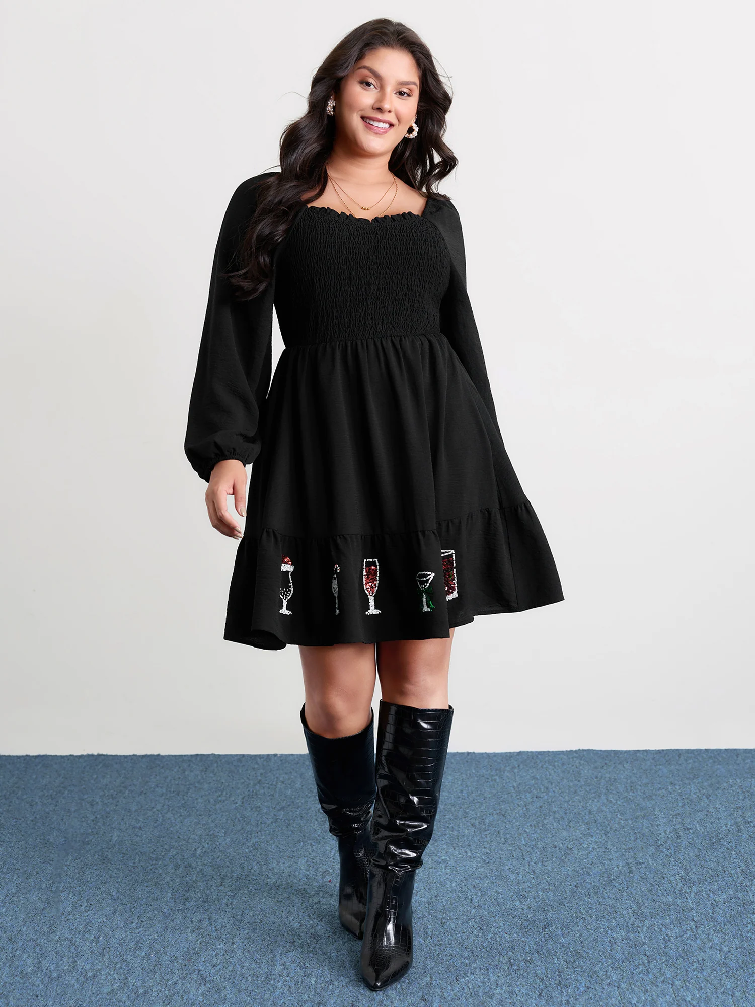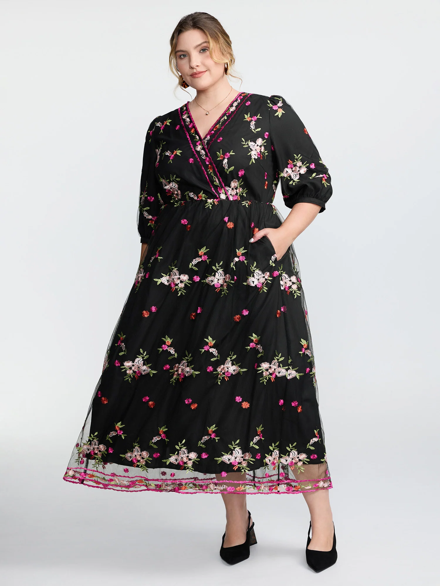 Color Embroidered Patchwork Flounce Sleeve Dress