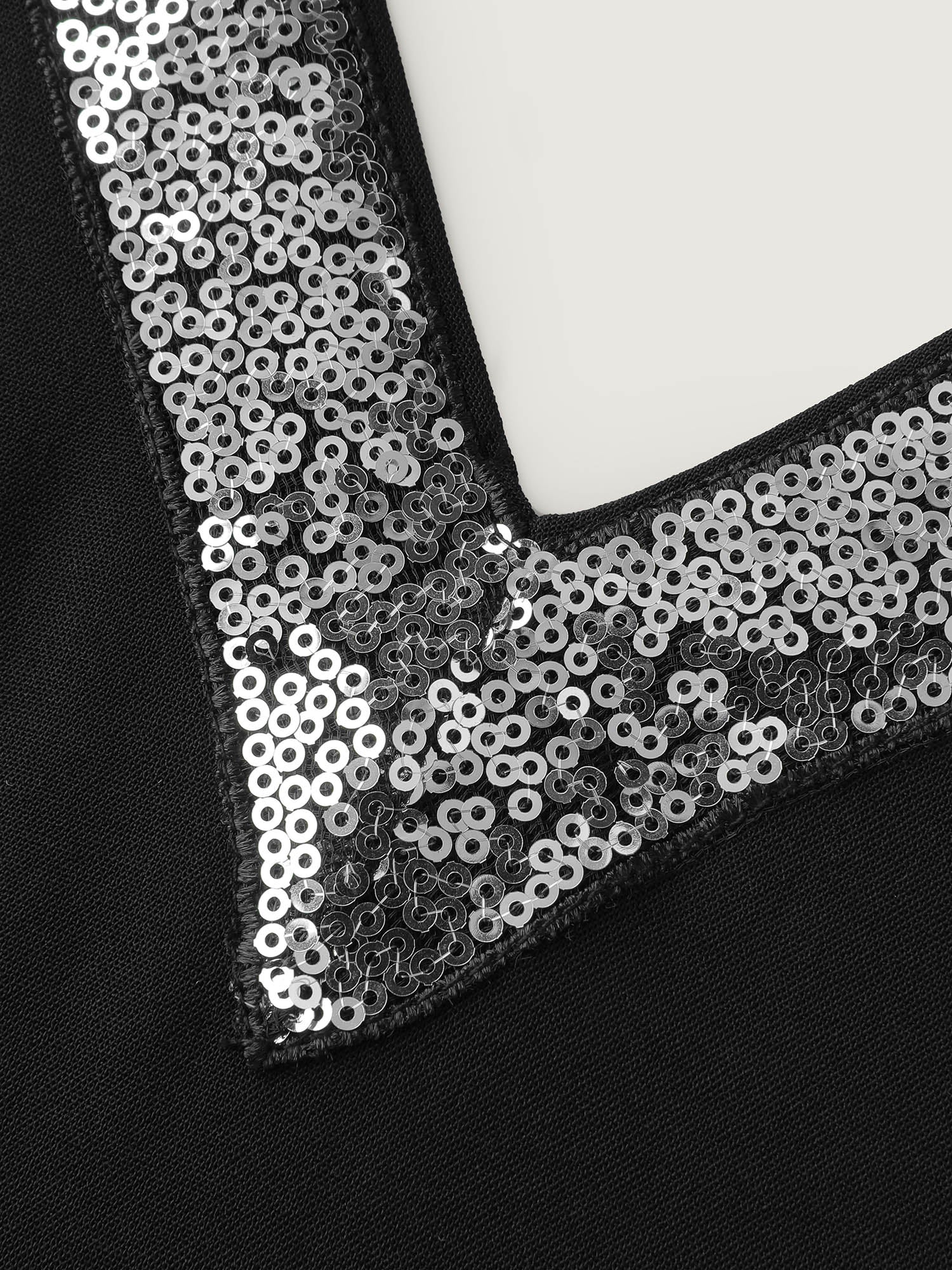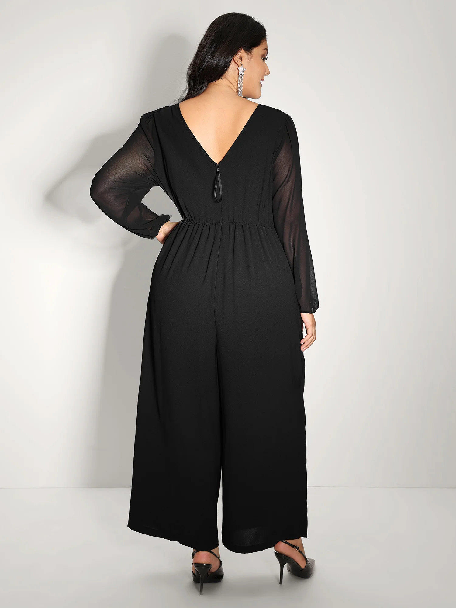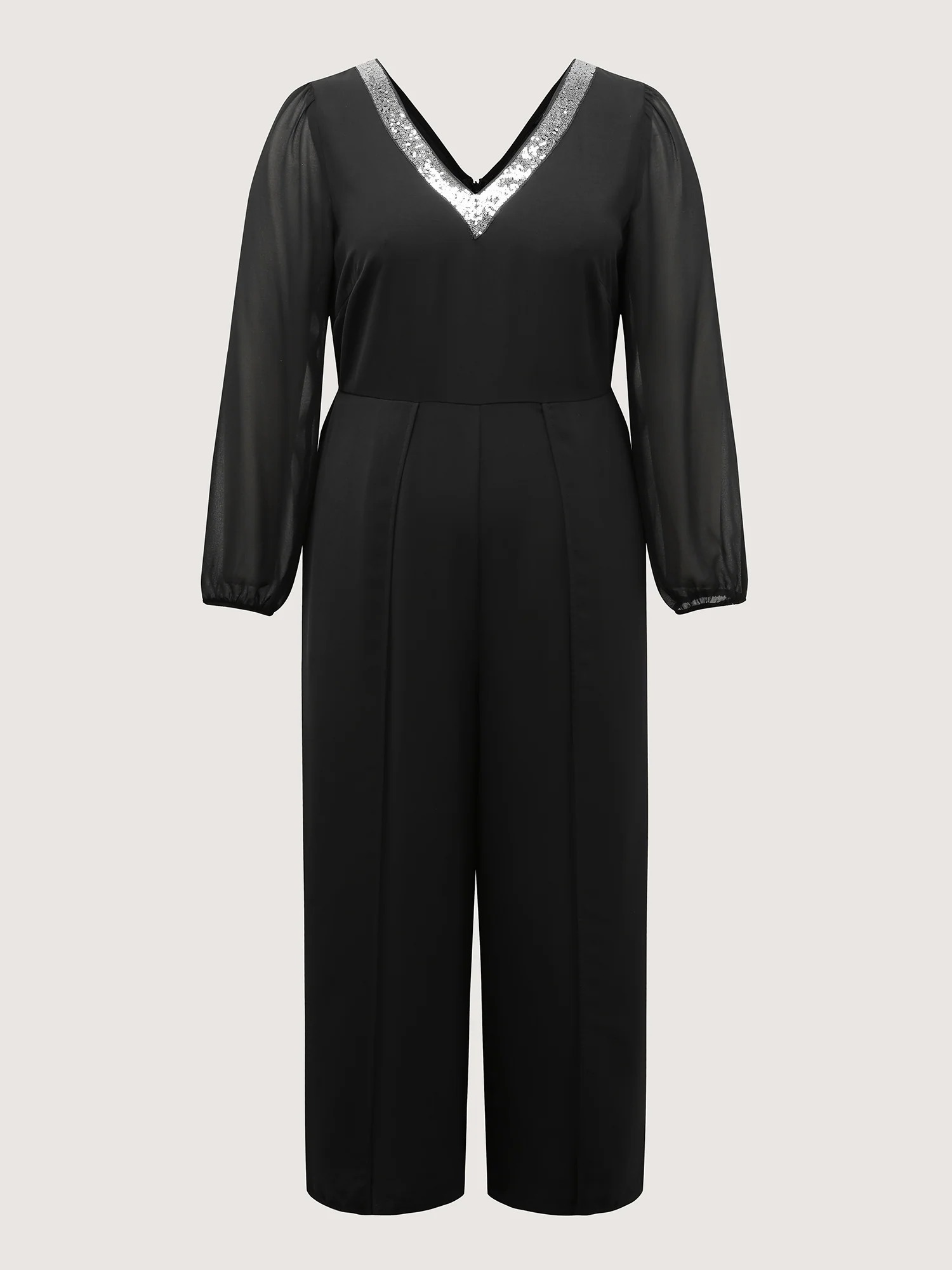 Sequin Neckline Petal Flowy Hem Jumpsuit
