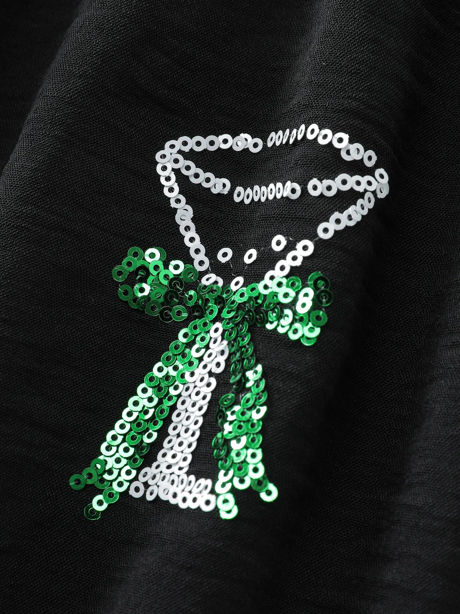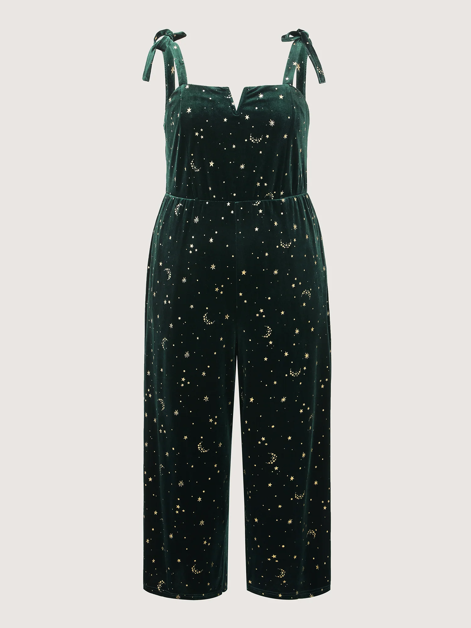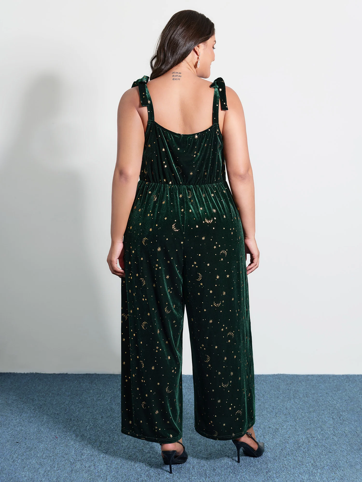 Sequin Neckline Petal Flowy Hem Jumpsuit
