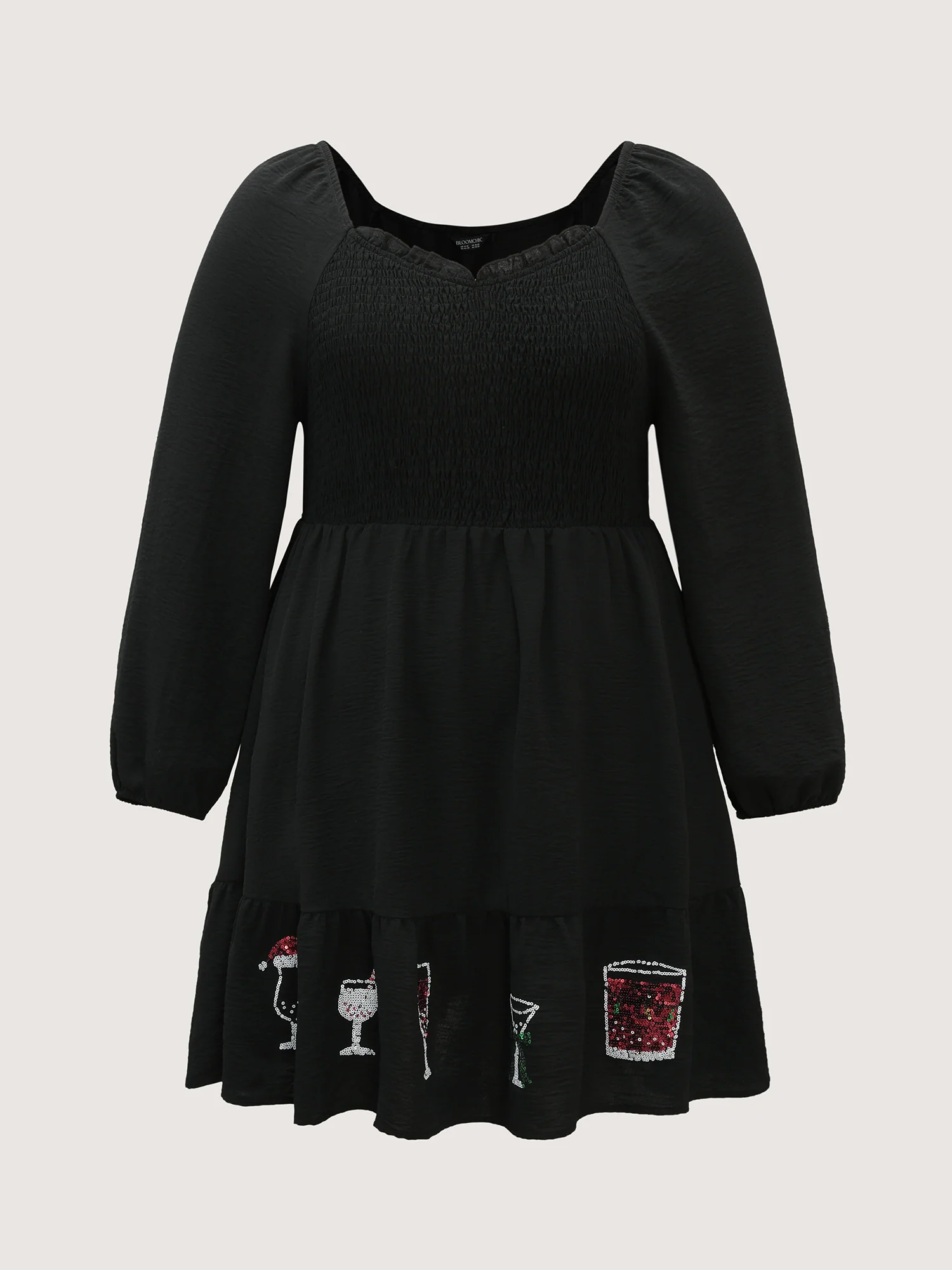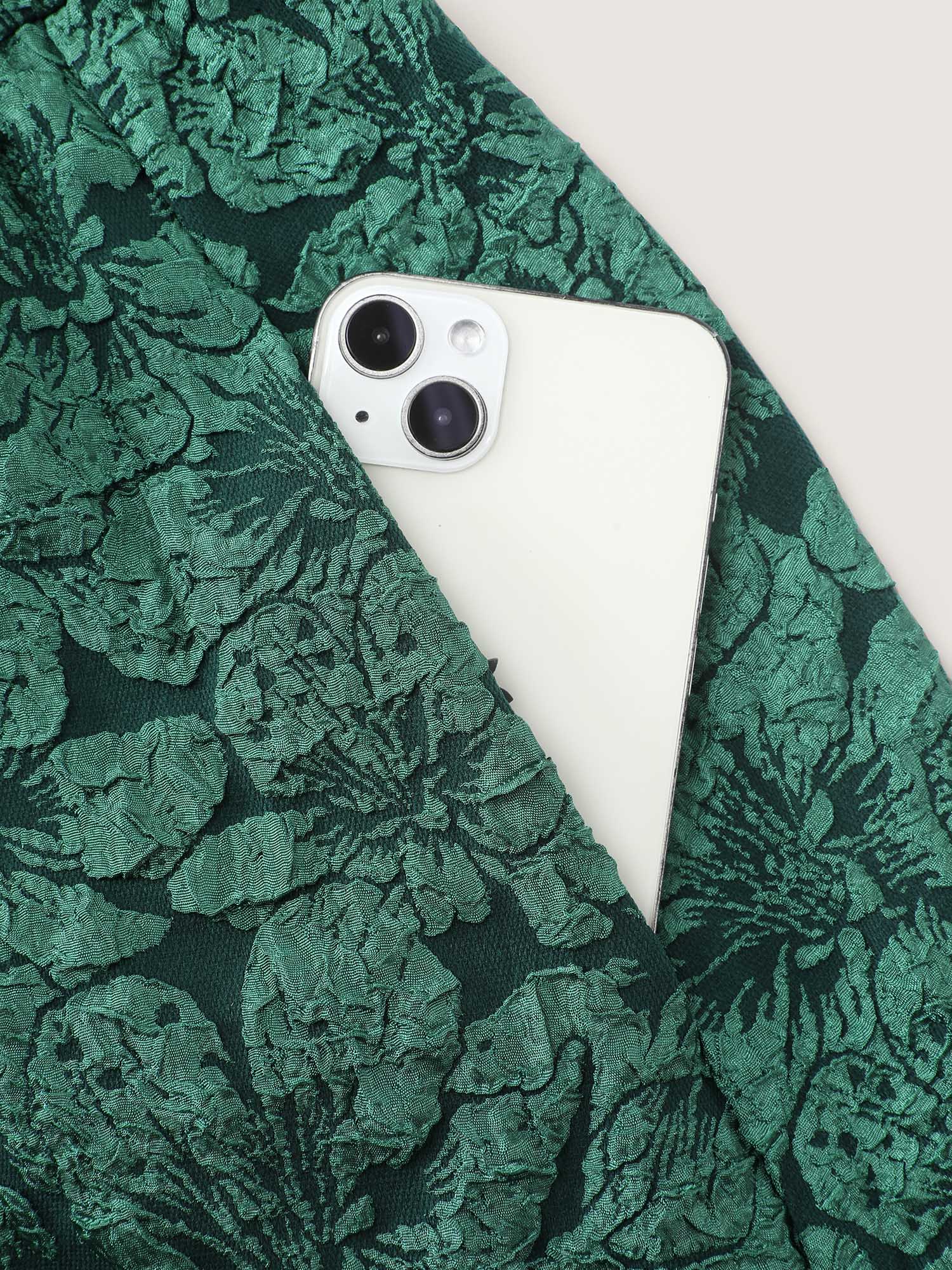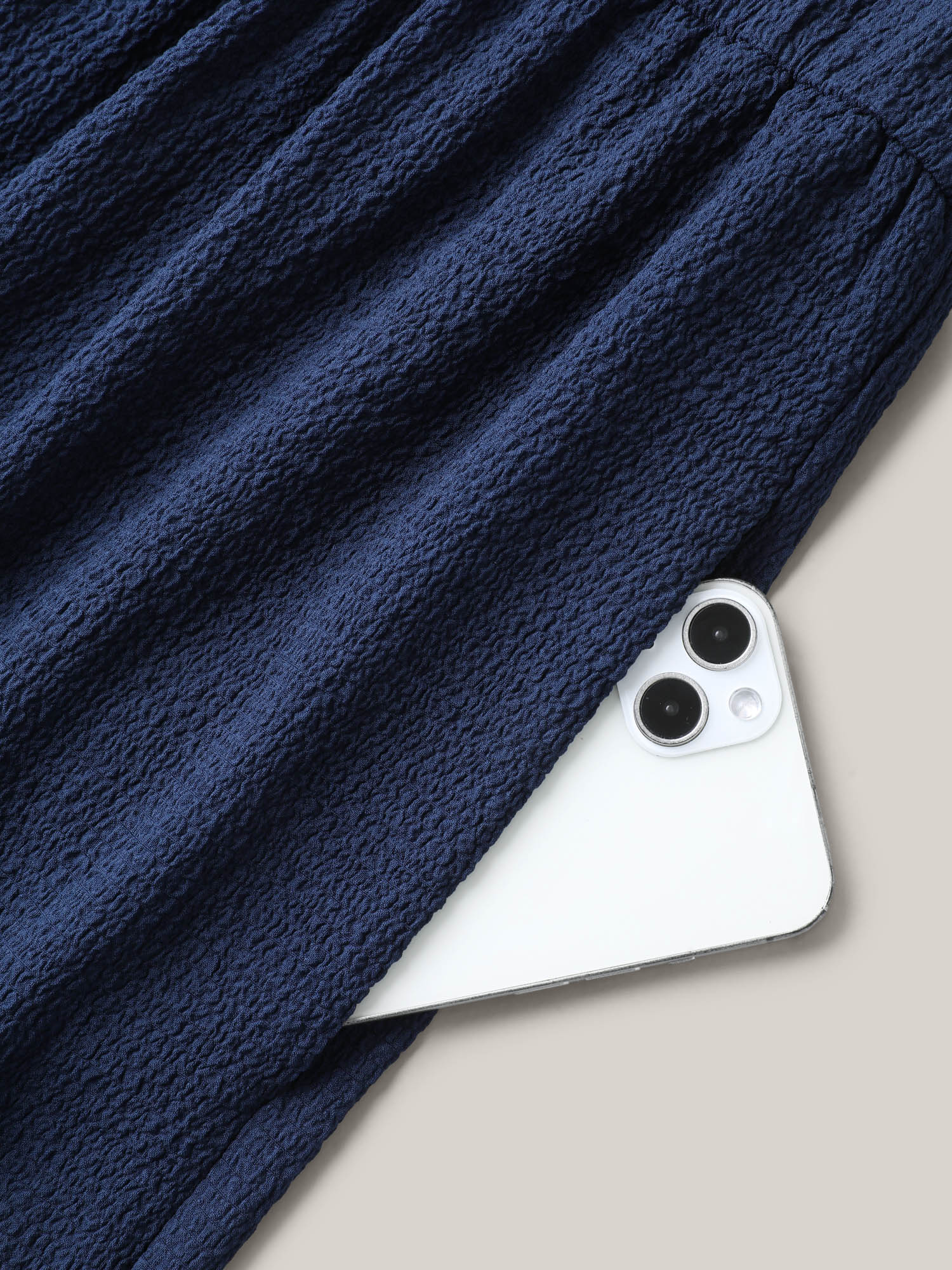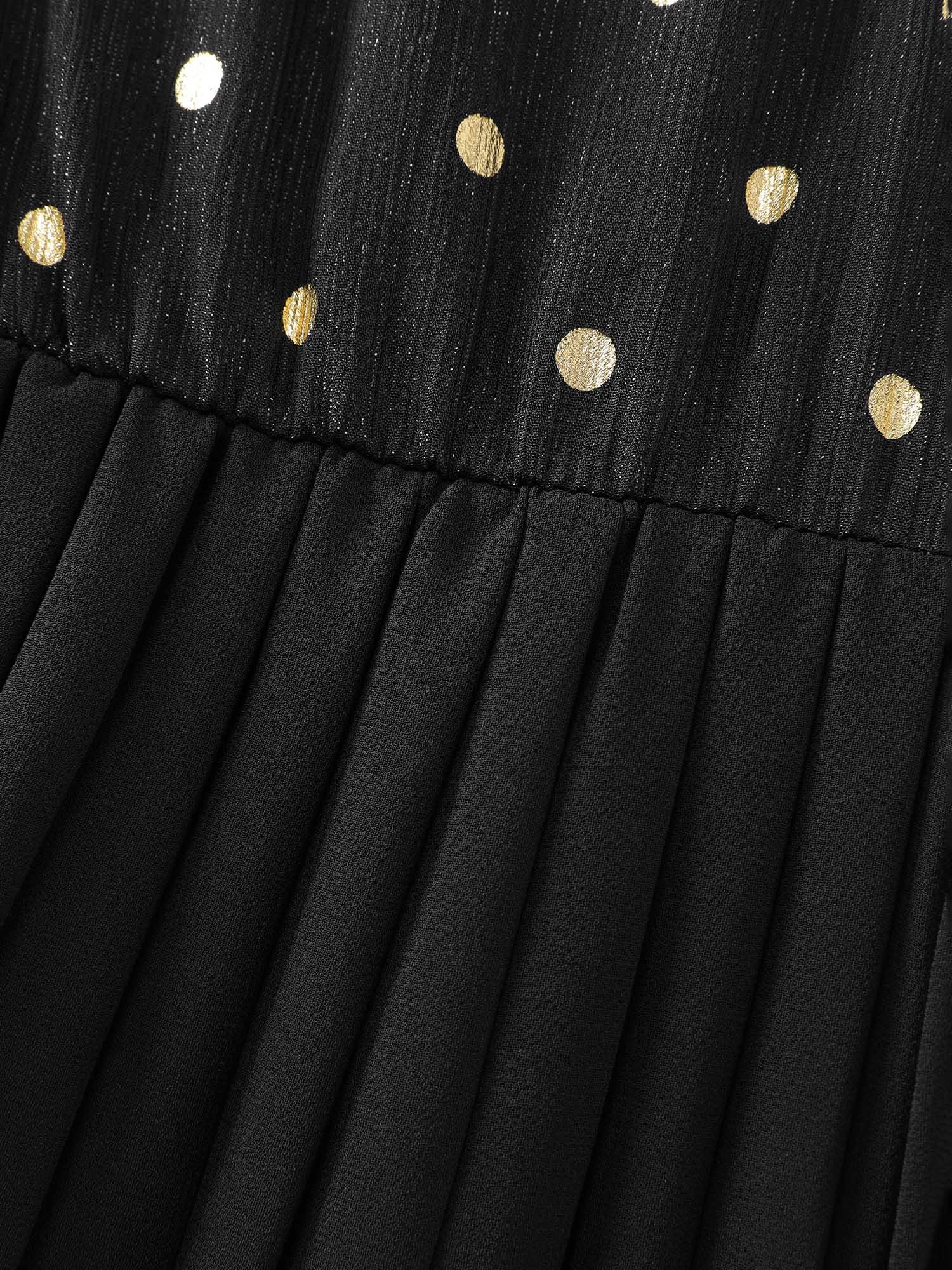 Shimmery Hot Stamped Shirred Pockets Party Dress