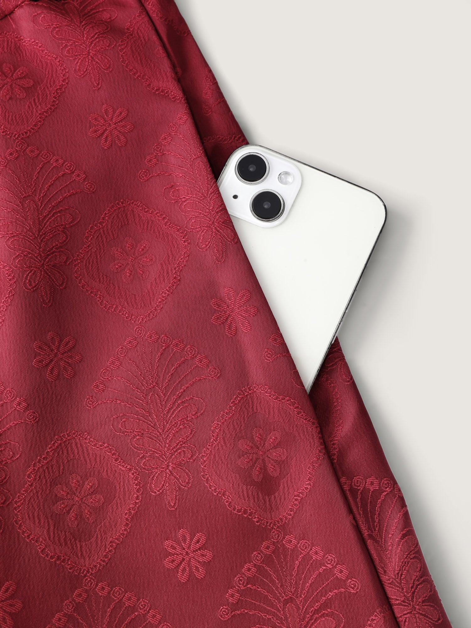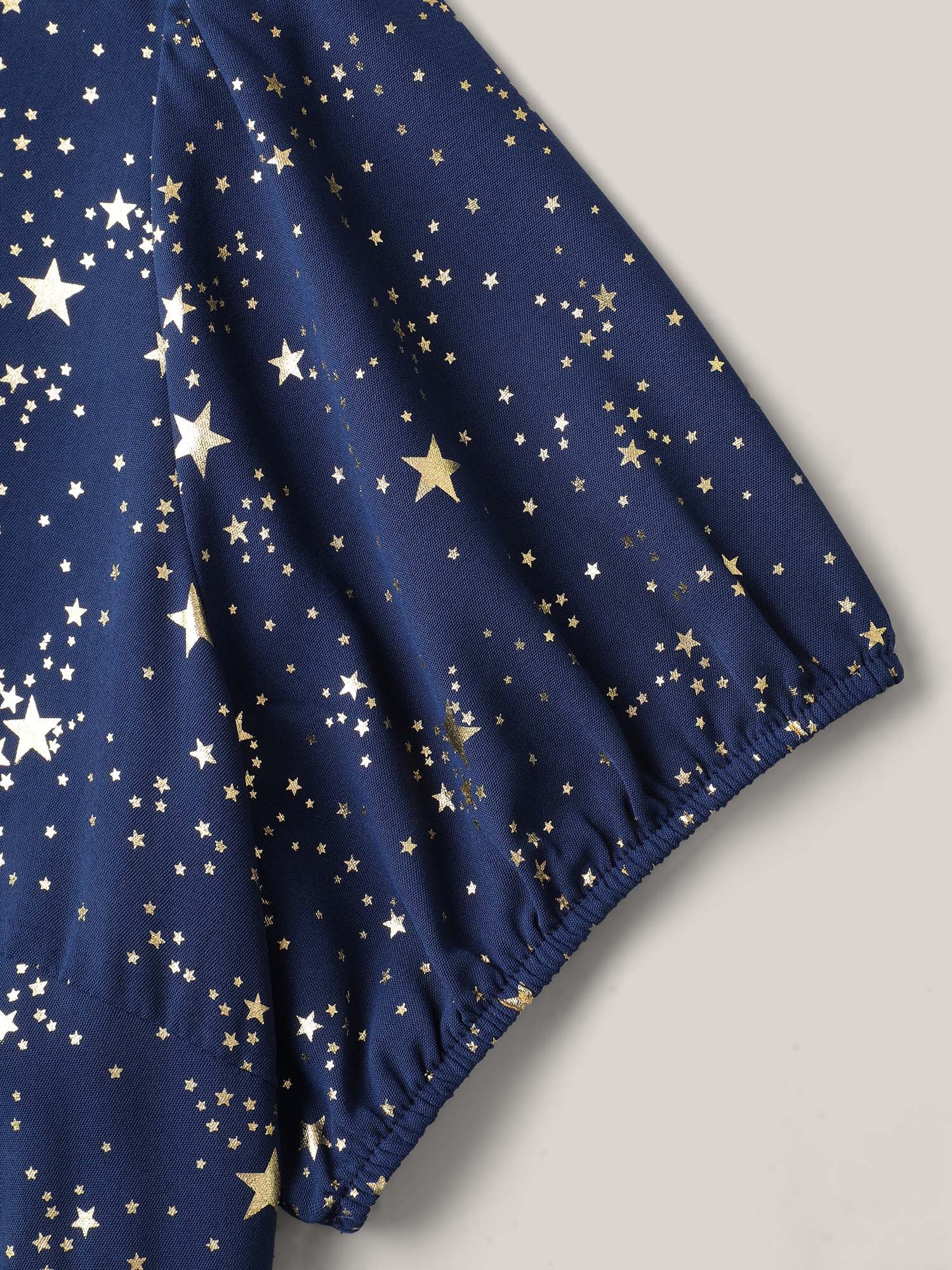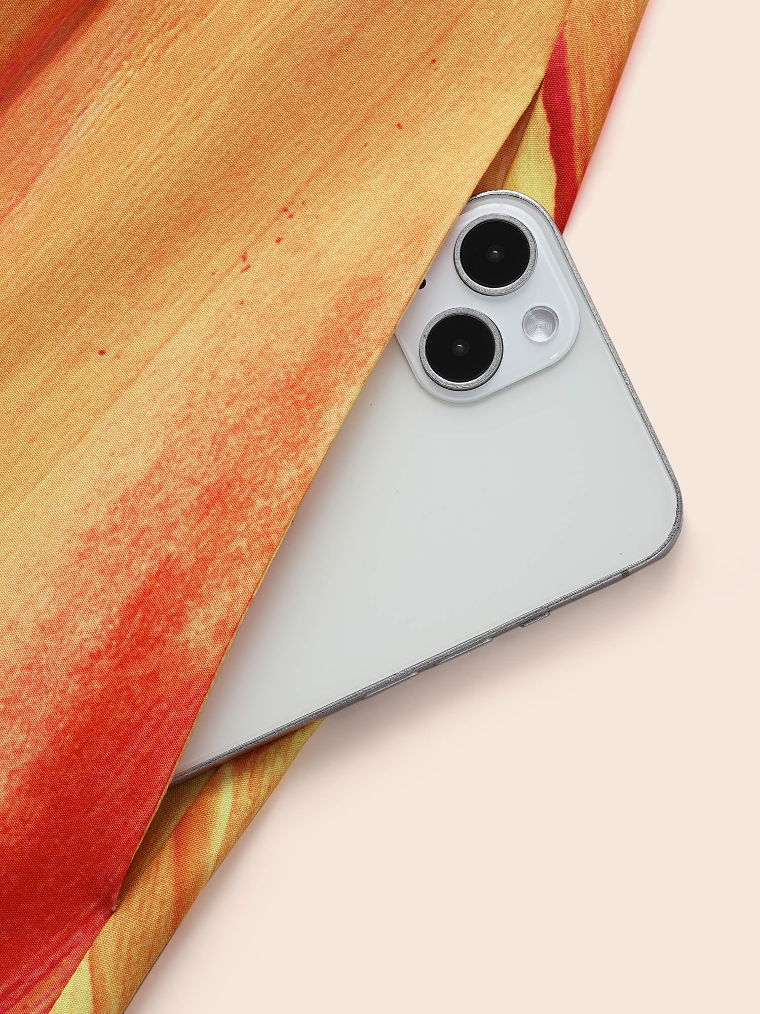 Shimmery Hot Stamped Shirred Pockets Party Dress