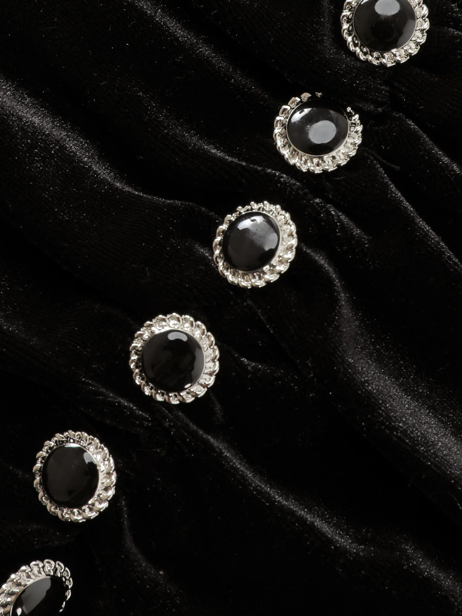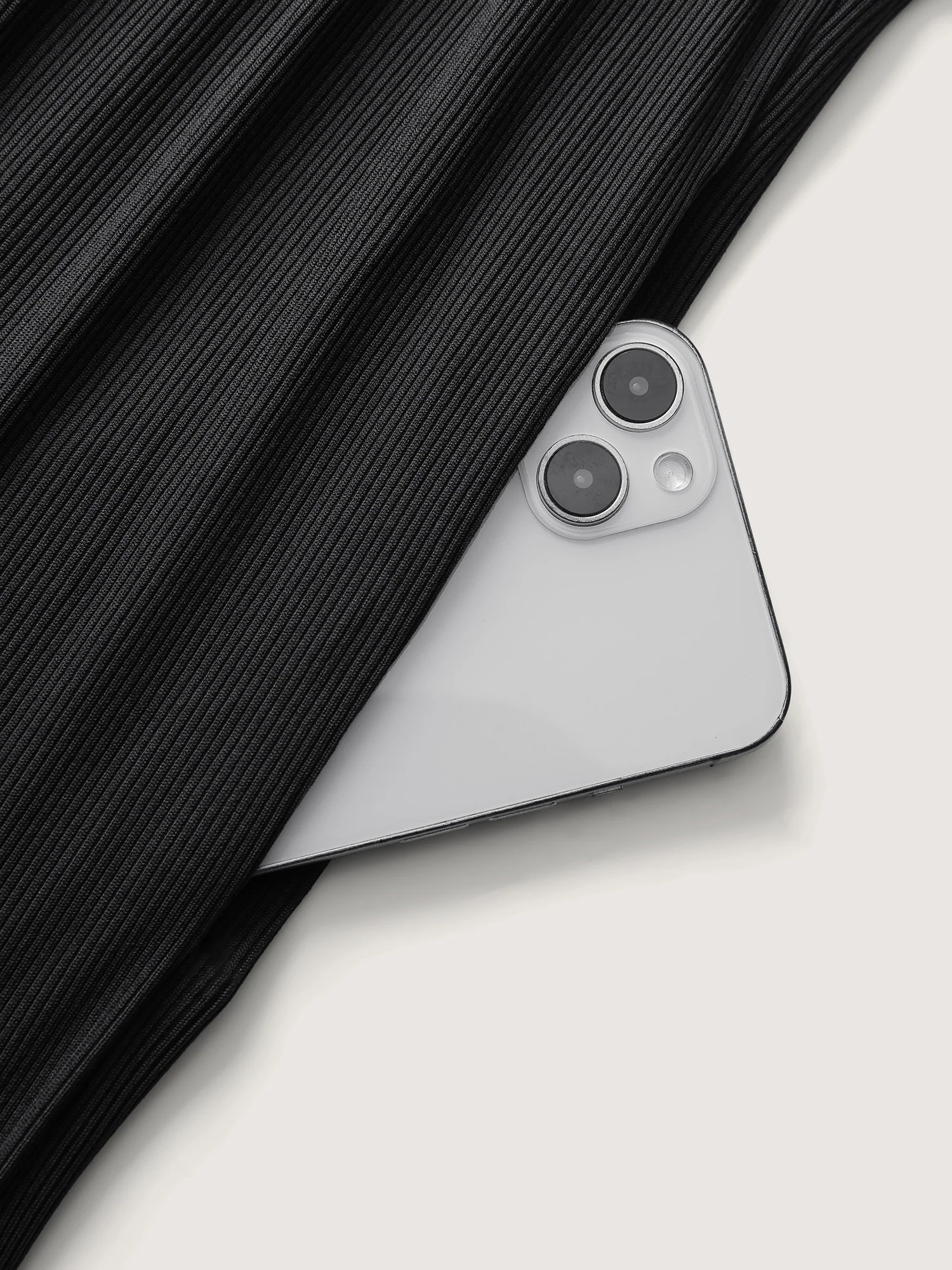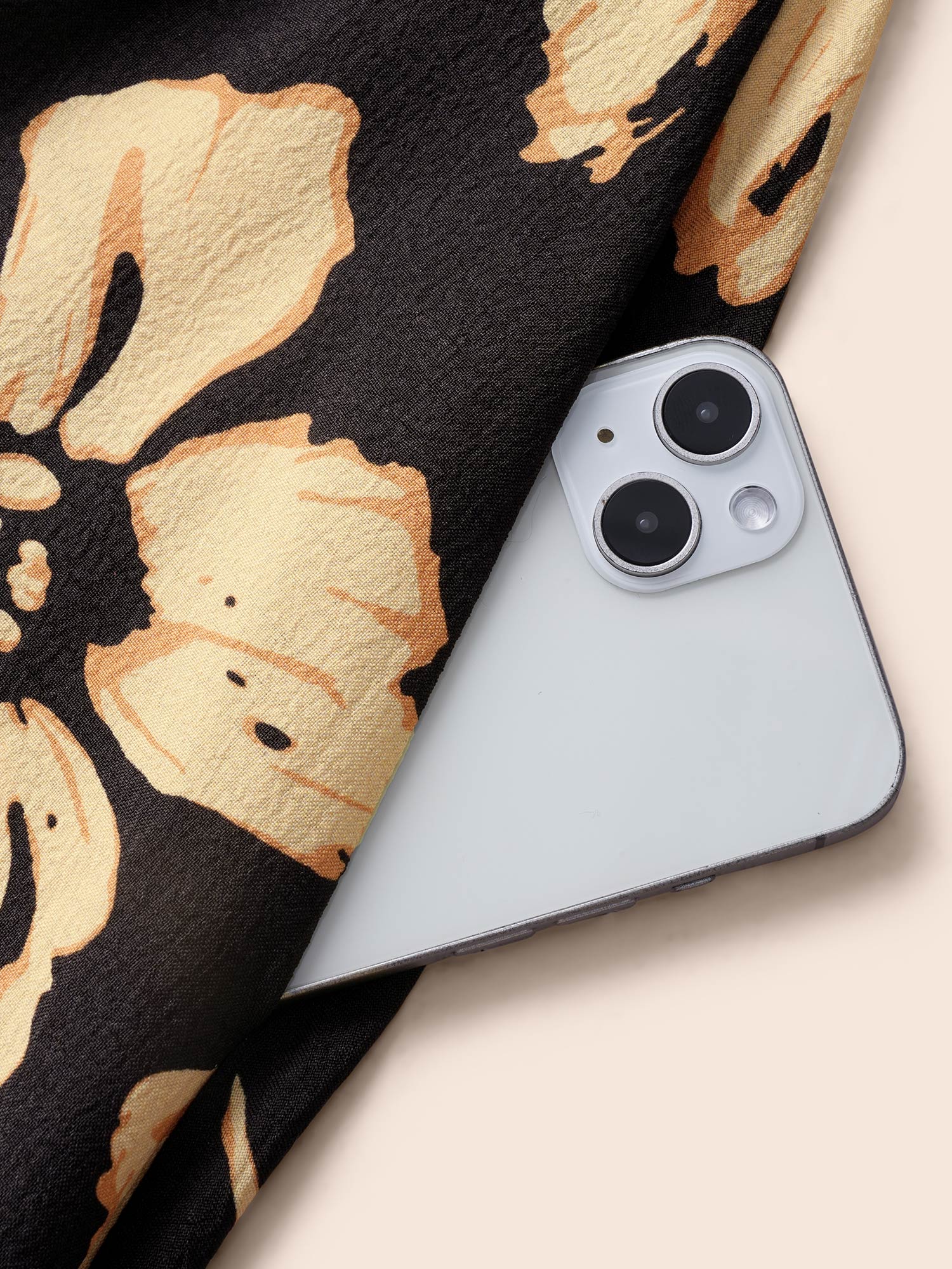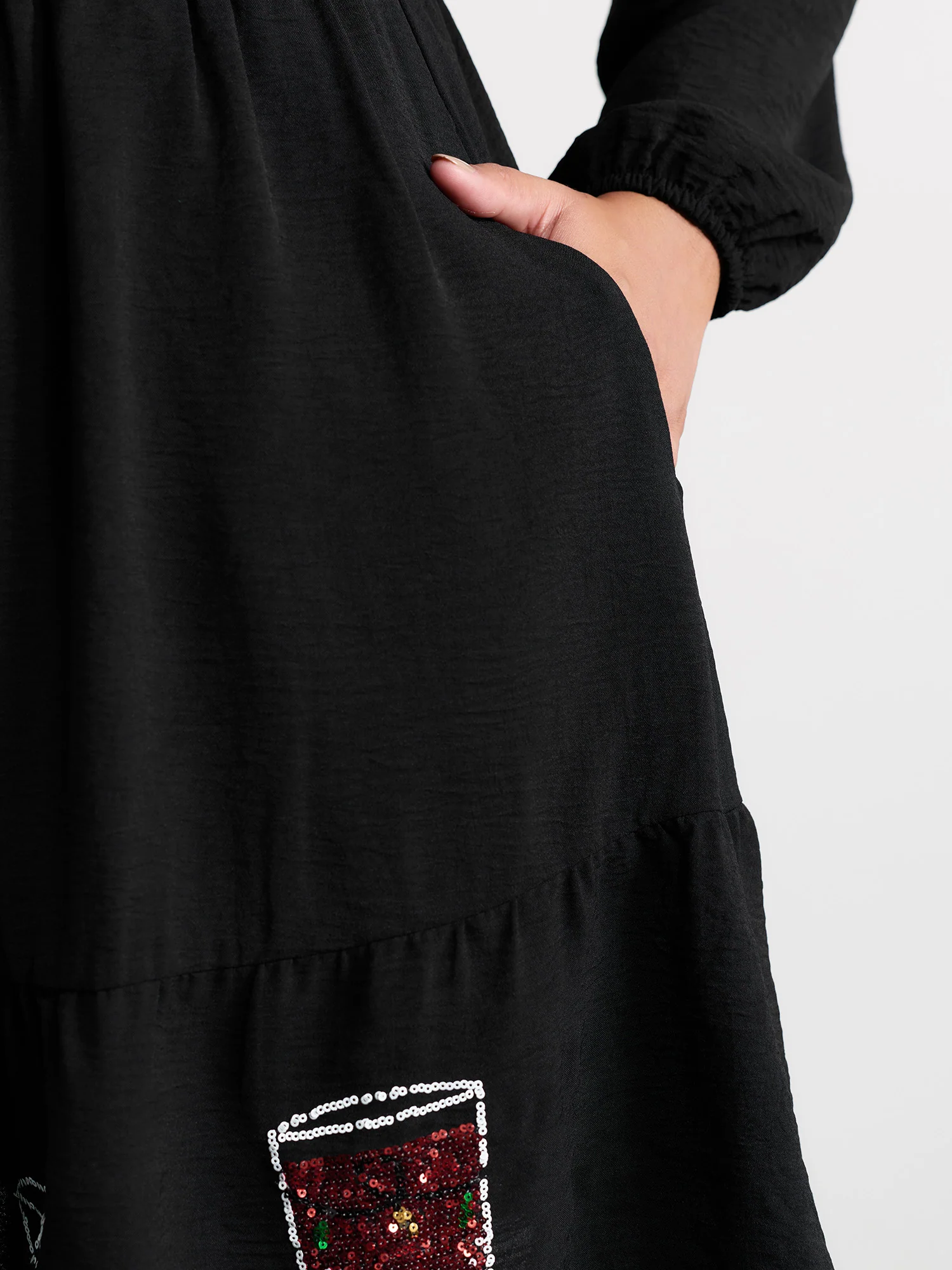 Shimmery Hot Stamped Shirred Pockets Party Dress