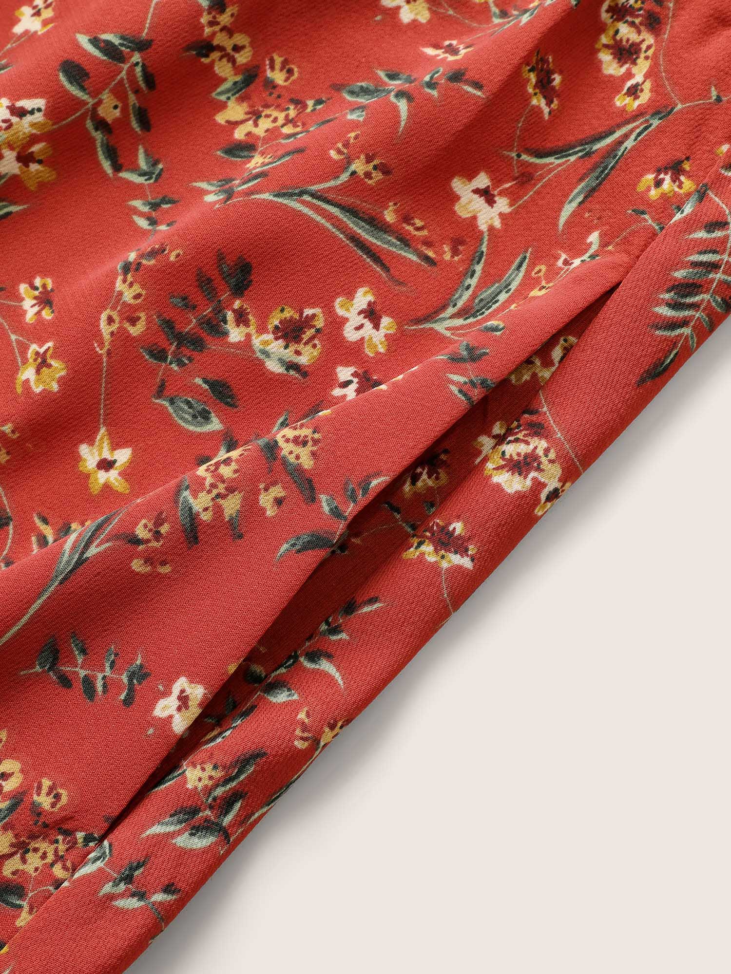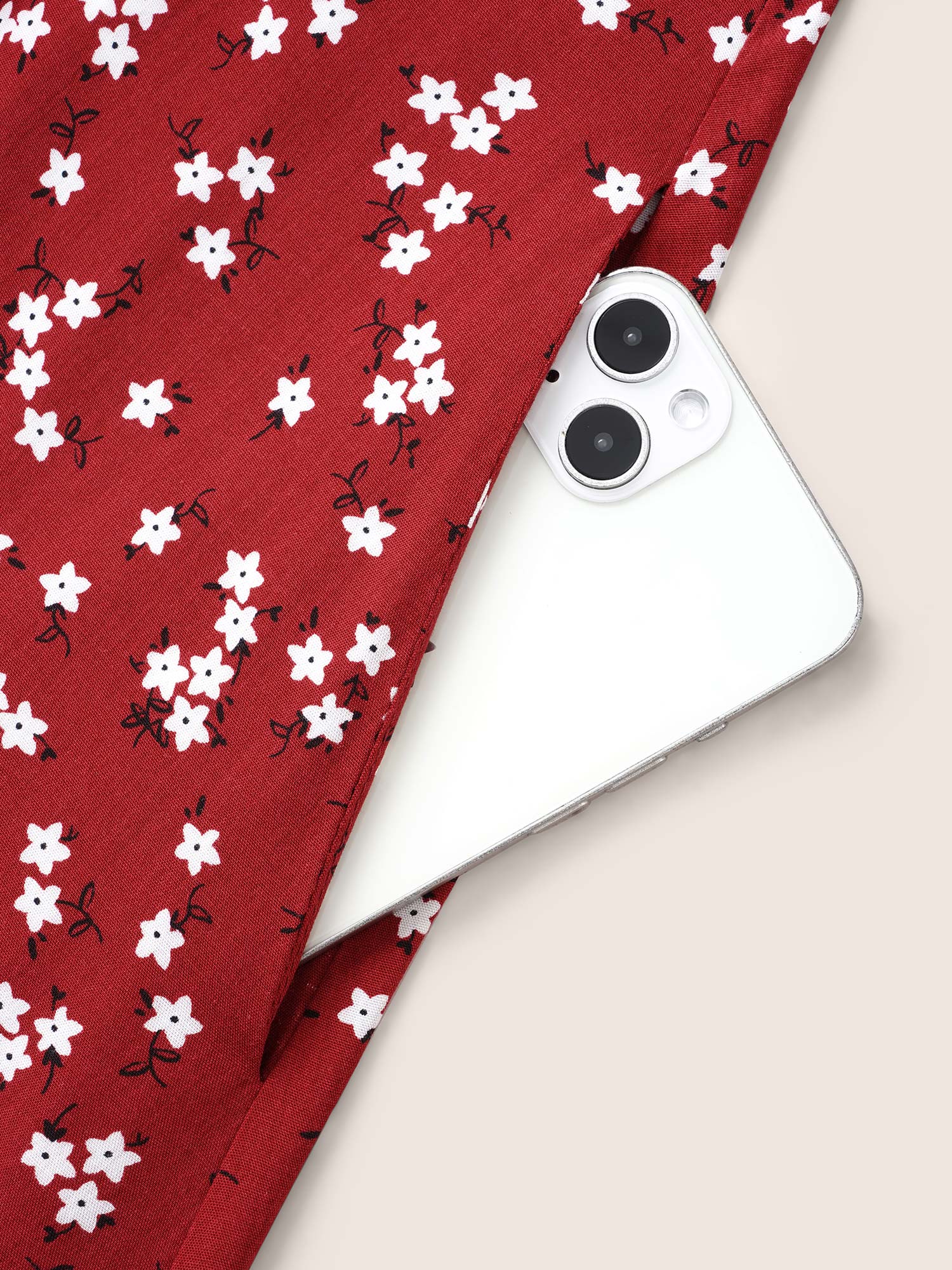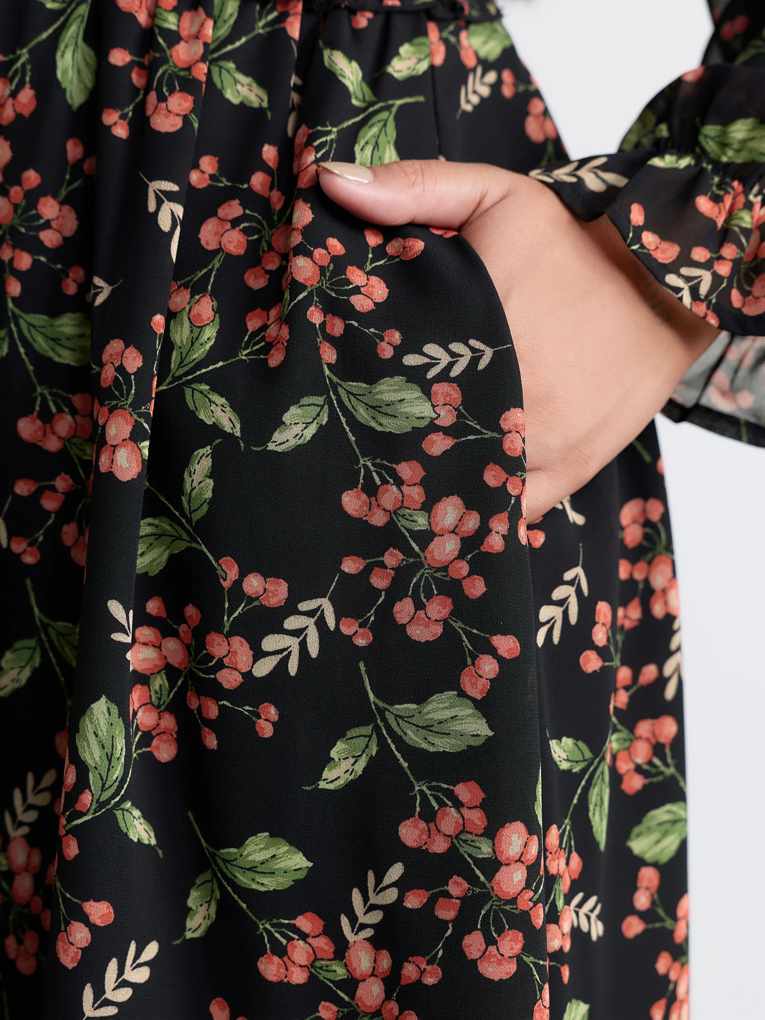Chiffon Floral Ruffled Trim Pockets Midi Dress