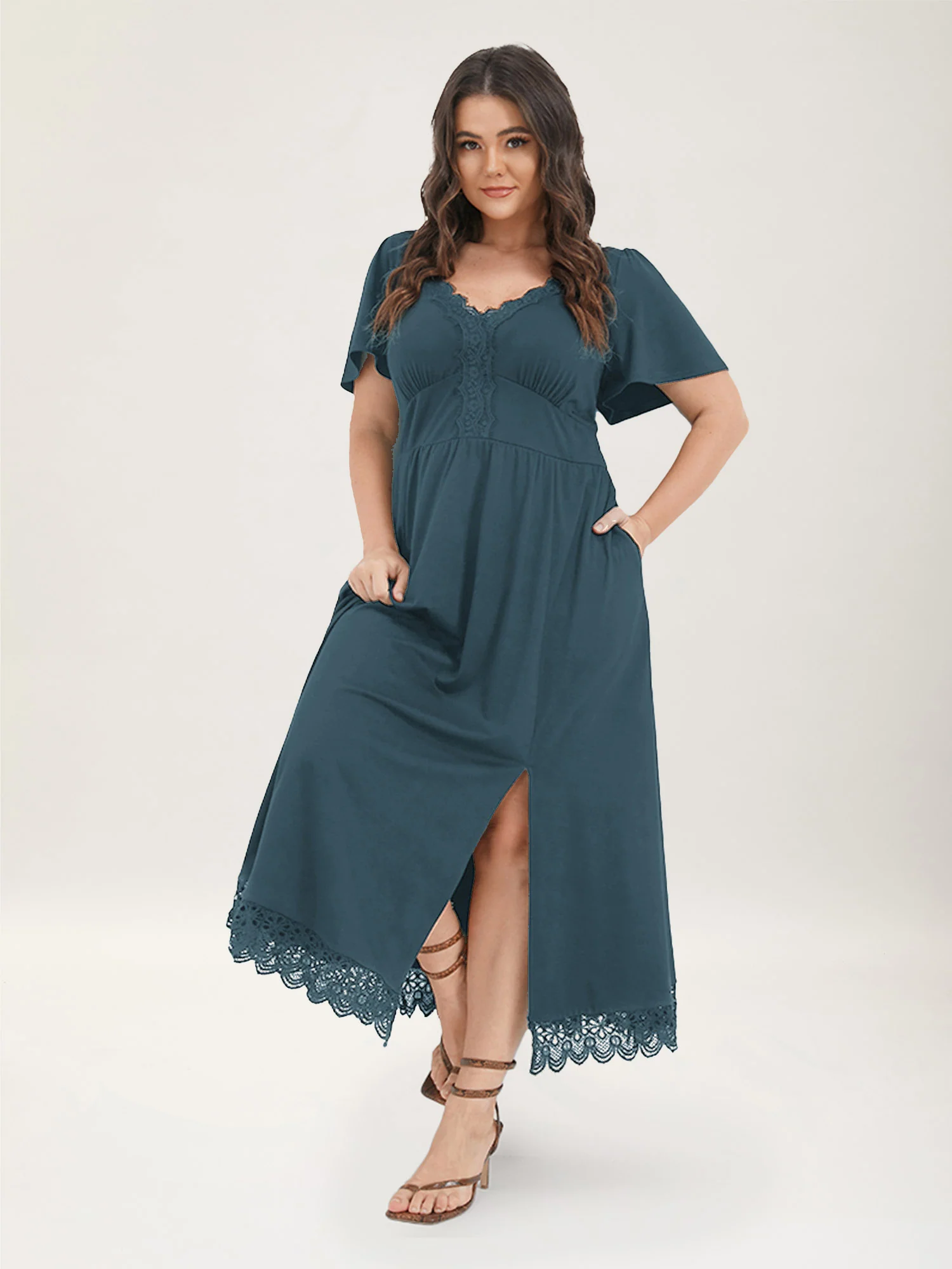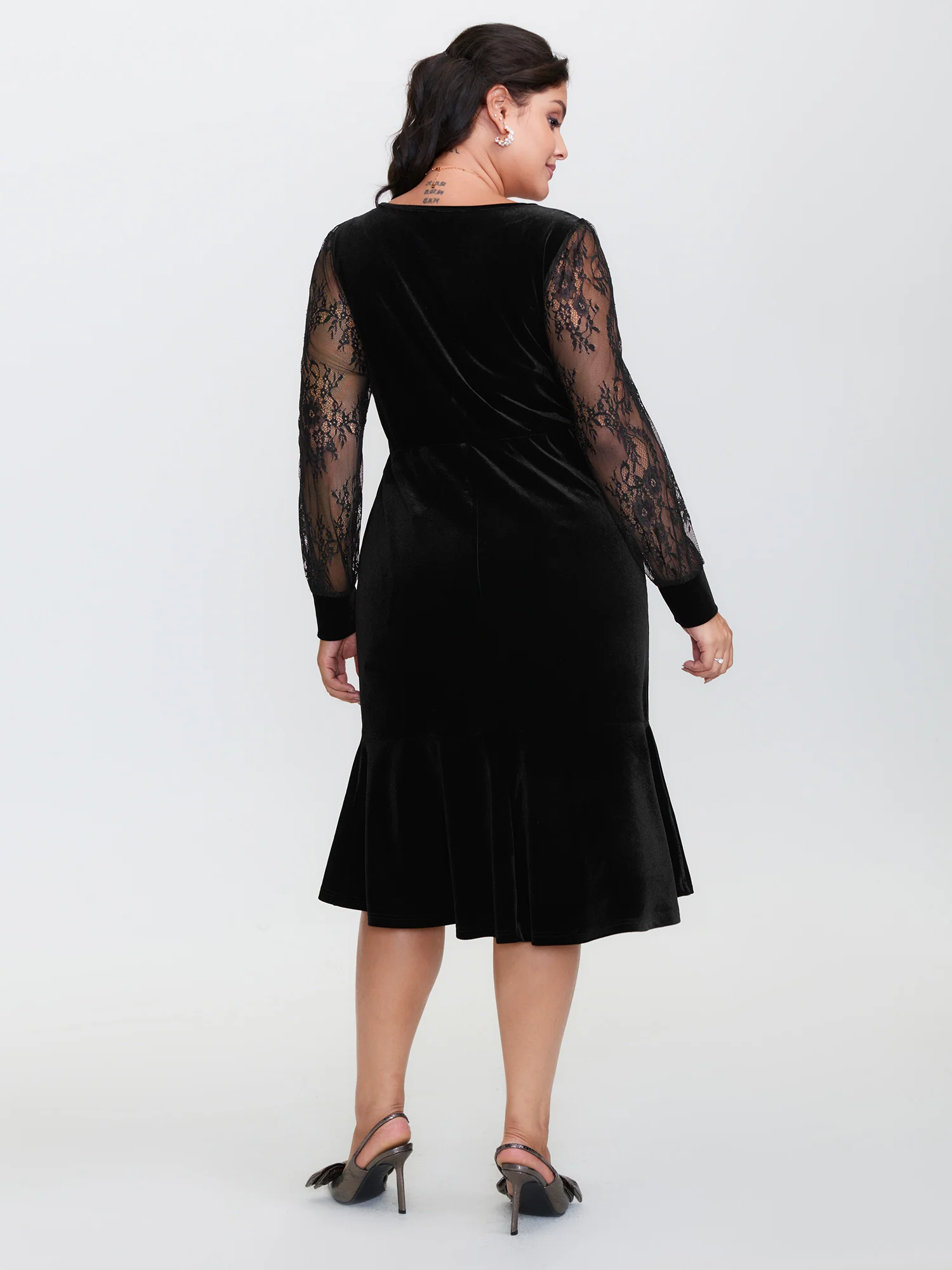 Lace Trim Ruffled Sheer Stretchy Party Dress