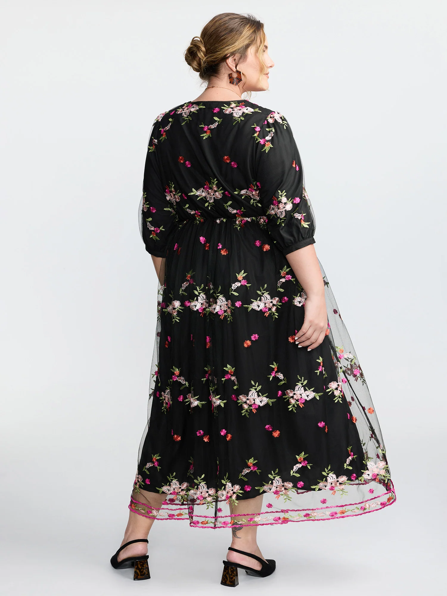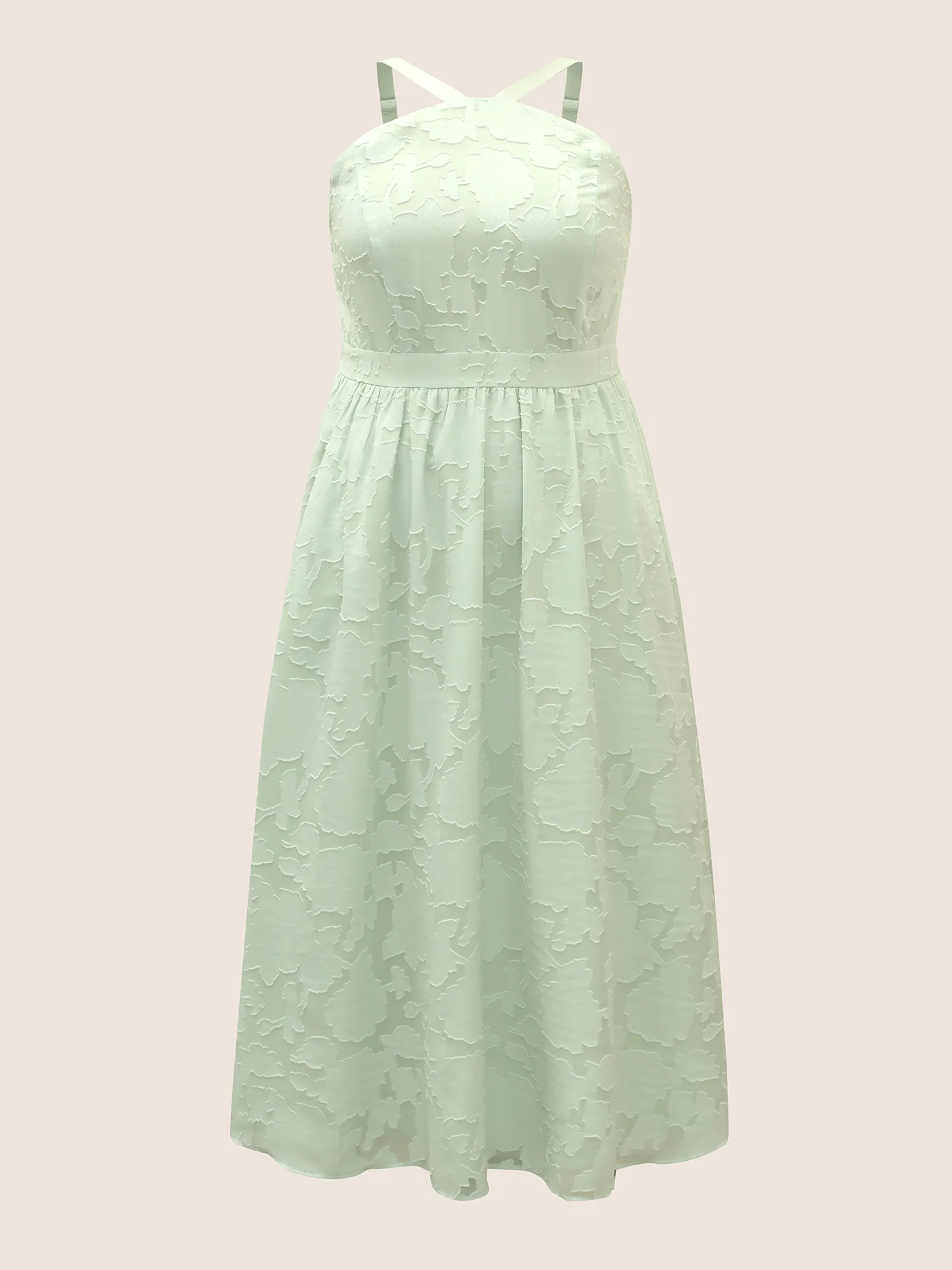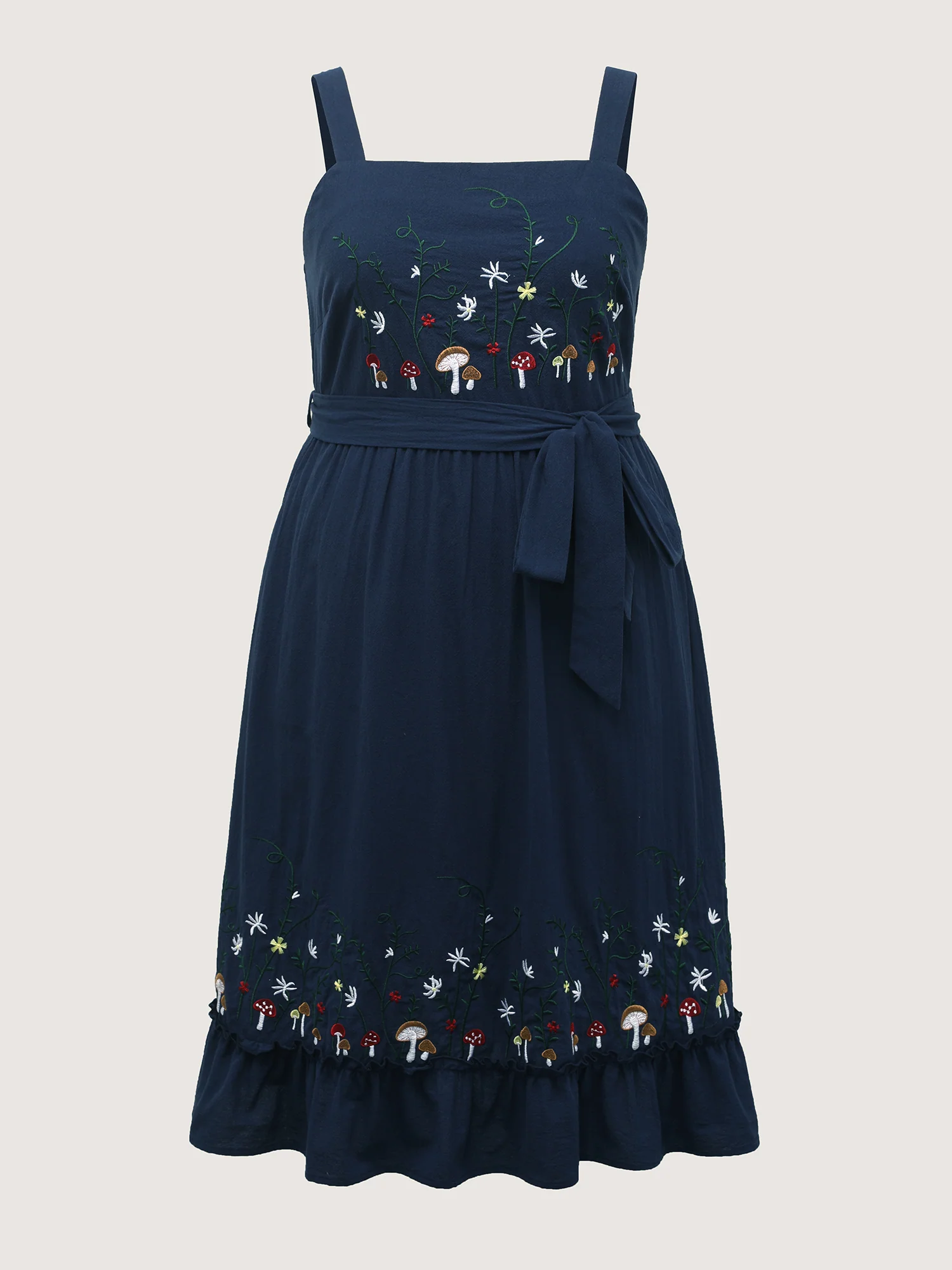 Cotton Garden Embroidery Belted Waist Midi Dress