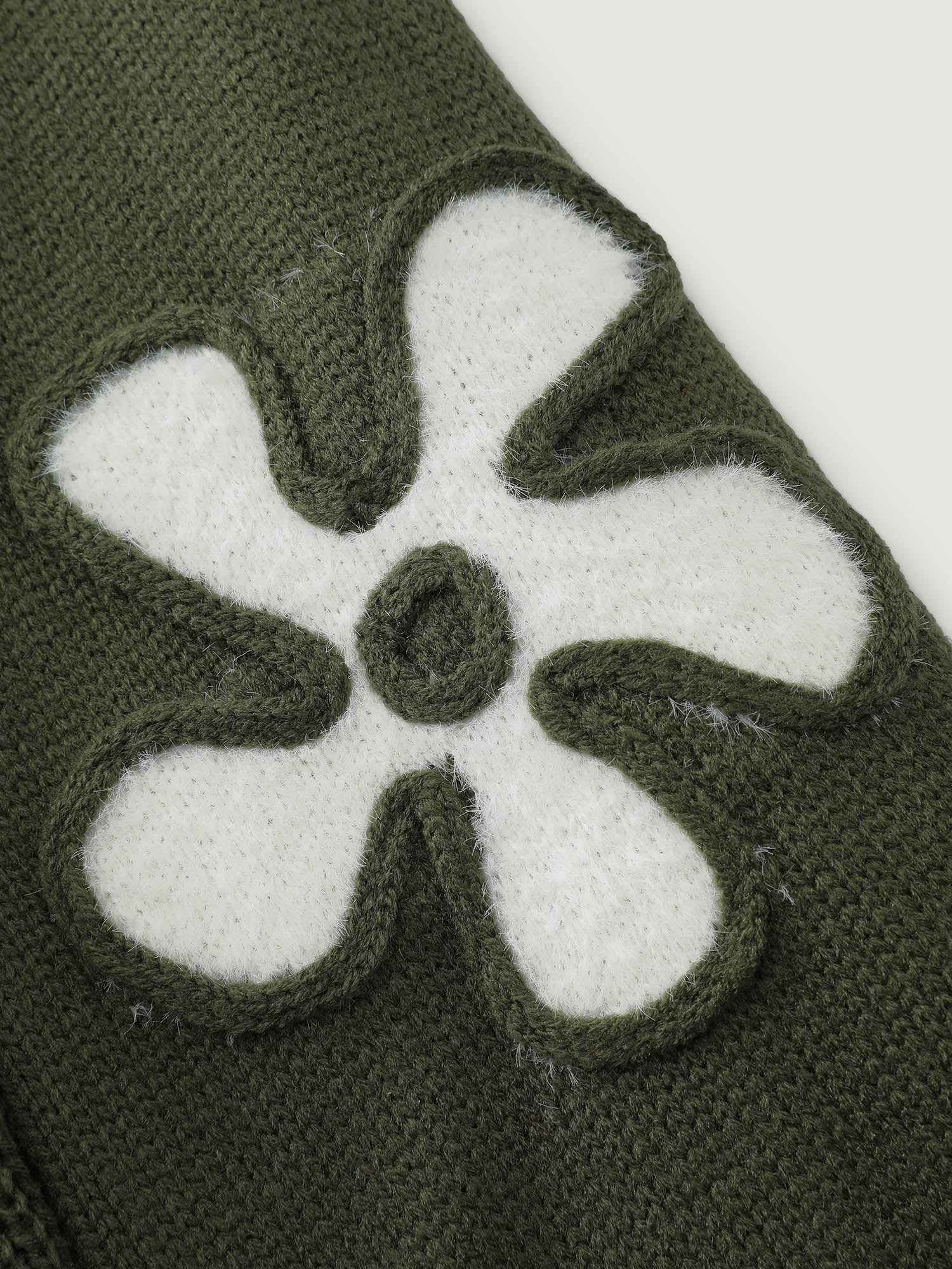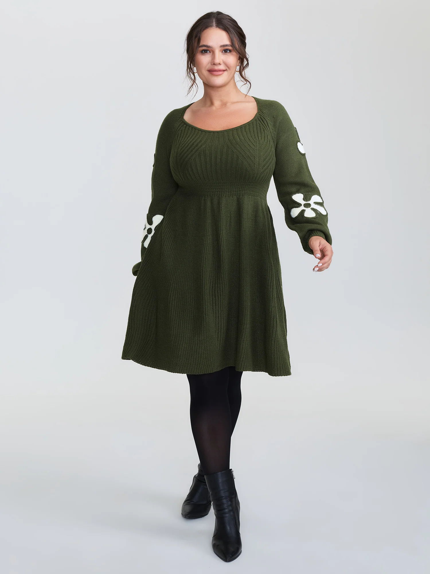 Floral Cord Embroidered Cinched-Waist Sweater Dress