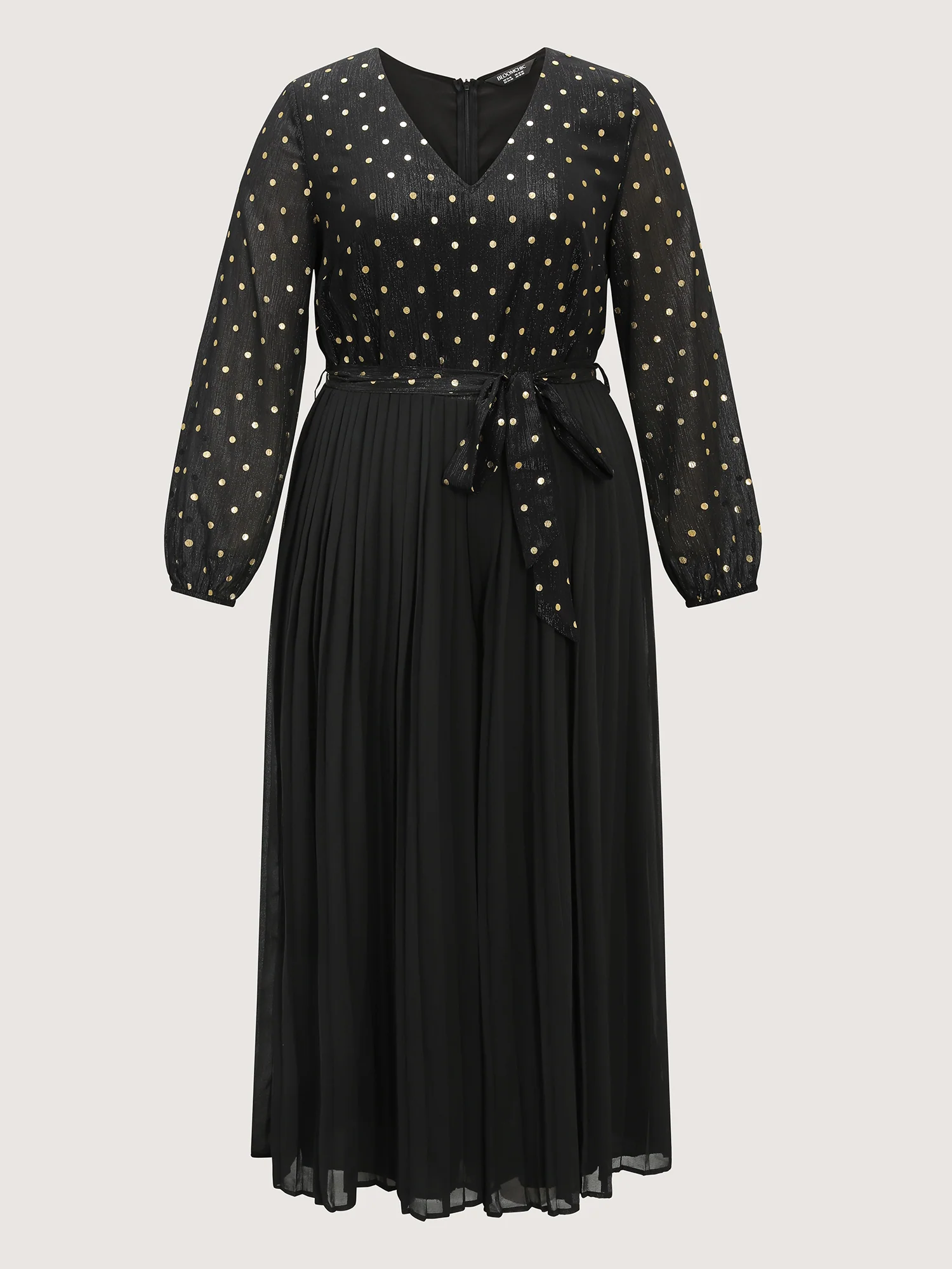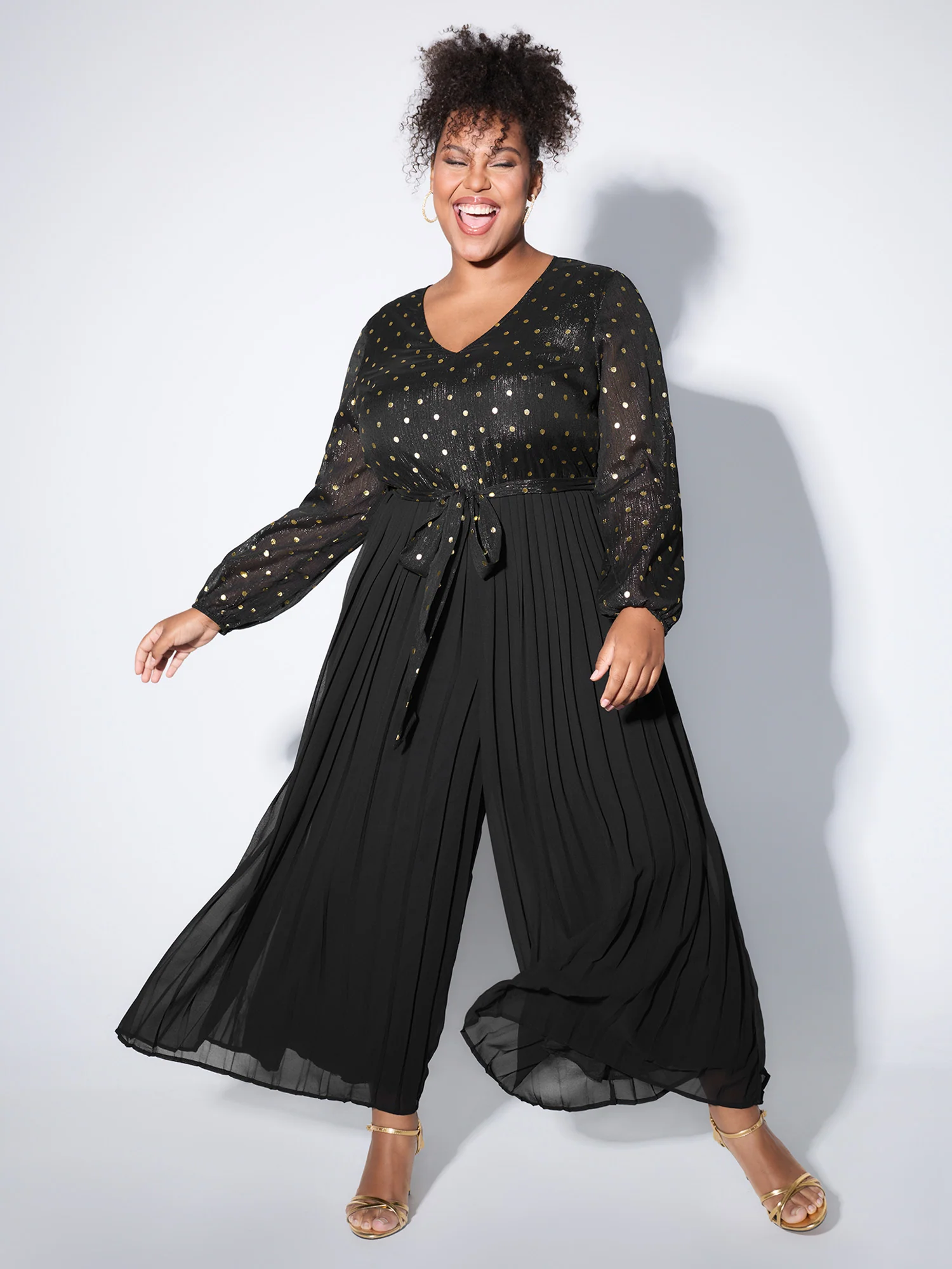 Chiffon Gold Polka Dots Cinched-Waist Jumpsuit