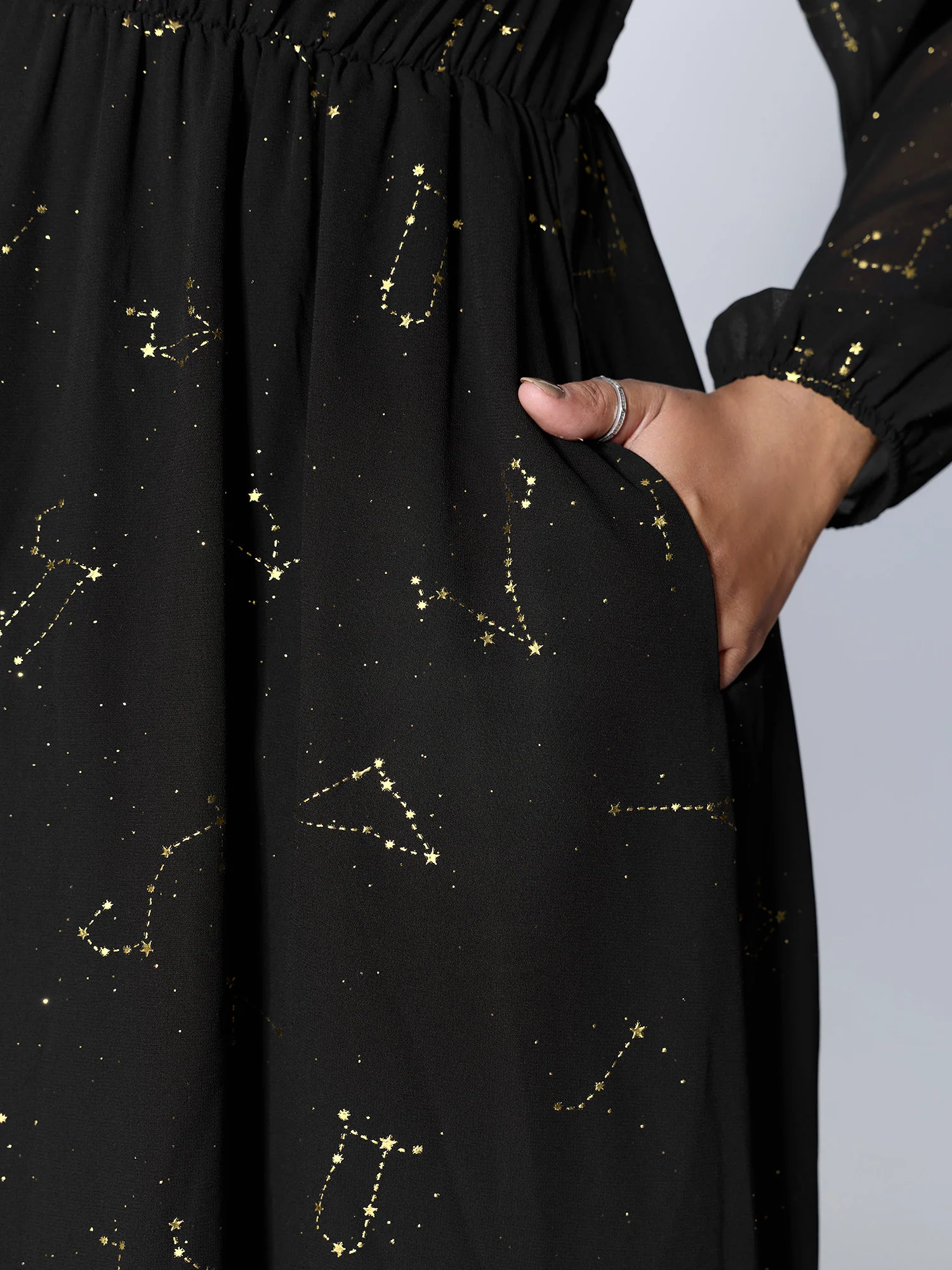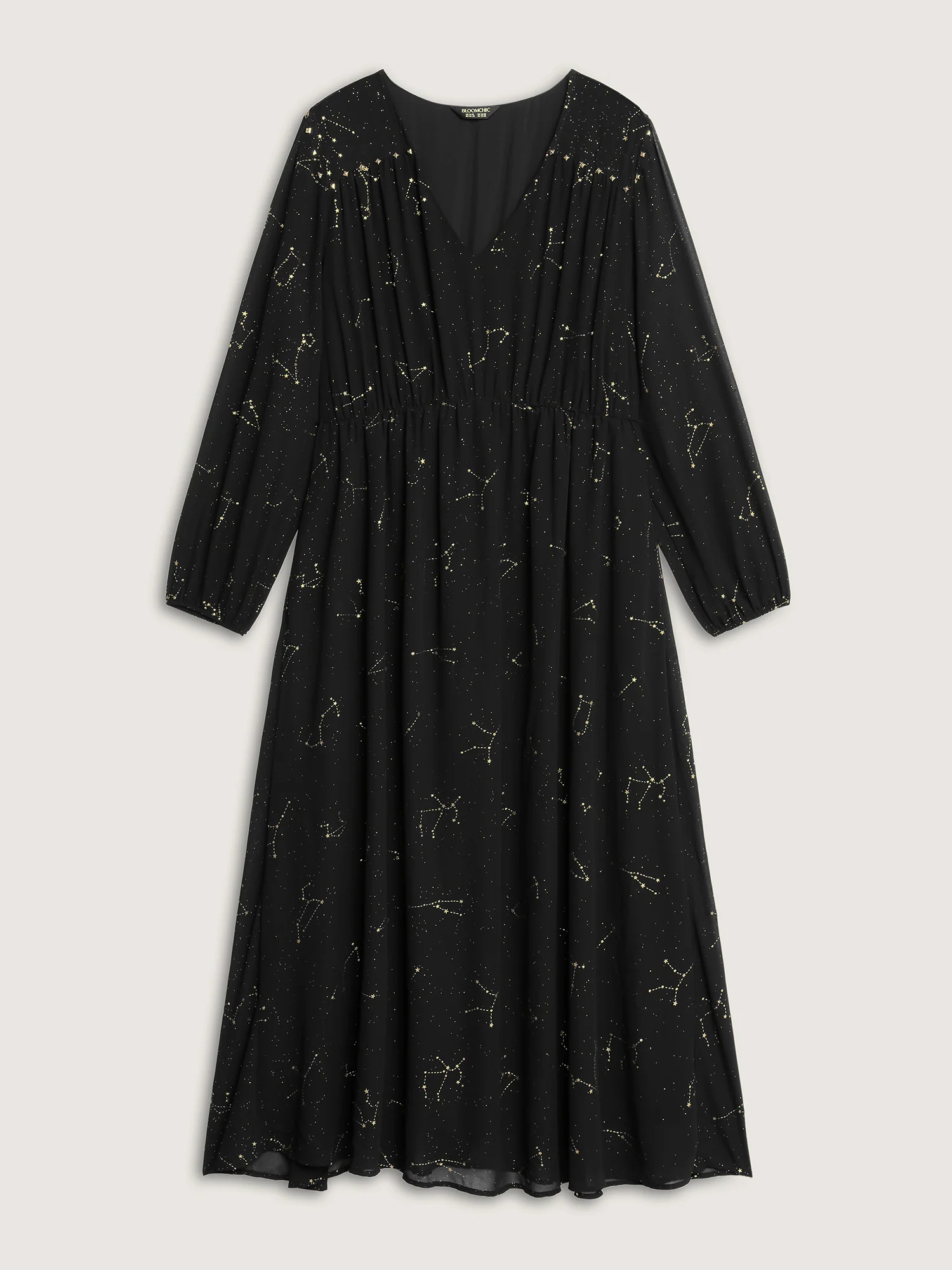 Shimmery Adjustable Gold Stamped Maxi Dress