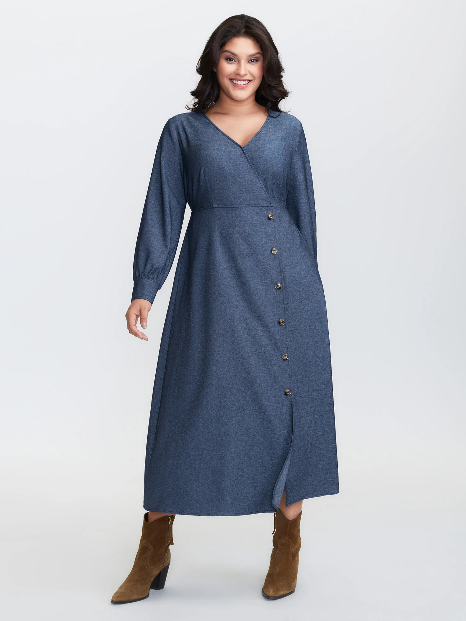 Waist Defining Buttons Pockets Maxi Denim Dress