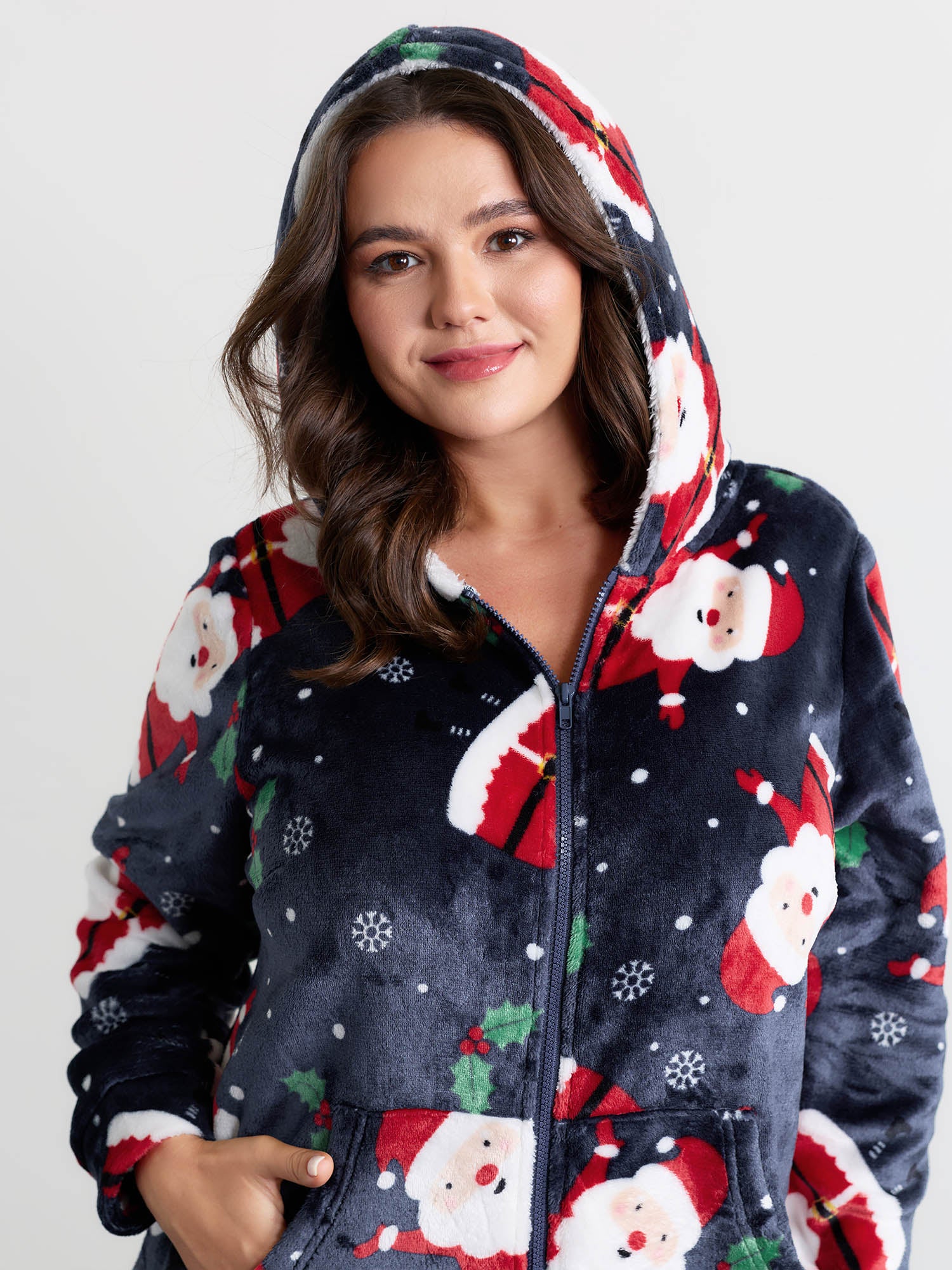 Holiday Fuzzy Plush Pockets Jumpsuit
