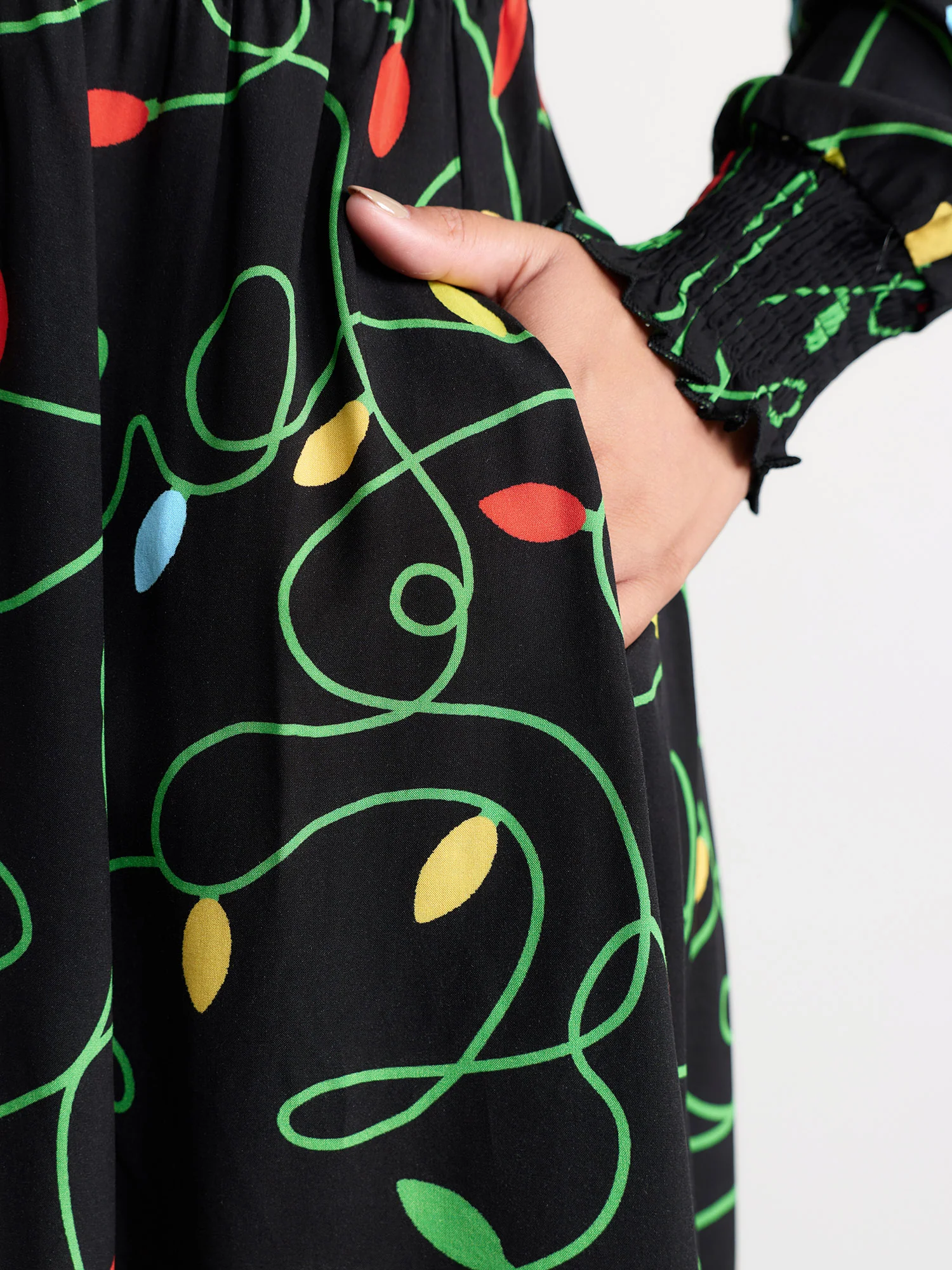 Holiday Lights Triple Elastic Waistband Midi Dress