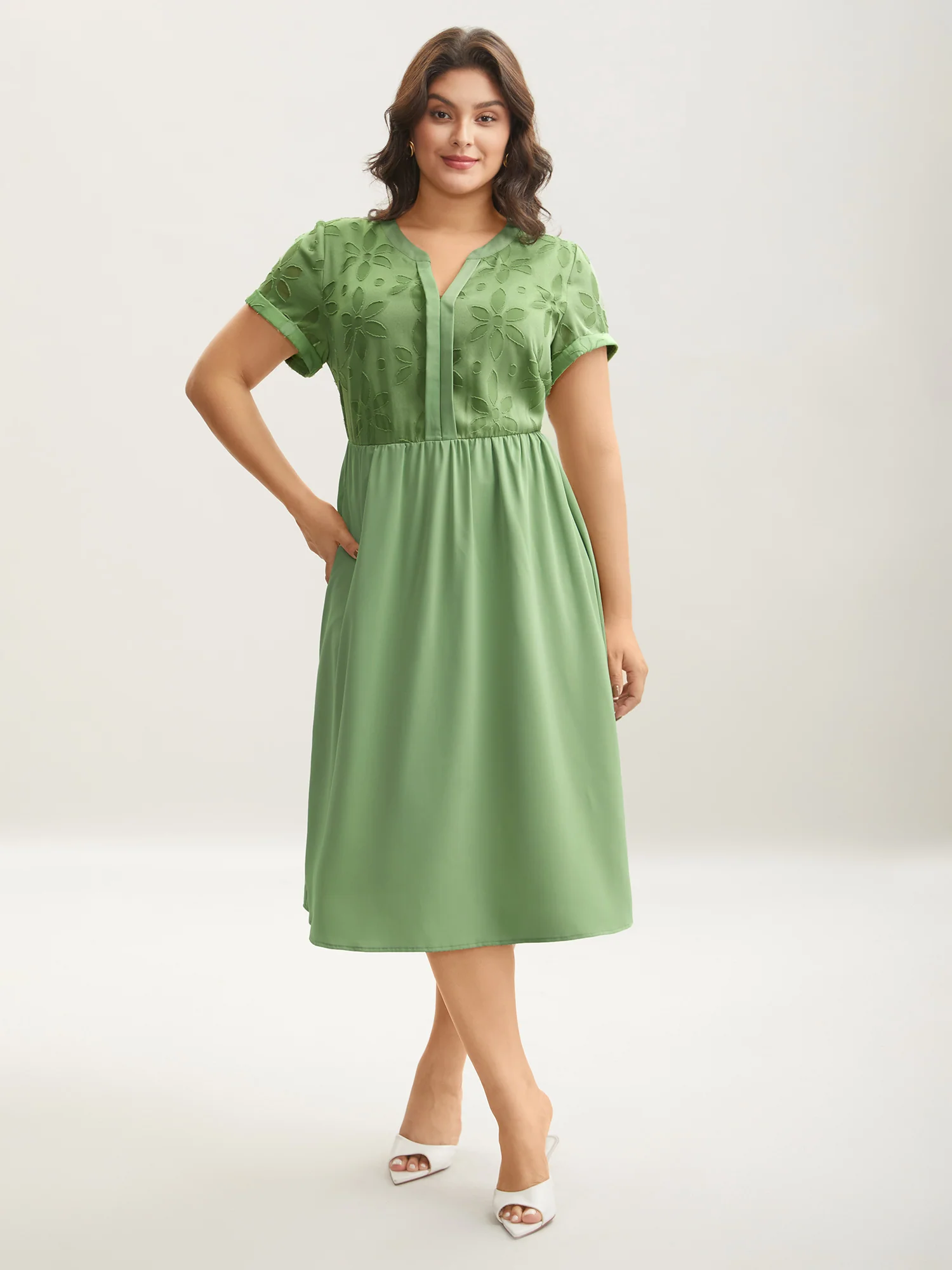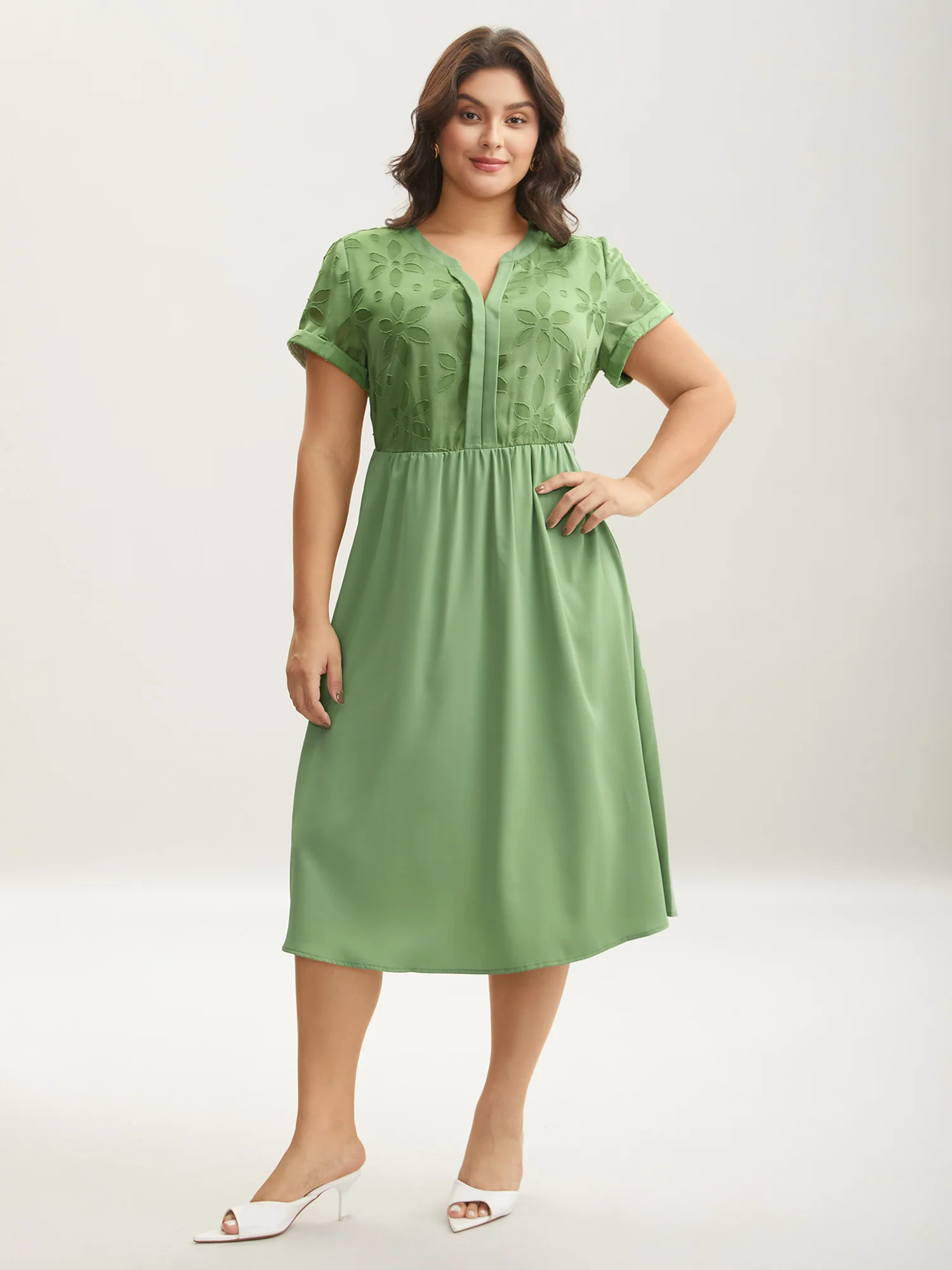 Pure Cotton Lace V-Neck Solid Midi Dress