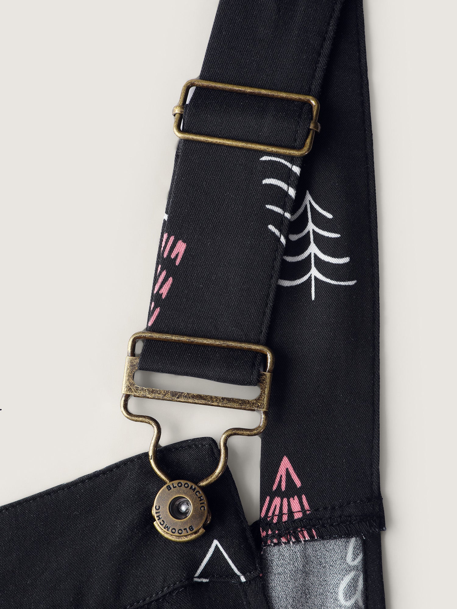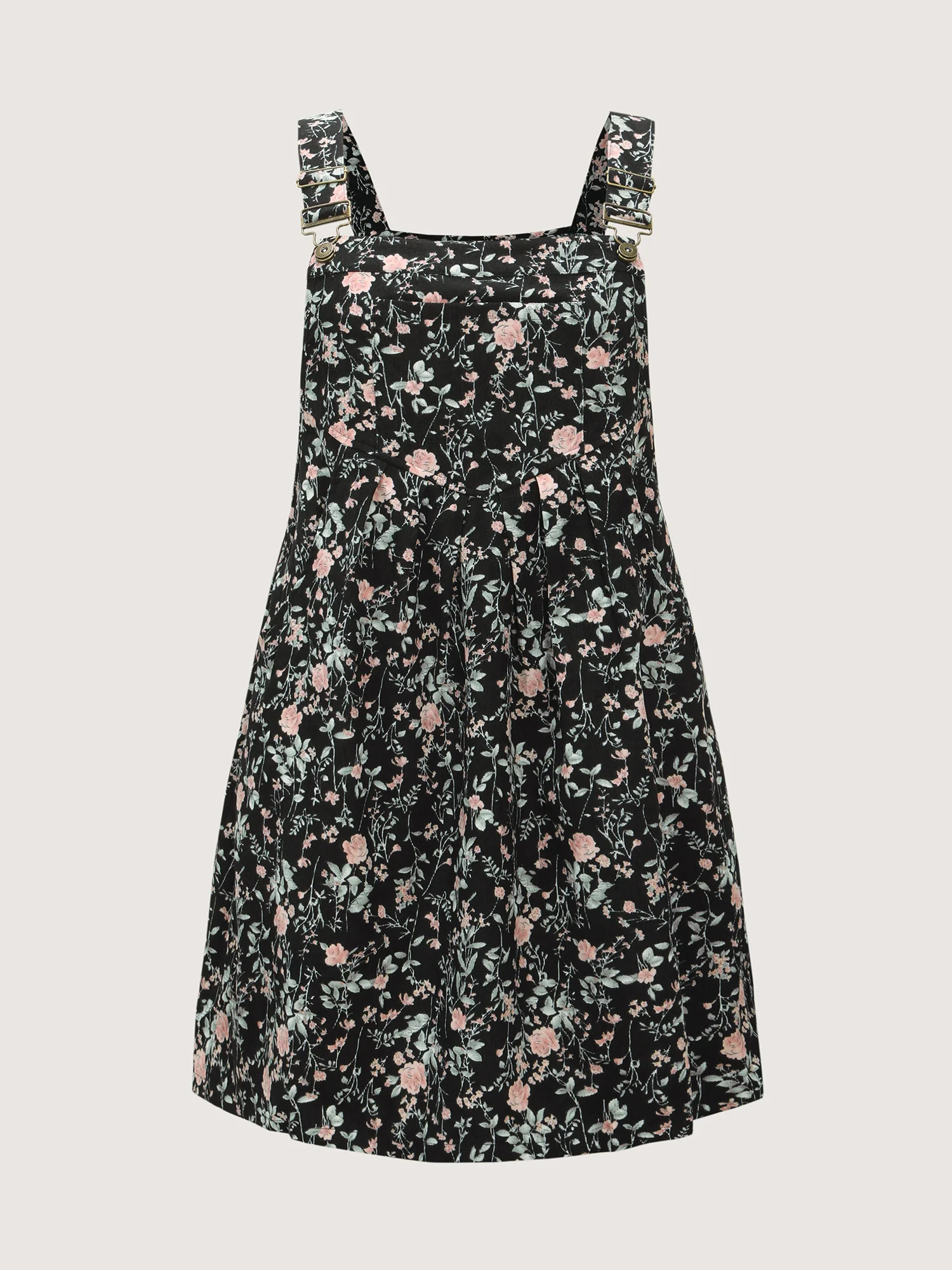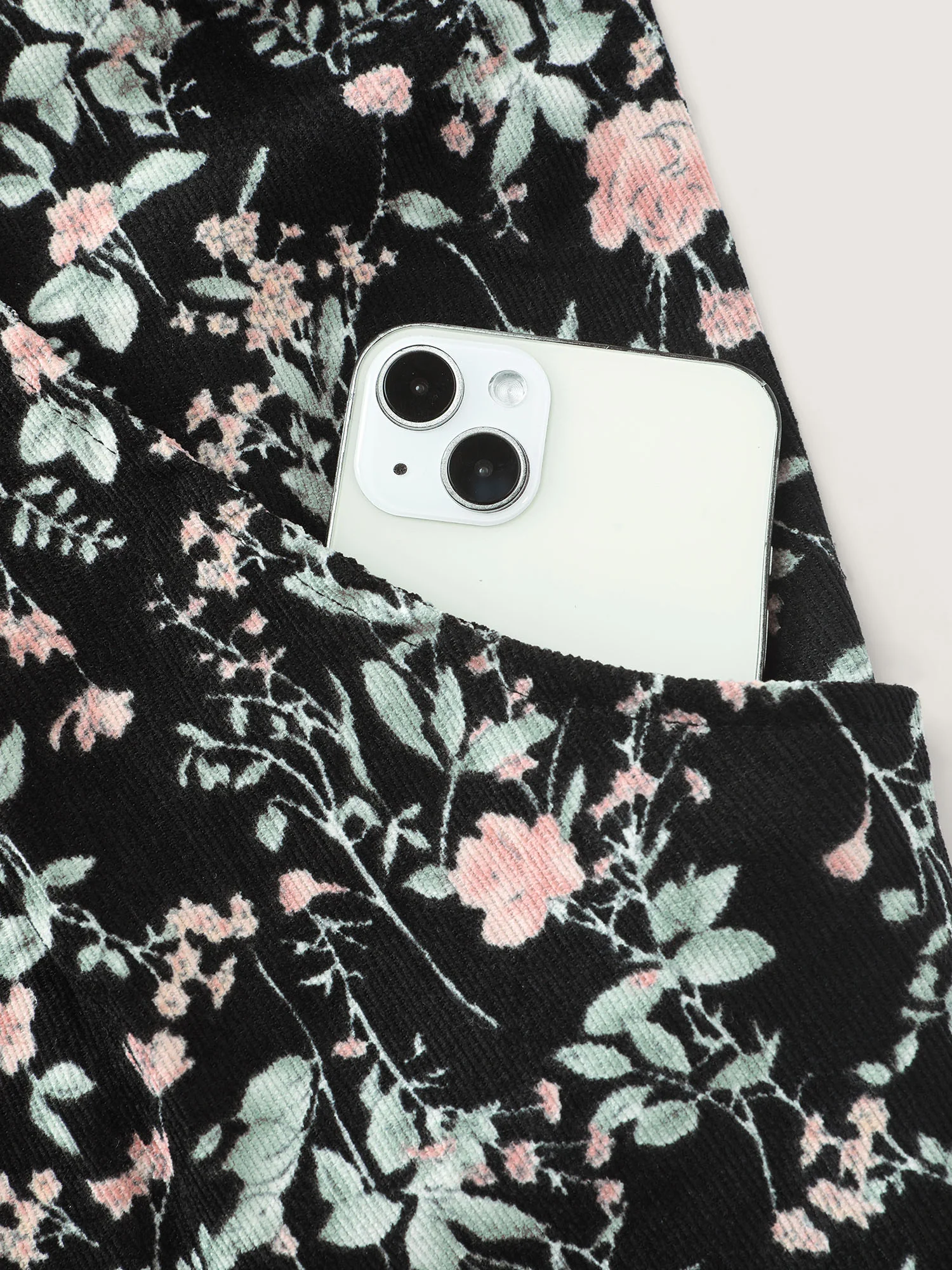 Floral Corduroy Adjustable Overall Strap Knee Dress