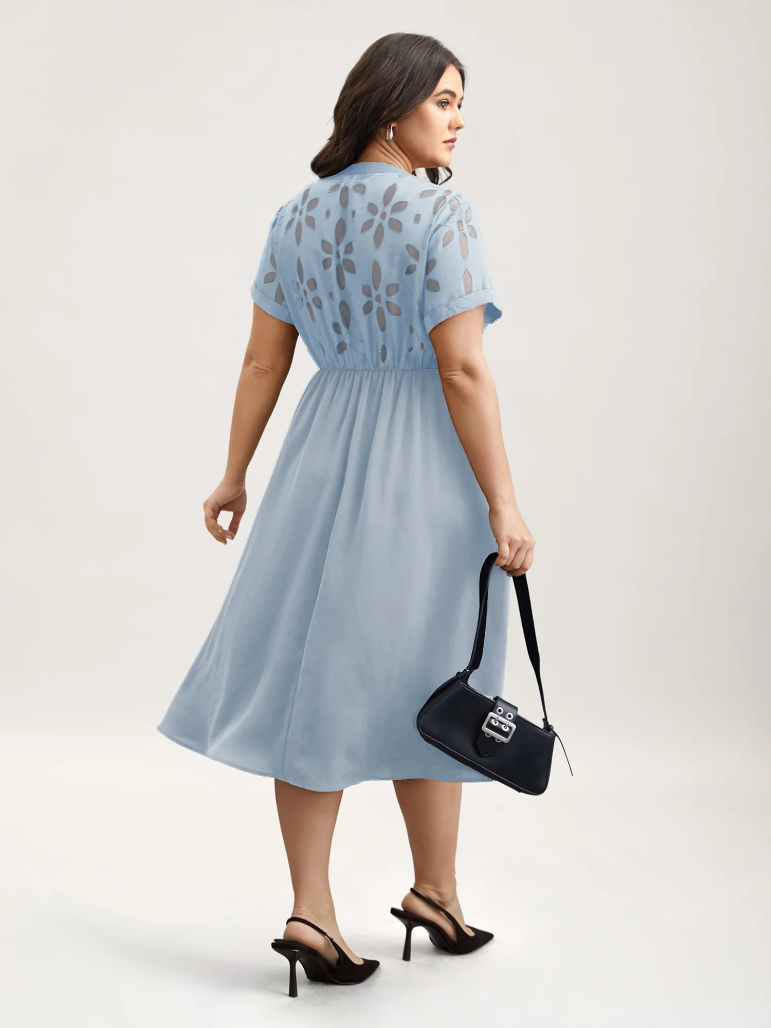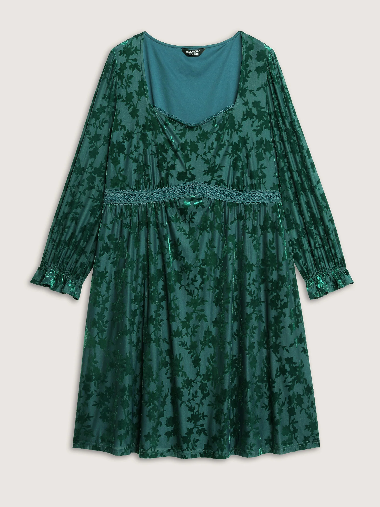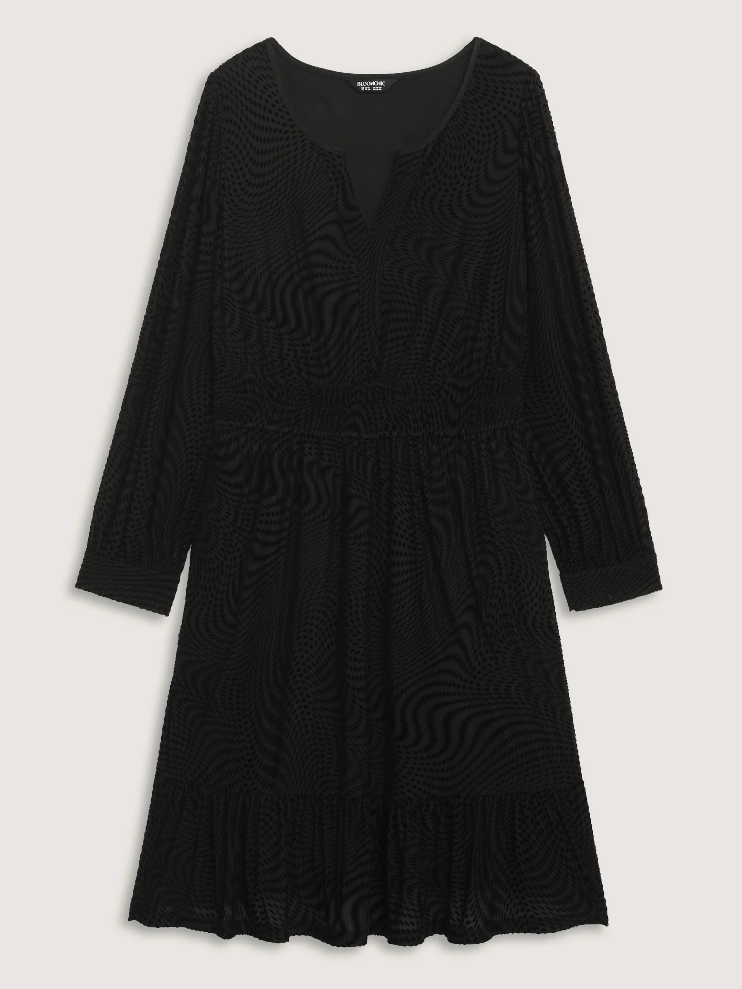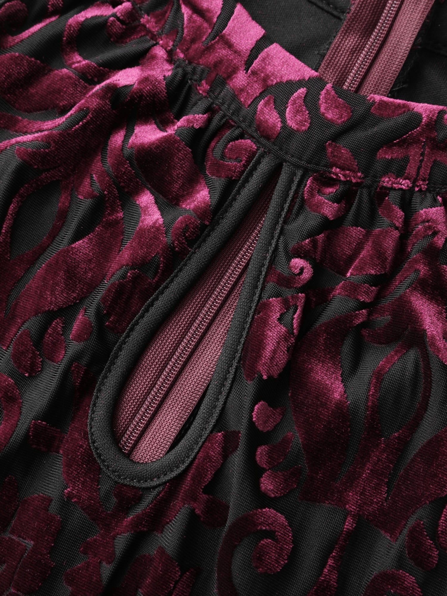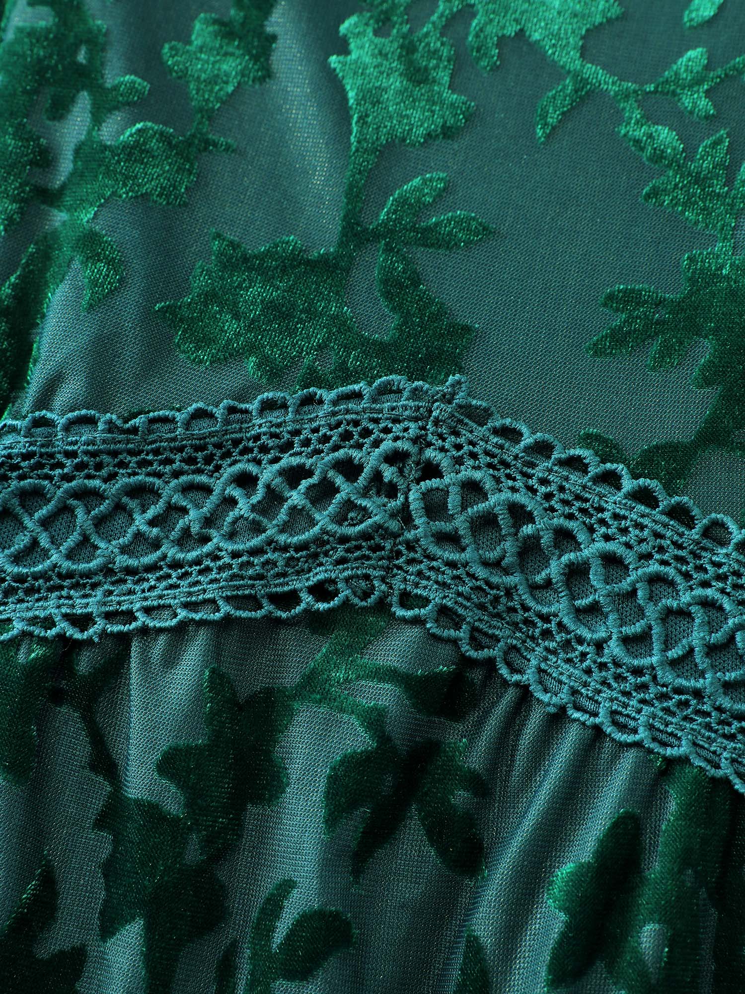 Velvet Laser Cut Ruffled Hem Midi Dress