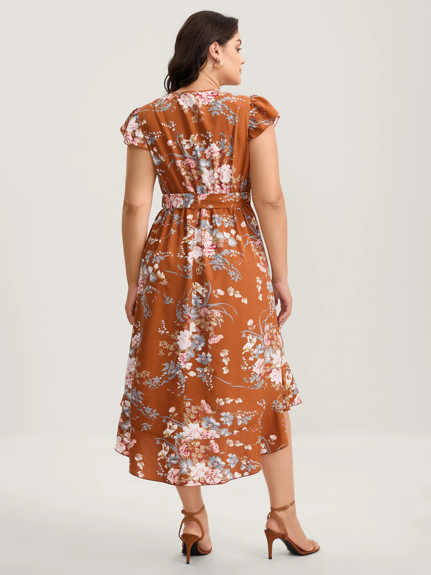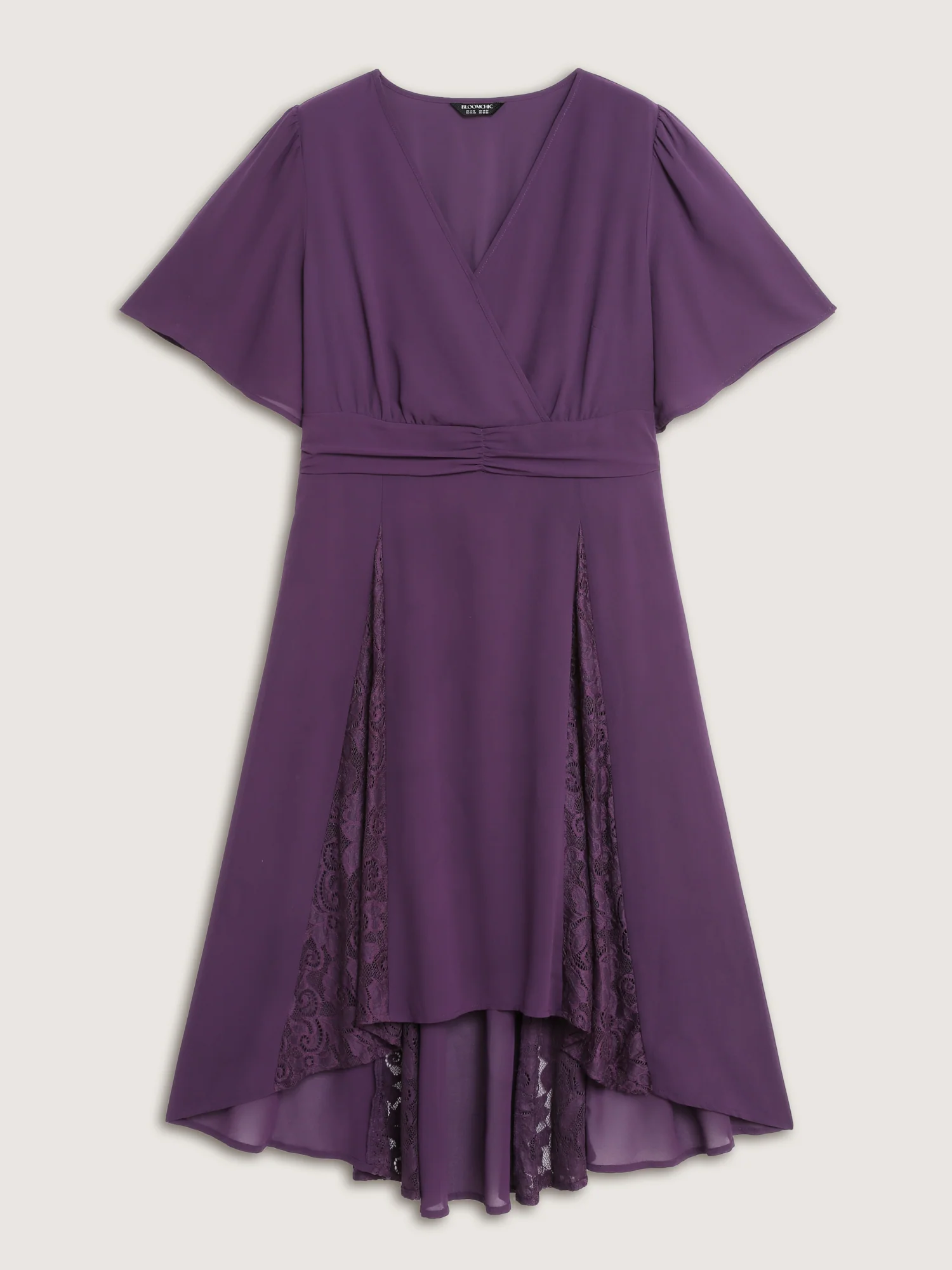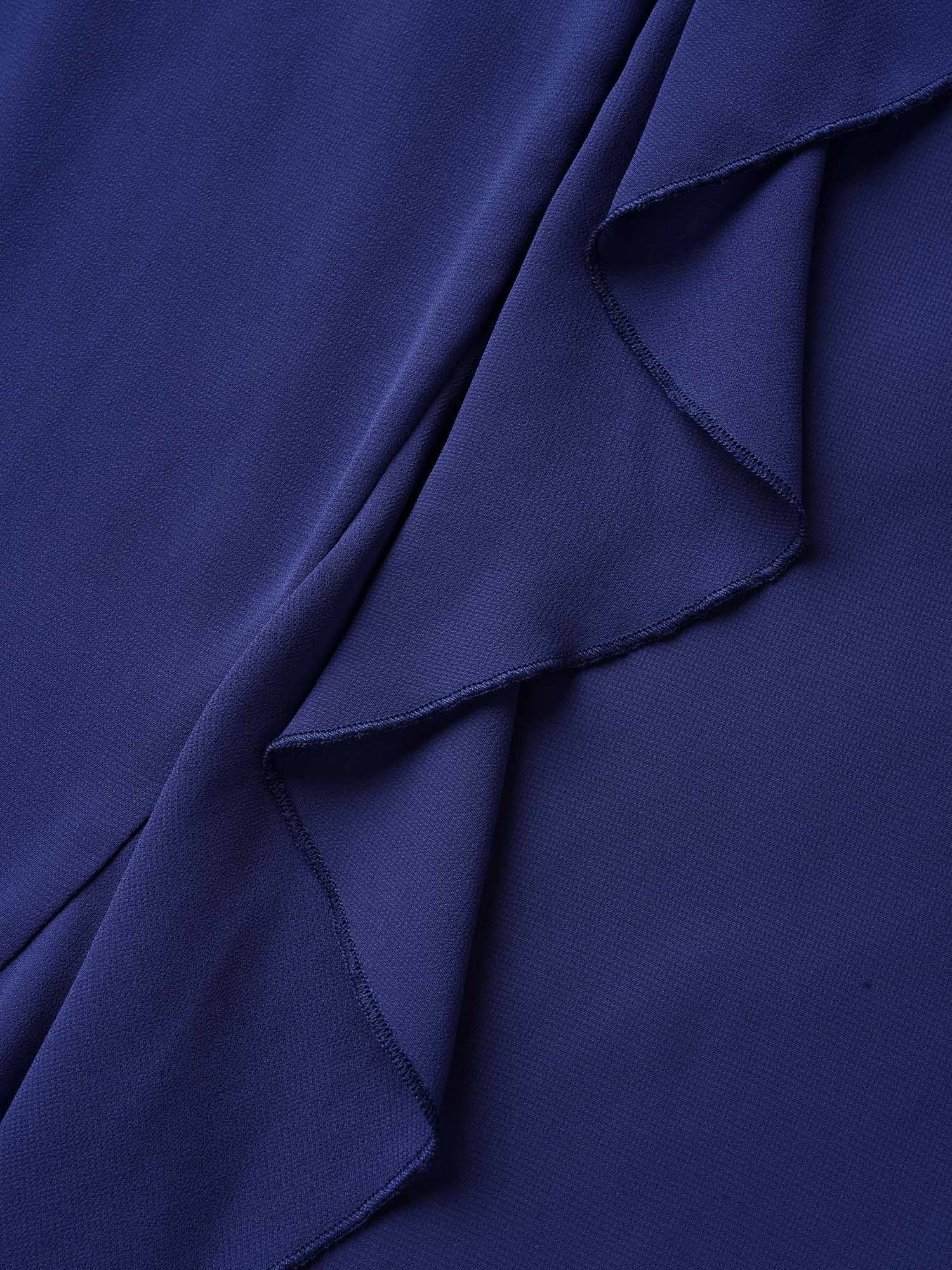 Chiffon Overlap Collar Ruffle Sleeve Dress