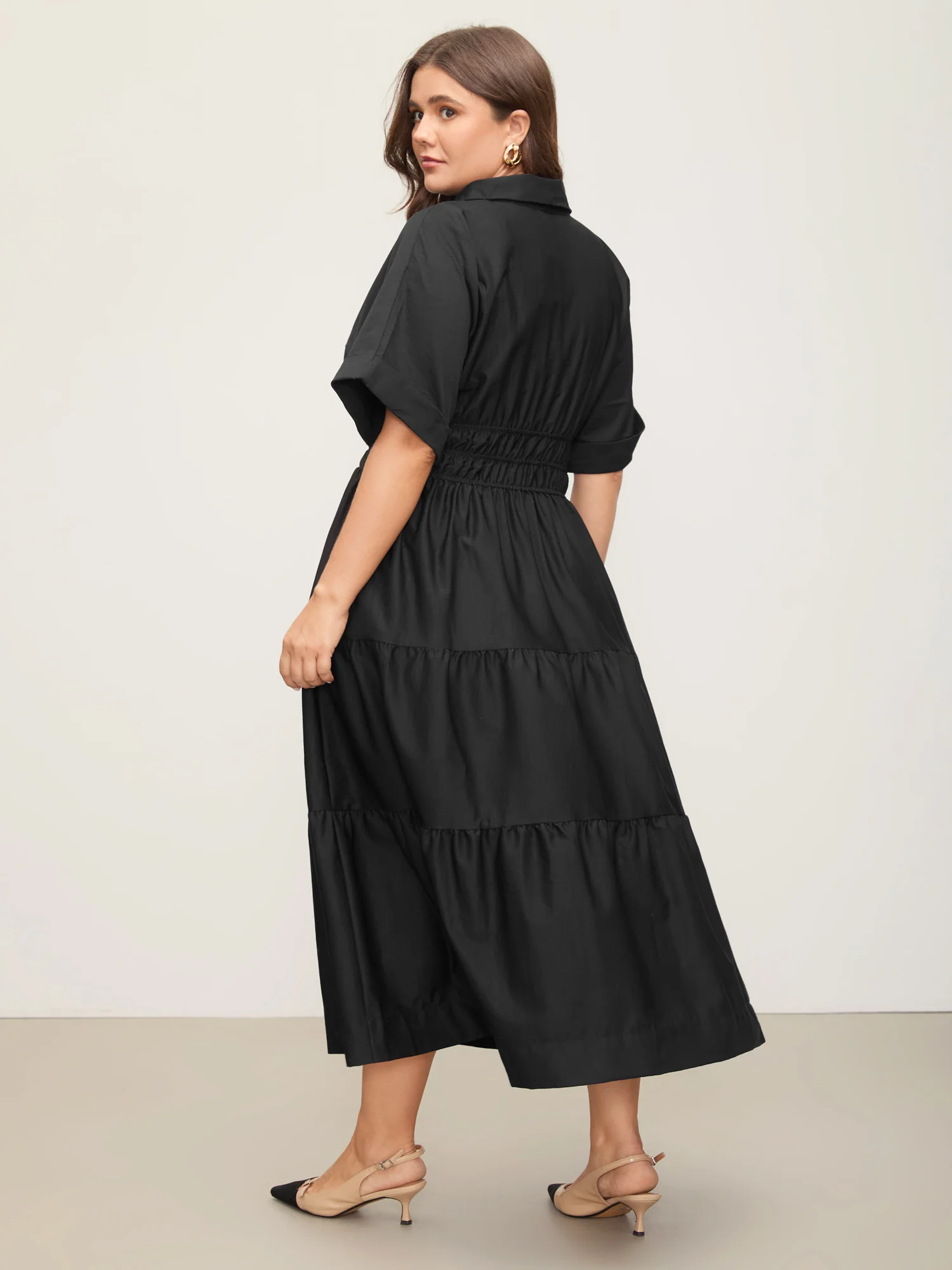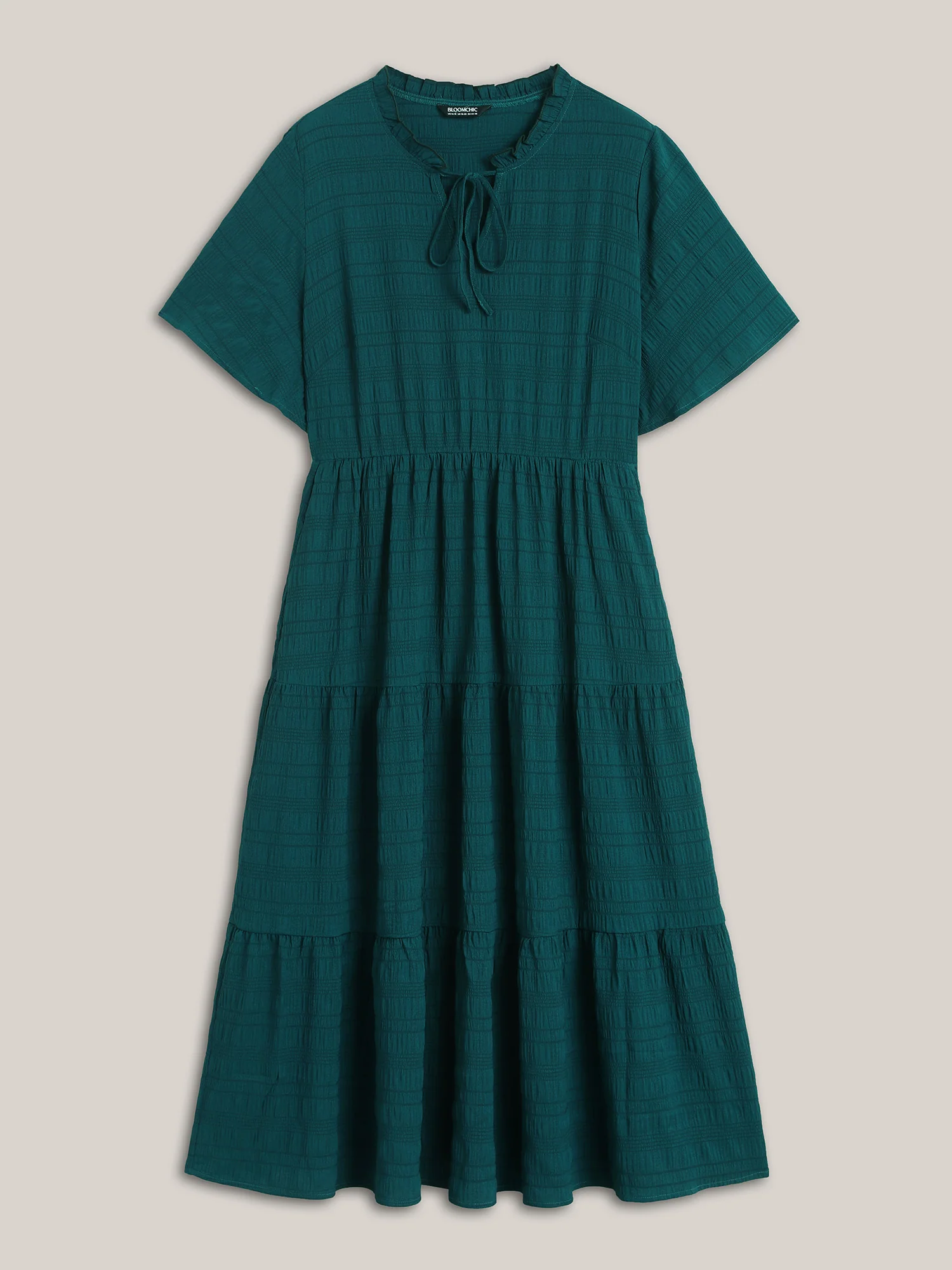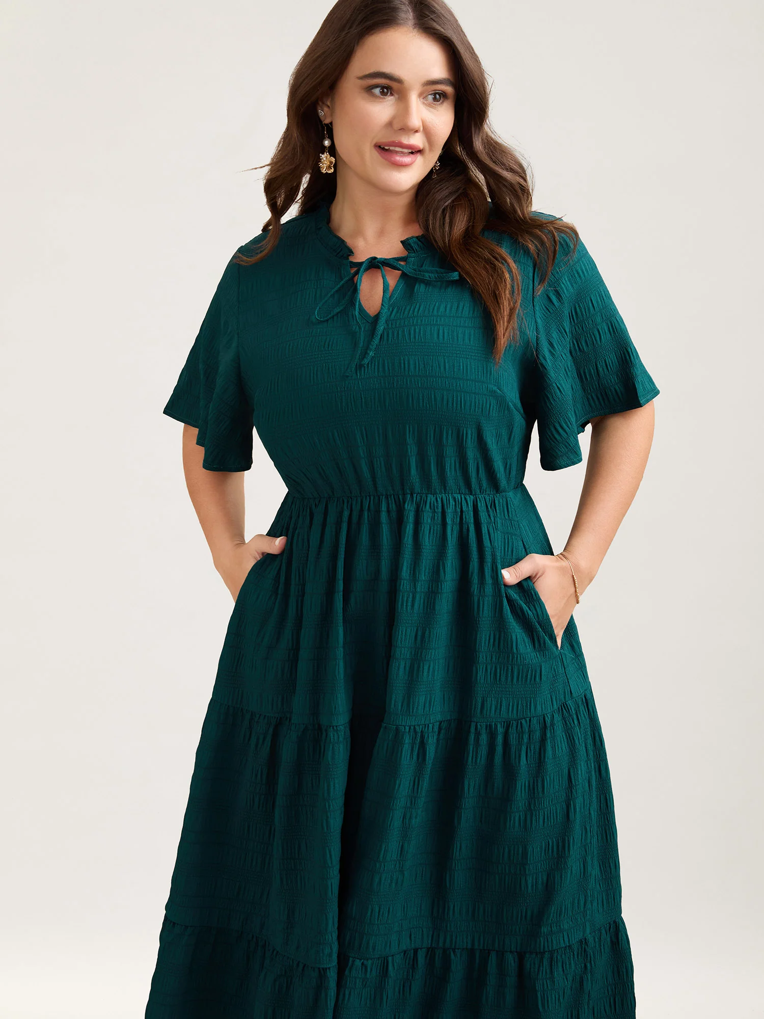 Stretchy Waist Frill Trim Pockets Midi Dress